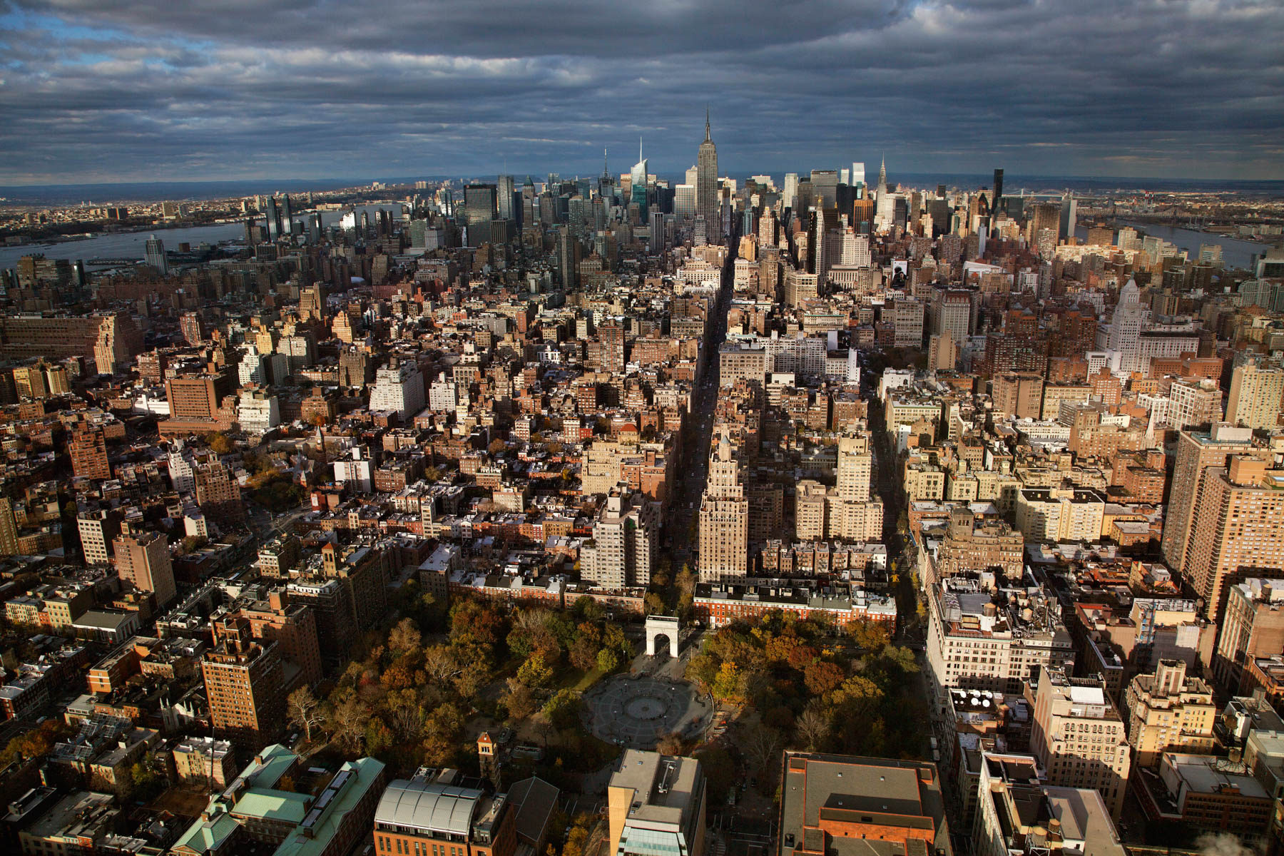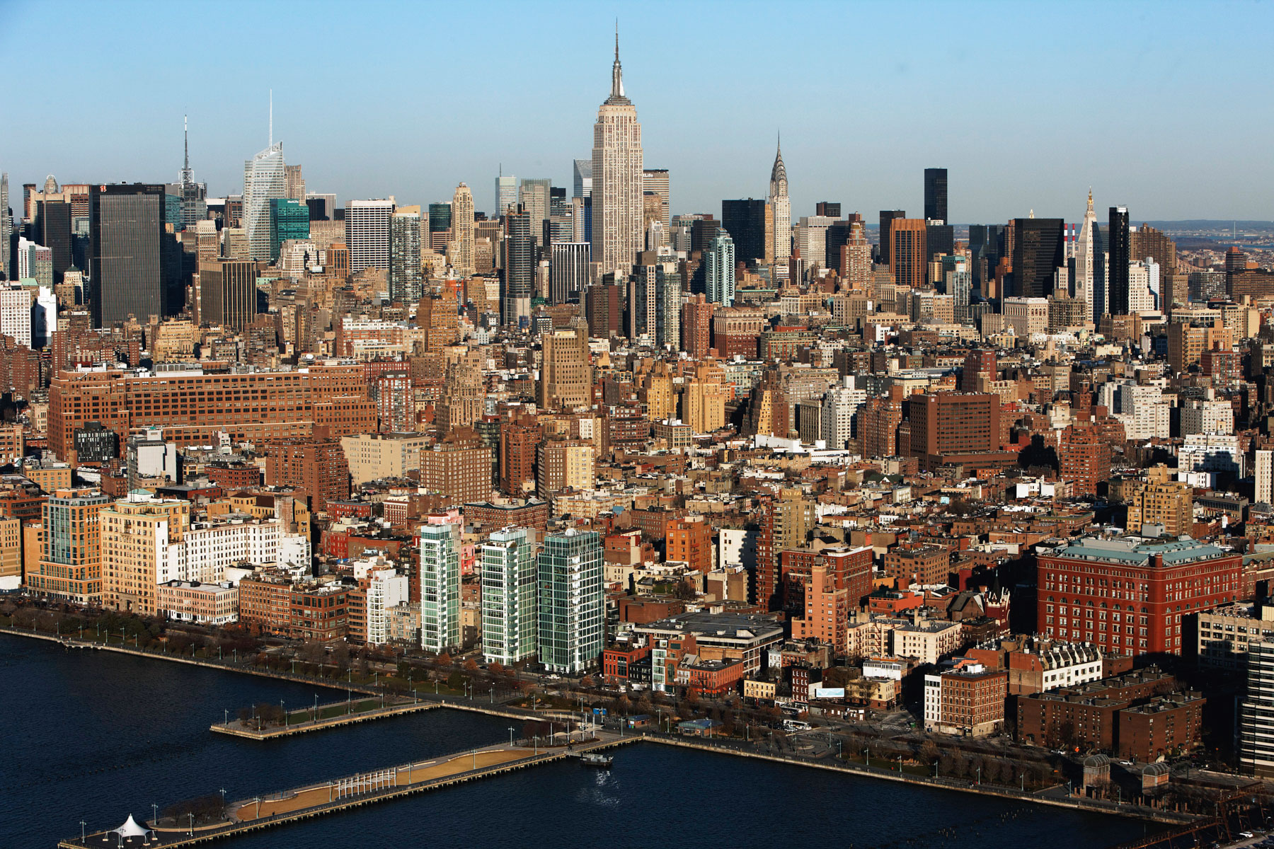 Empire State Building to the George Washington Bridge, Midtown South, Manhattan, New York, United States (40°44′54.36″N, 73°59′08.36″W).