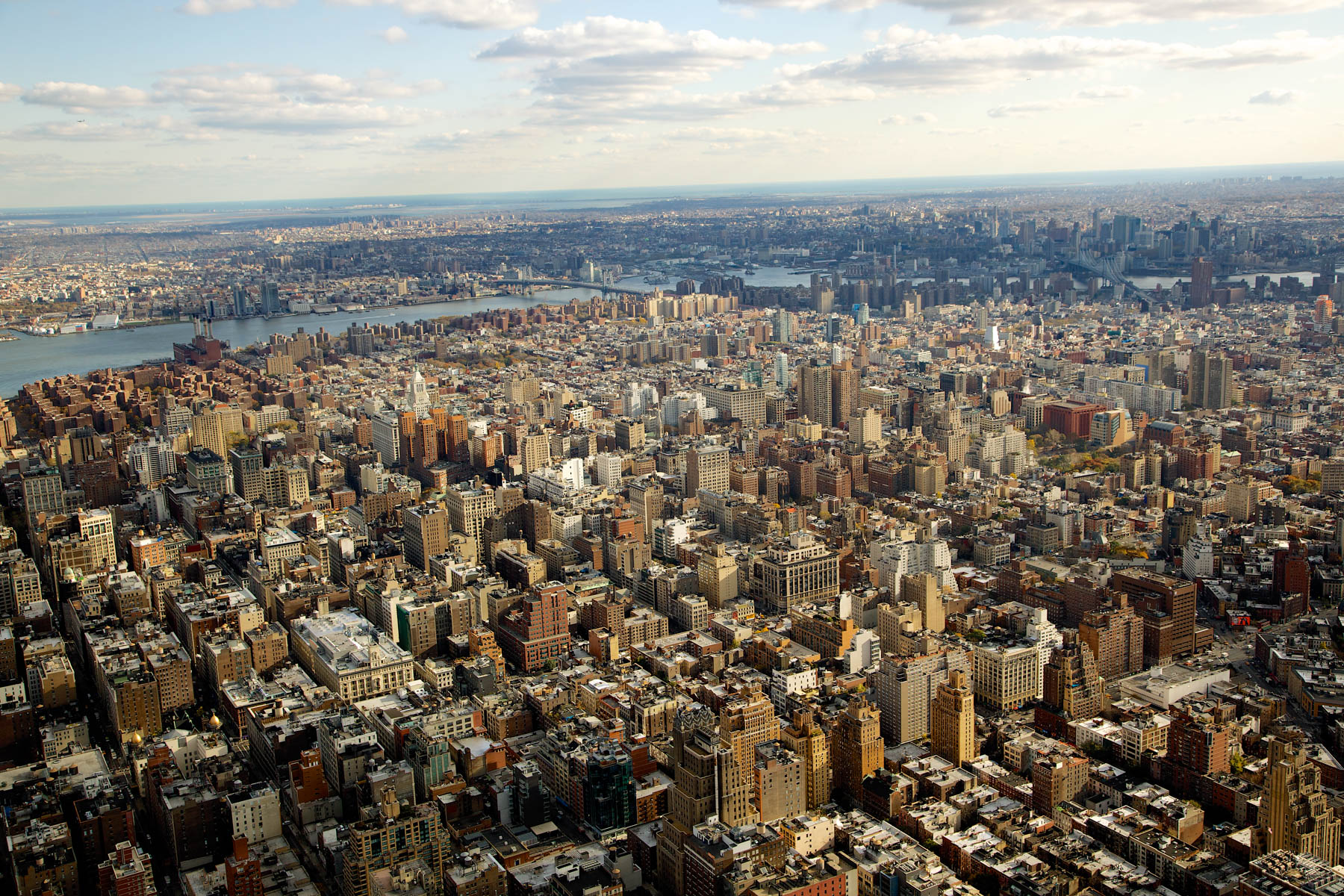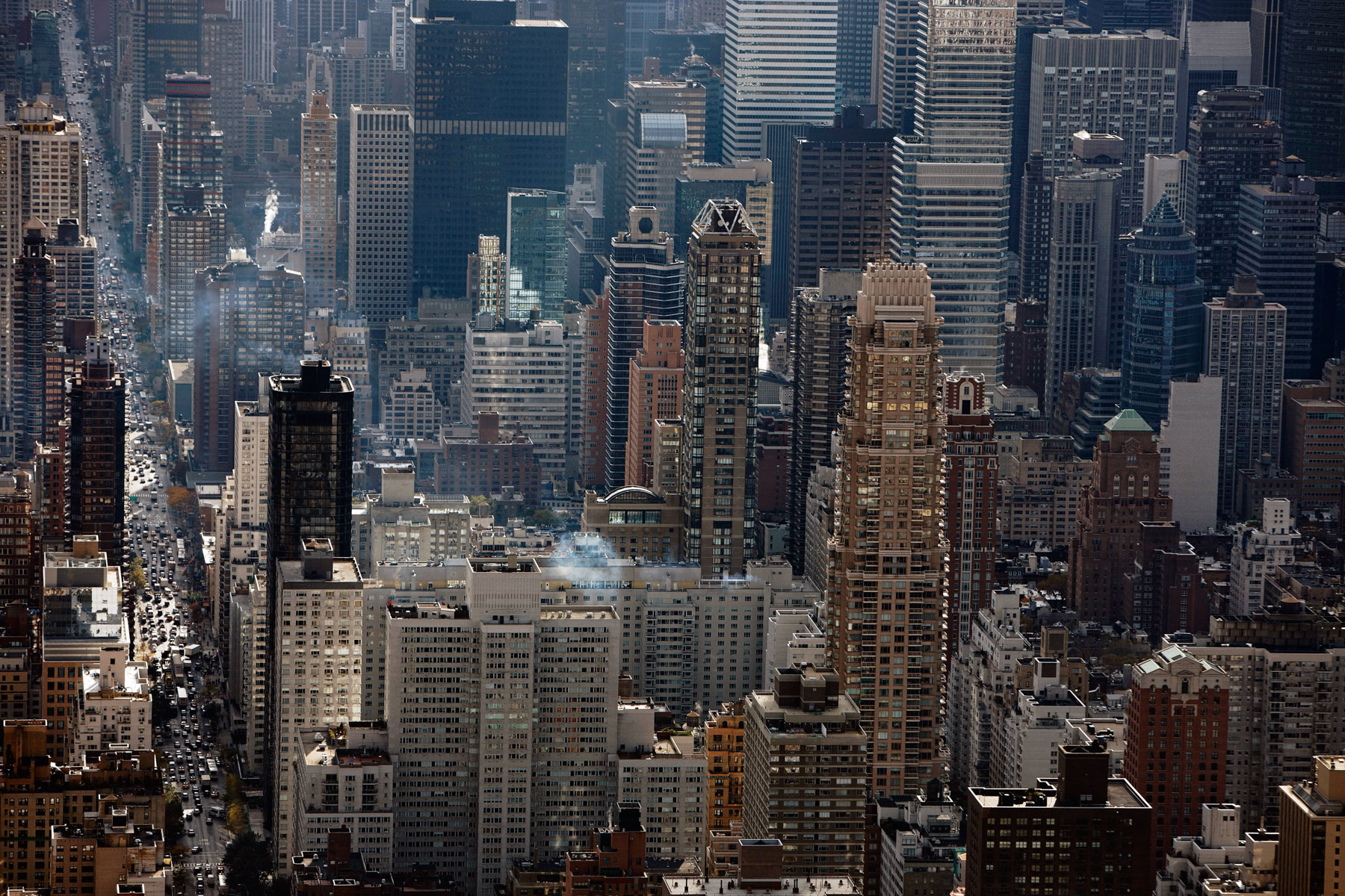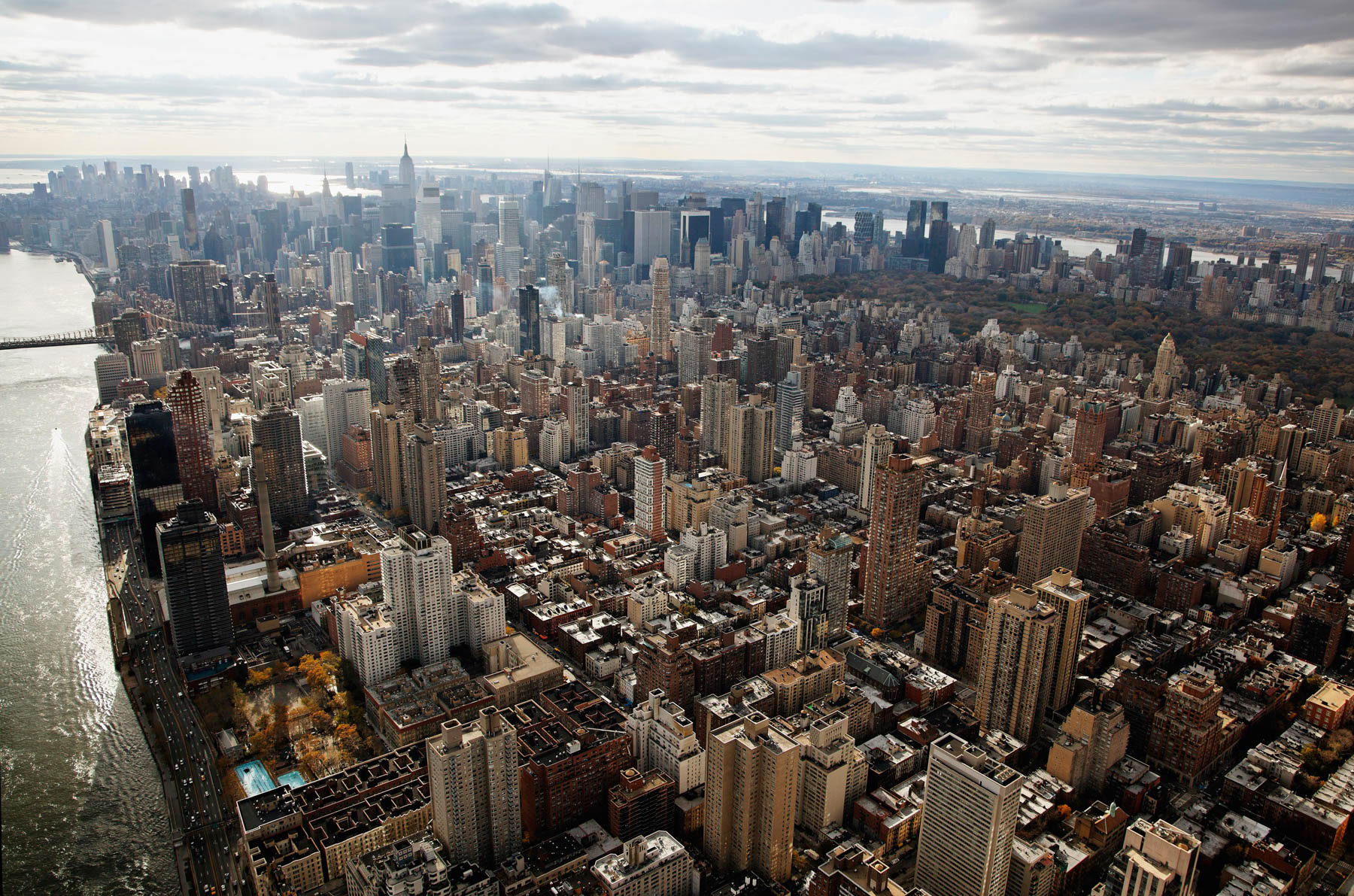 Manhattan as seen from Upper East Side, New York, United States (40°46'14.55" N, 73°56'47.92" W).