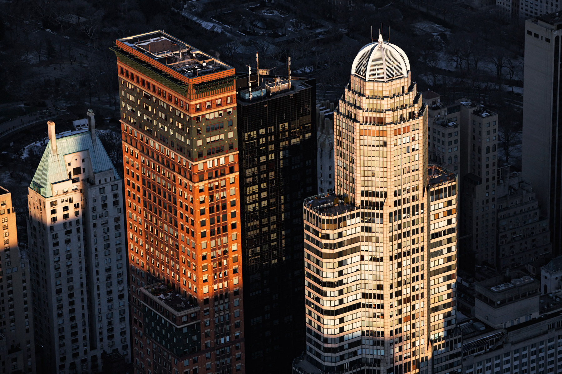 Four Towers: Hampshire House, Carnegie Hall Tower, Metropolitan Tower and the CitySpire Center, Midtown, Manhattan, New York, United States(40°45'53"N, 73°58'47"W).