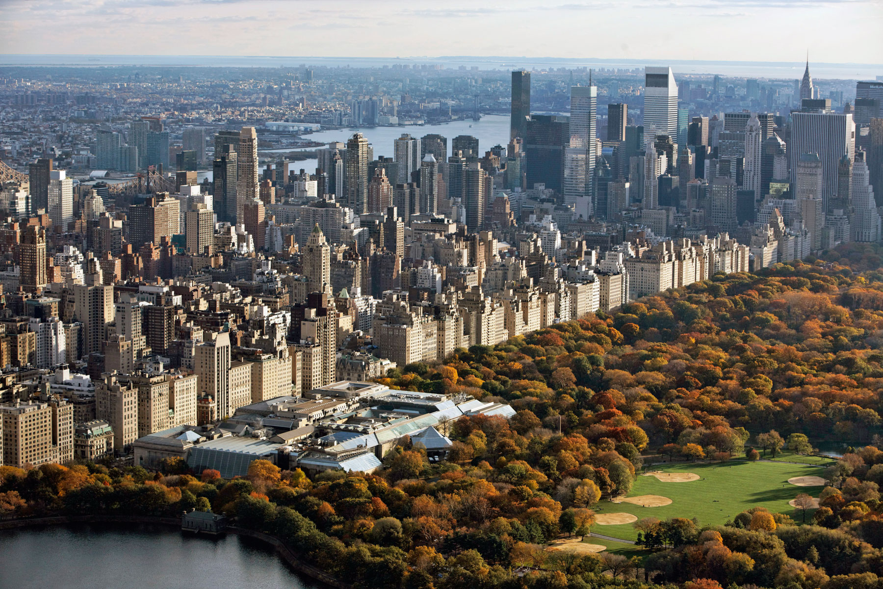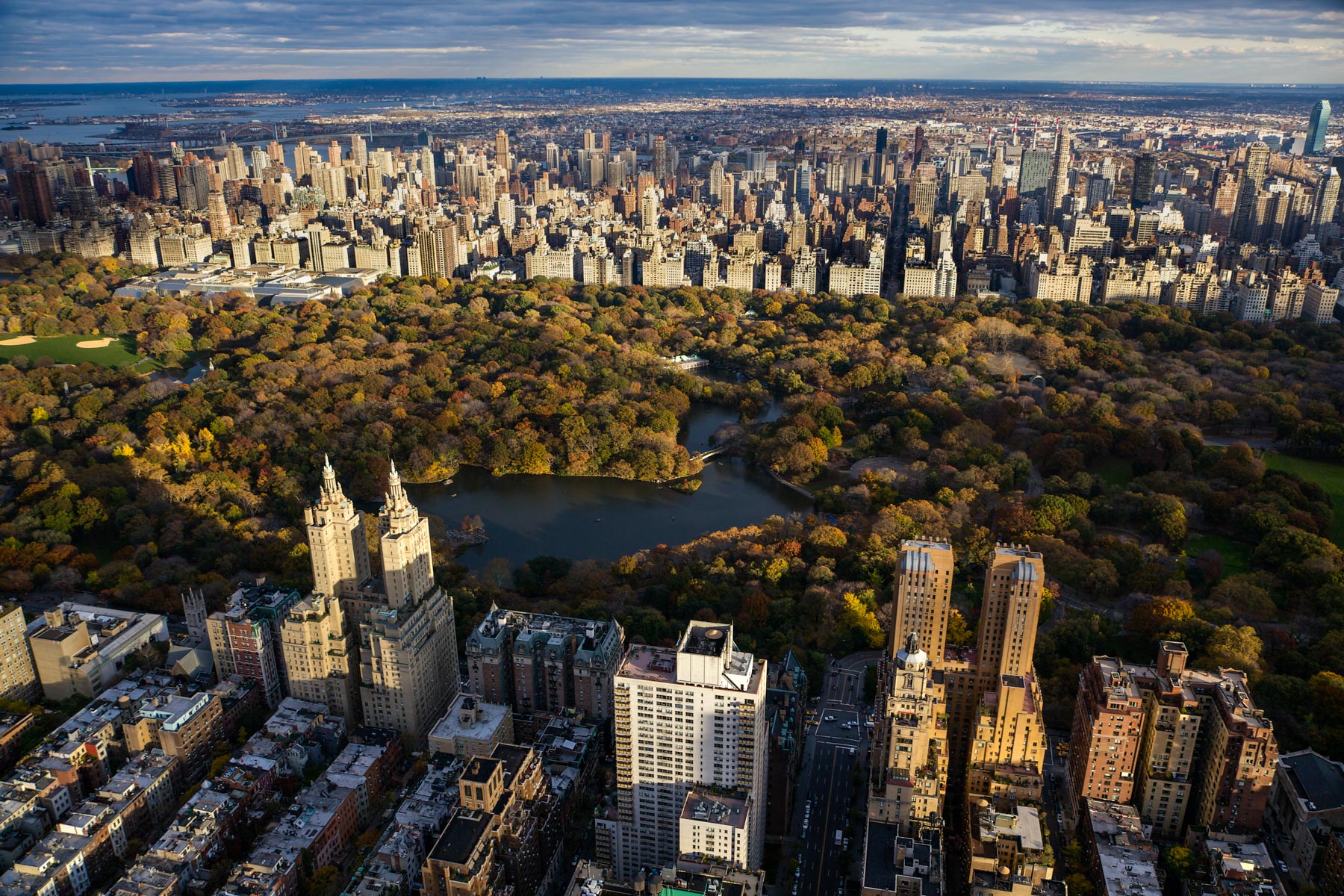 Manhattan and Central Park as seen from Upper West Side, Manhattan, New York, United States (40°46’ N, 73°58’ W).