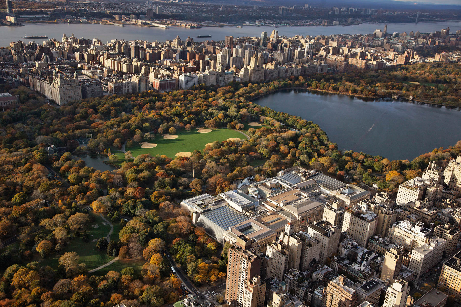 Central Park Reservoir and the Metropolitan Museum of Art, Central Park, Manhattan, New York, United States (40°46'43.26" N, 73°58'6.07" W).
