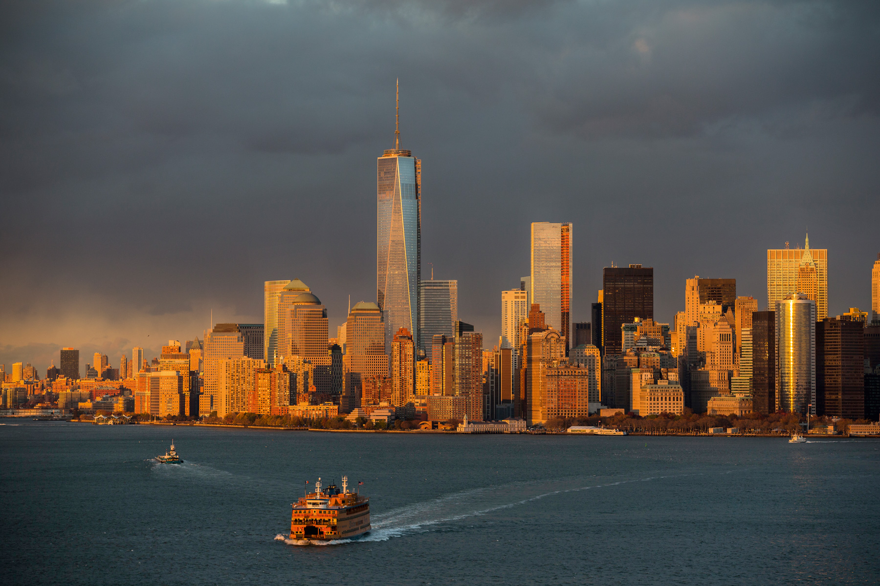 Boat off Manhattan and One World Trade Center, New York, United States (40°43’ N, 74°01’ W).