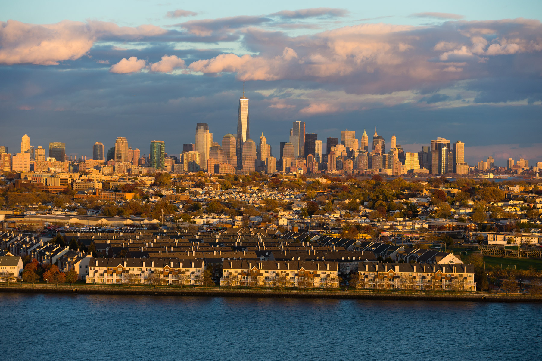 Manhattan and the One World Trade Centre seen from Jersey City, New York, New Jersey, United States (40°42’ N, 74°06’ W).