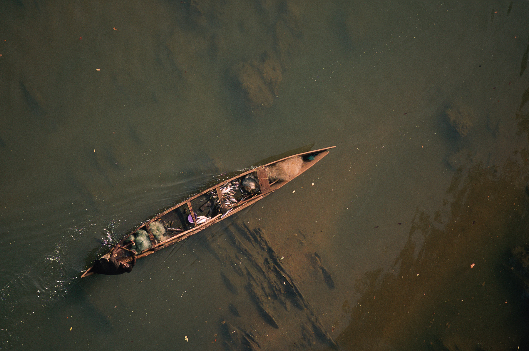 Pêcheur sur la rivière Volta Noir (frontière Cïte d'Ivoire)