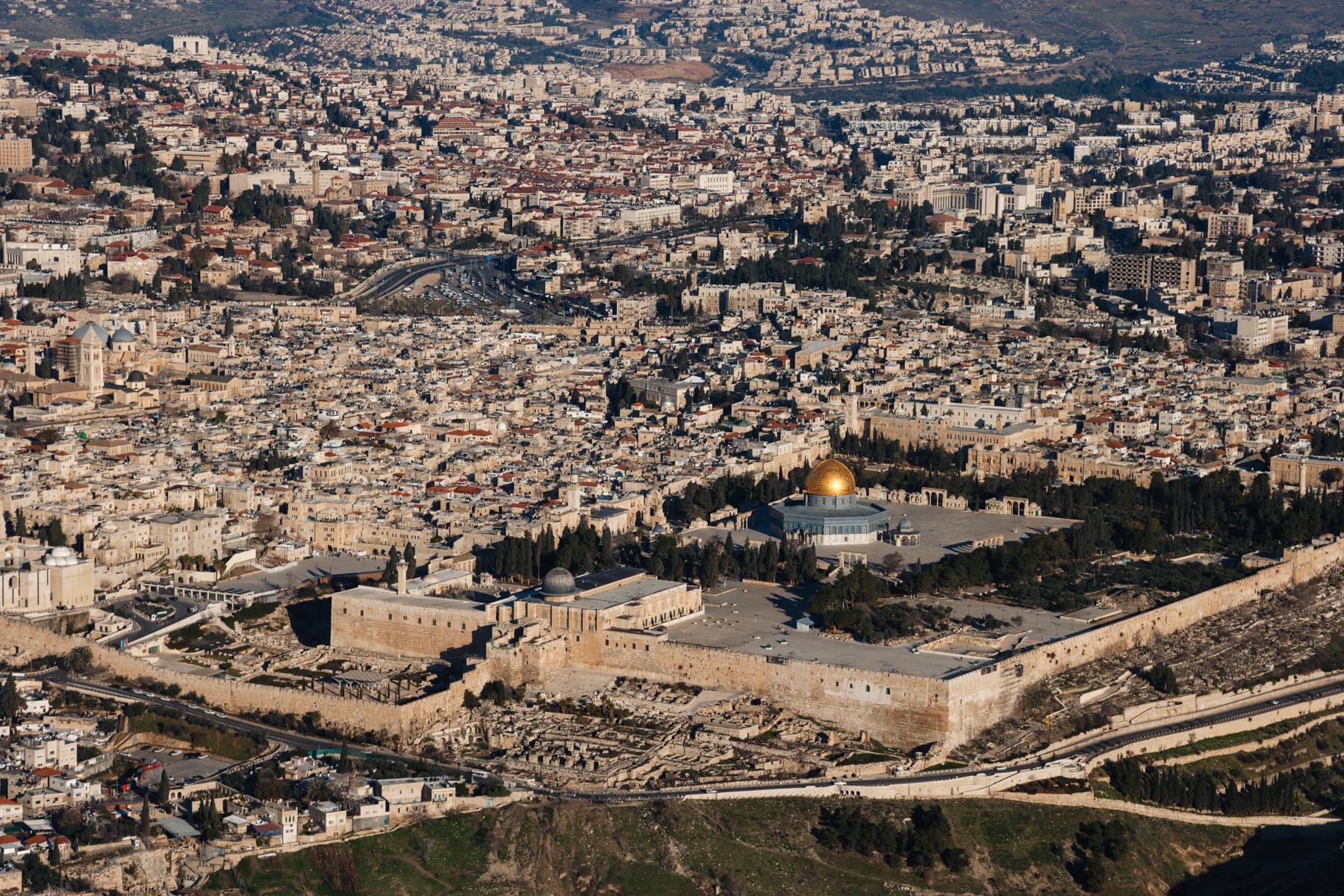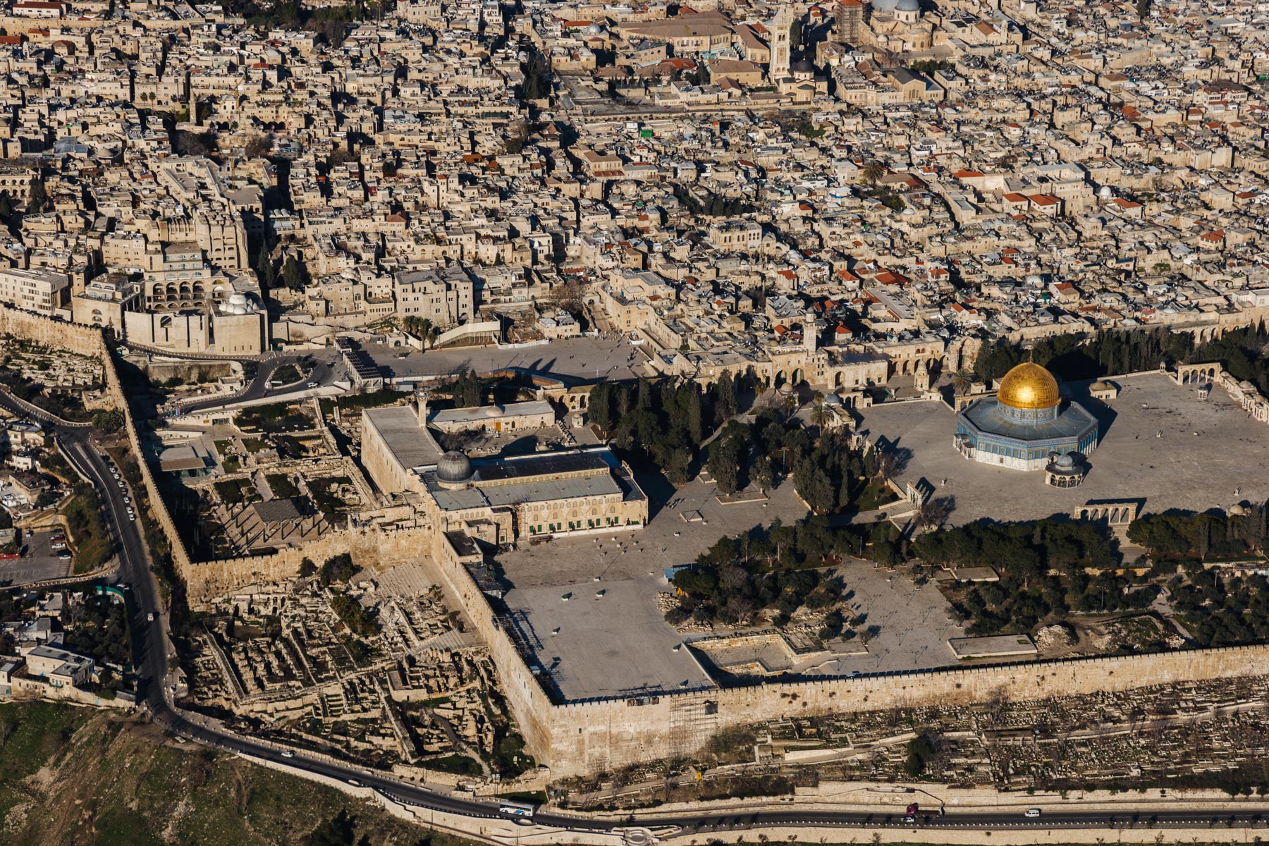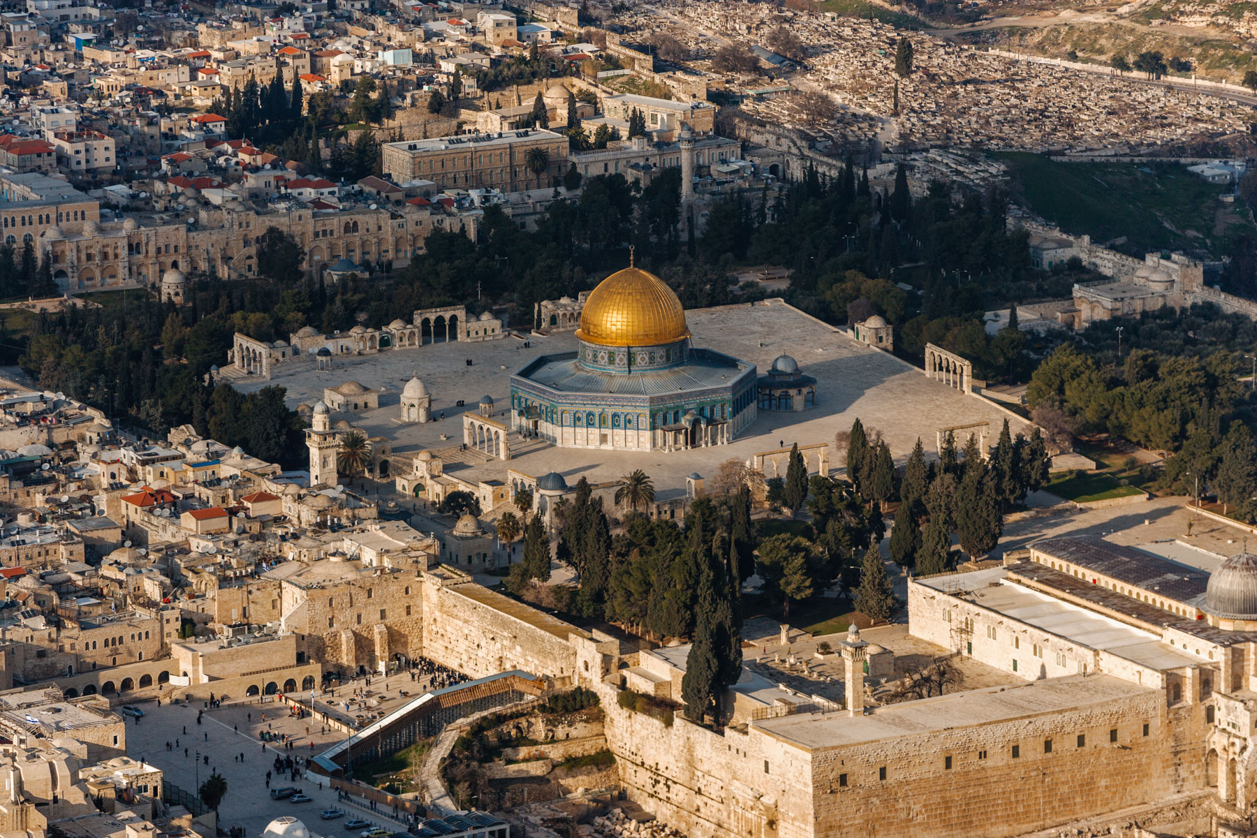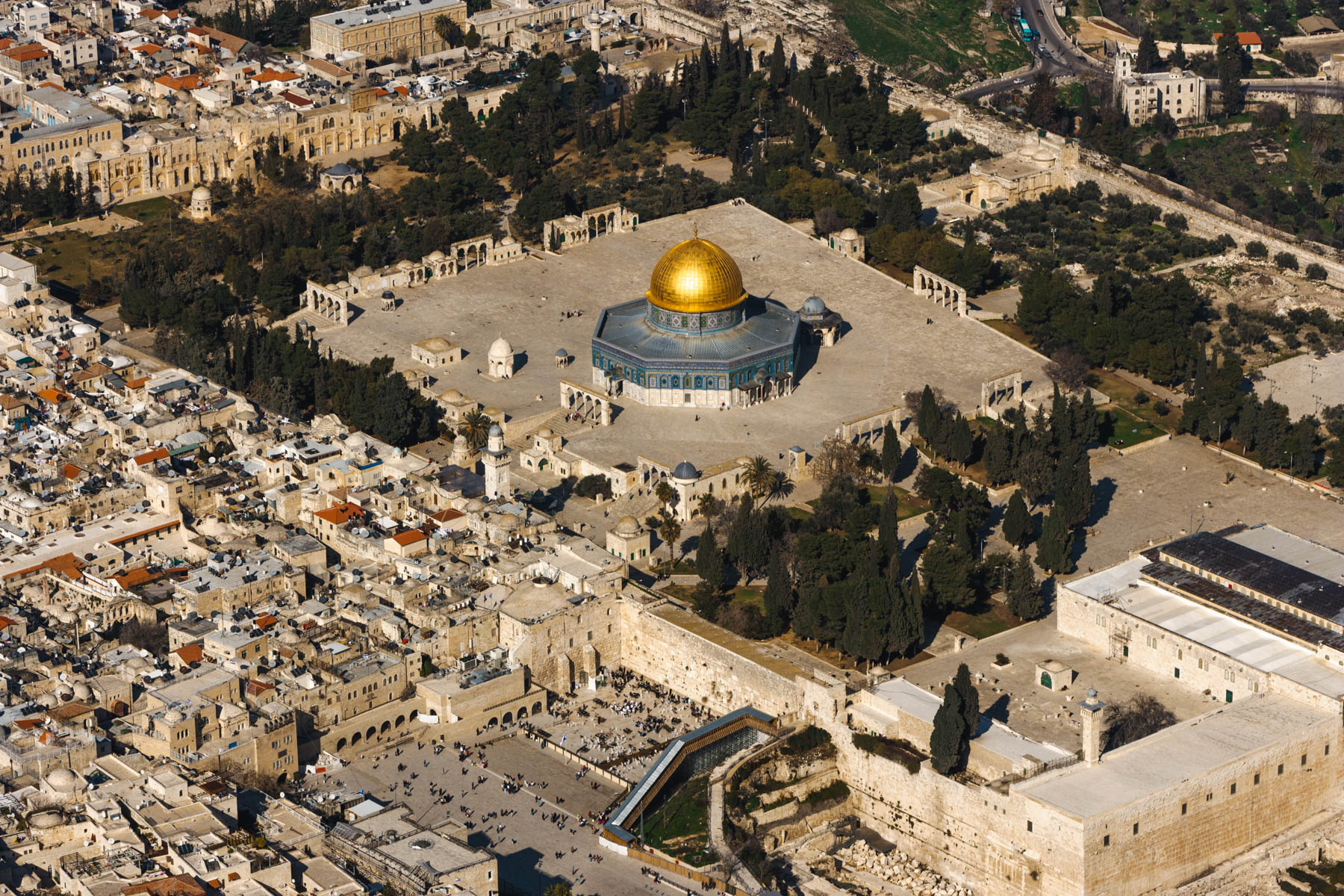 The Esplanade of the Mosques and the Wailing Wall, Jerusalem, Israel and Palestinian Territories (31°45' N – 35°15' E).