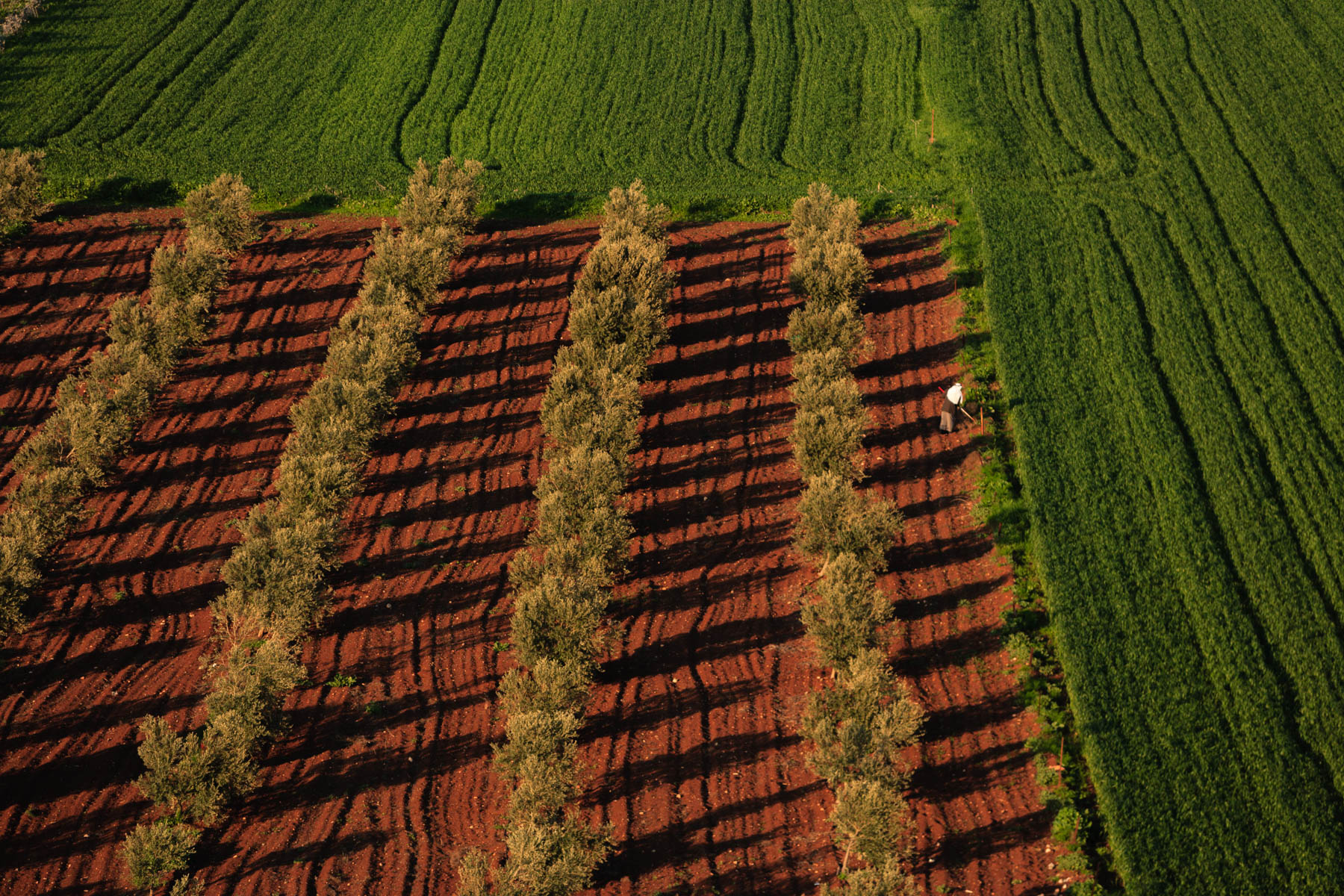 Agriculteur travaillant dans un champ en Israel (32°28' N - 35°03'E)