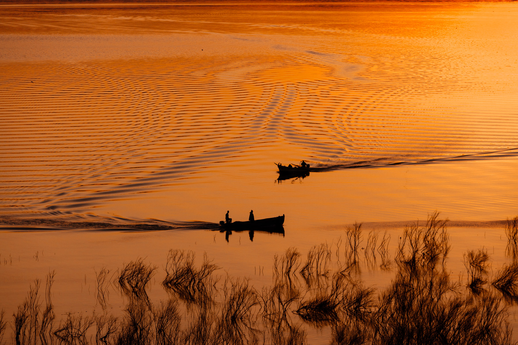 Pêcheurs au couché du soleil sur le lac de Tibériade (Mer de Galilée), Rive Nord (32°49'N - 35°35'E)