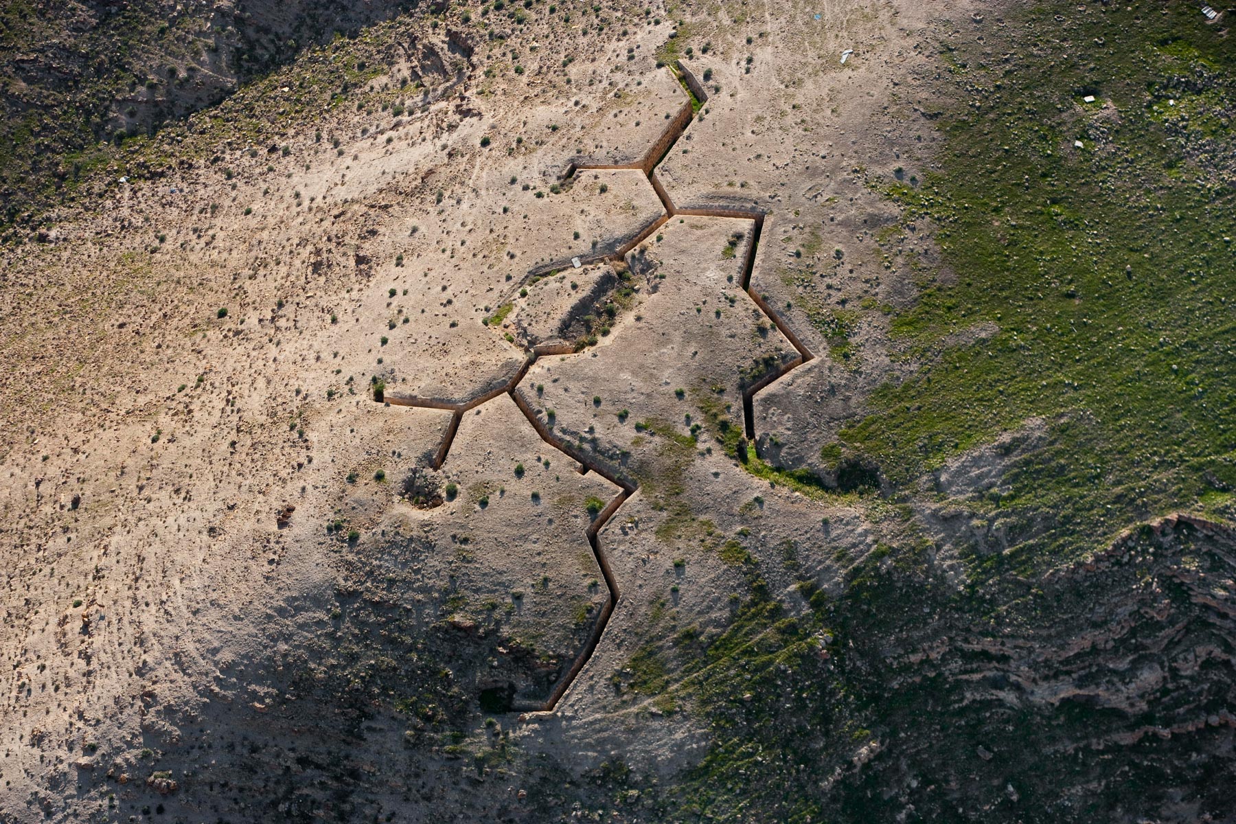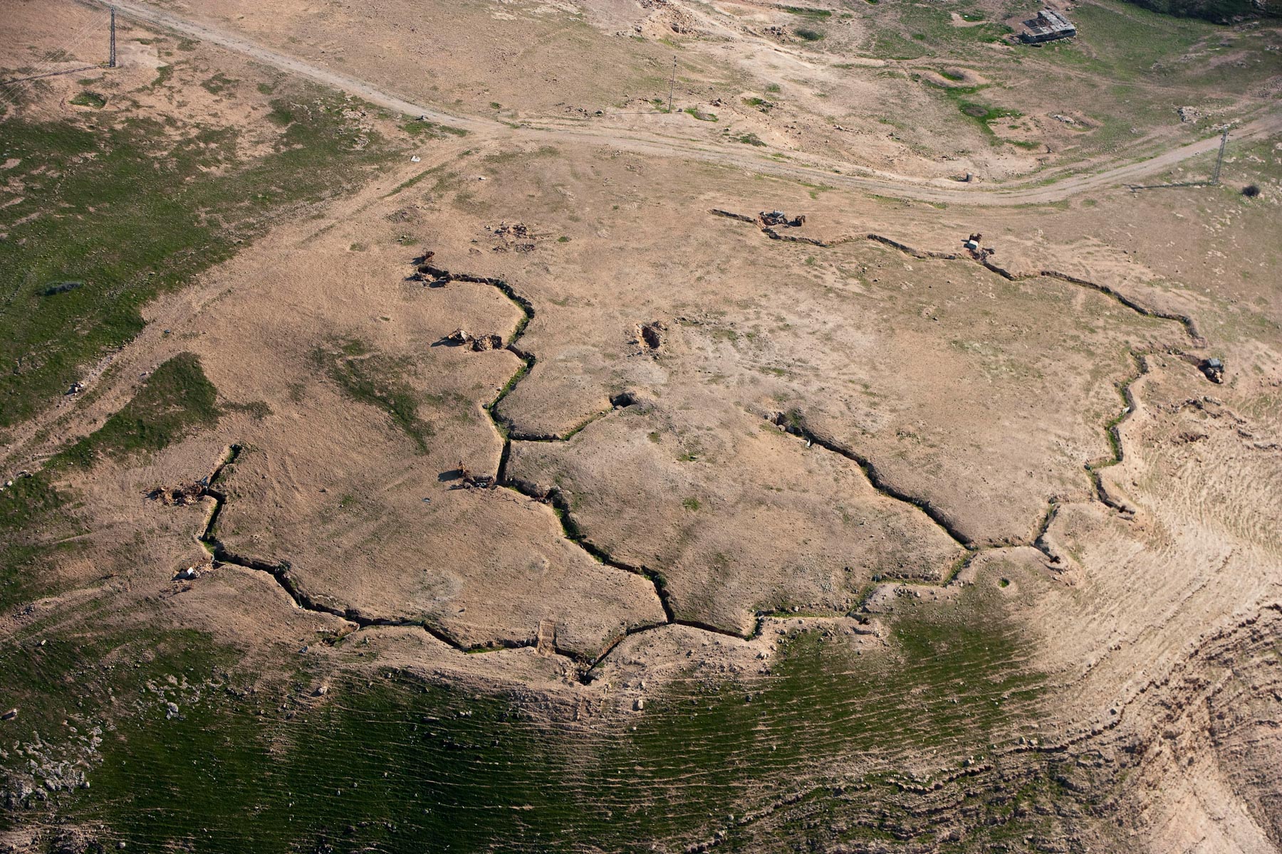 Tranchées militaires dans la vallée du Jourdain, Cisjordanie (31°46'12.09"N - 35°20'17.26"E)