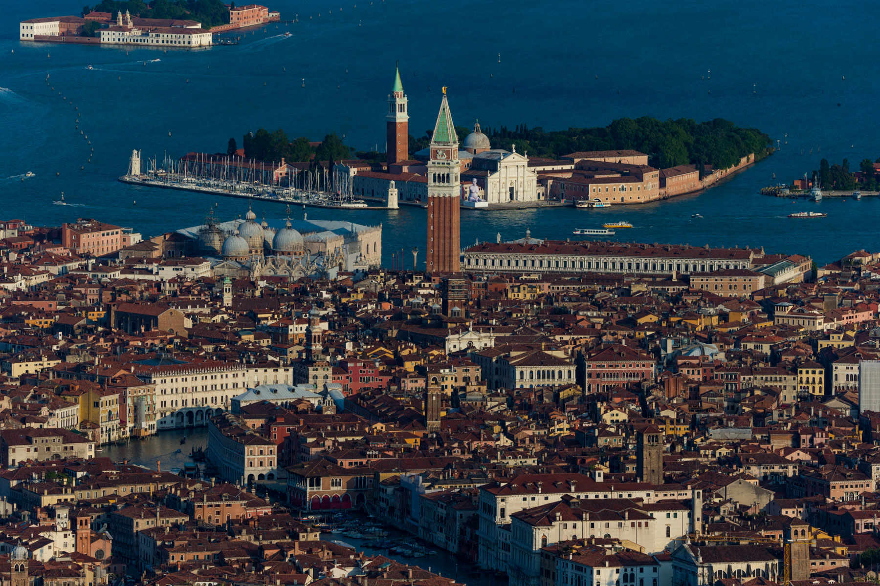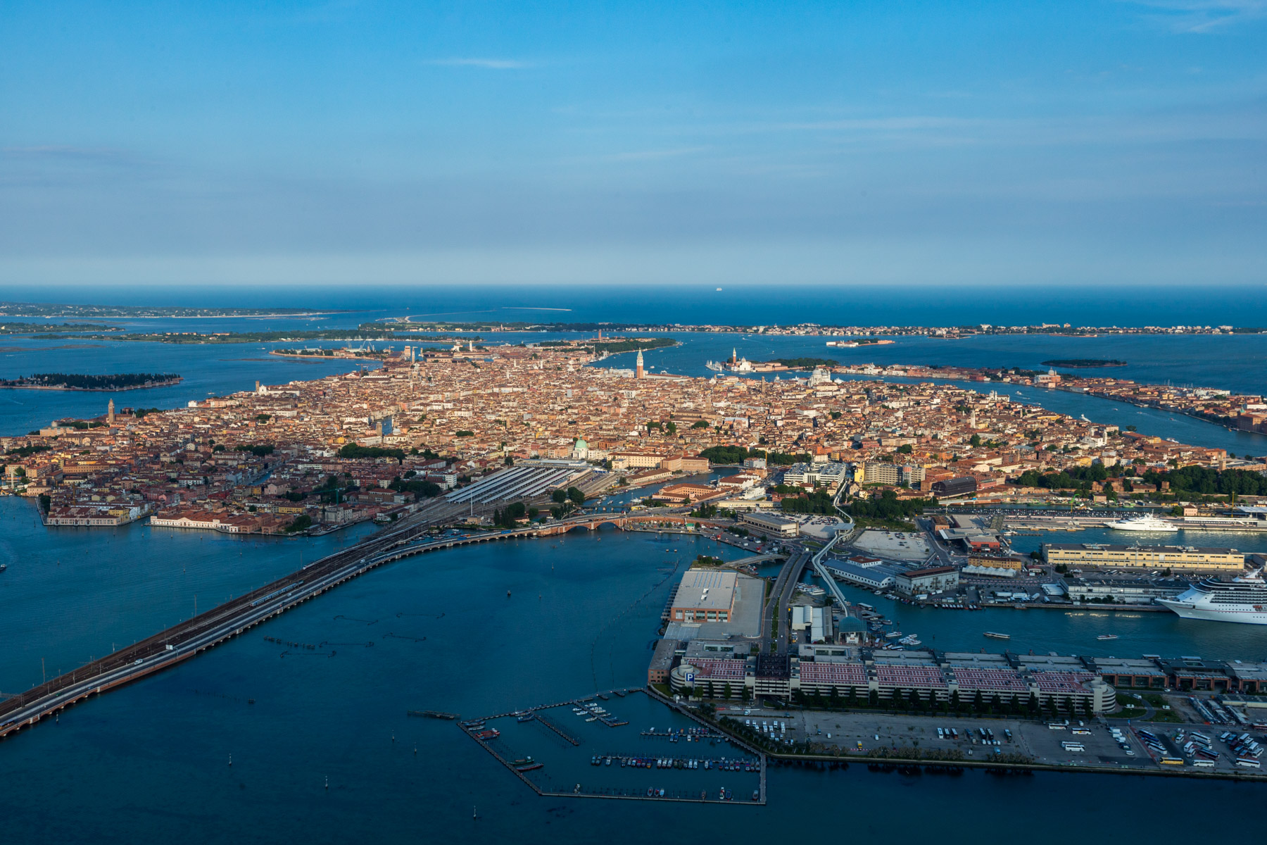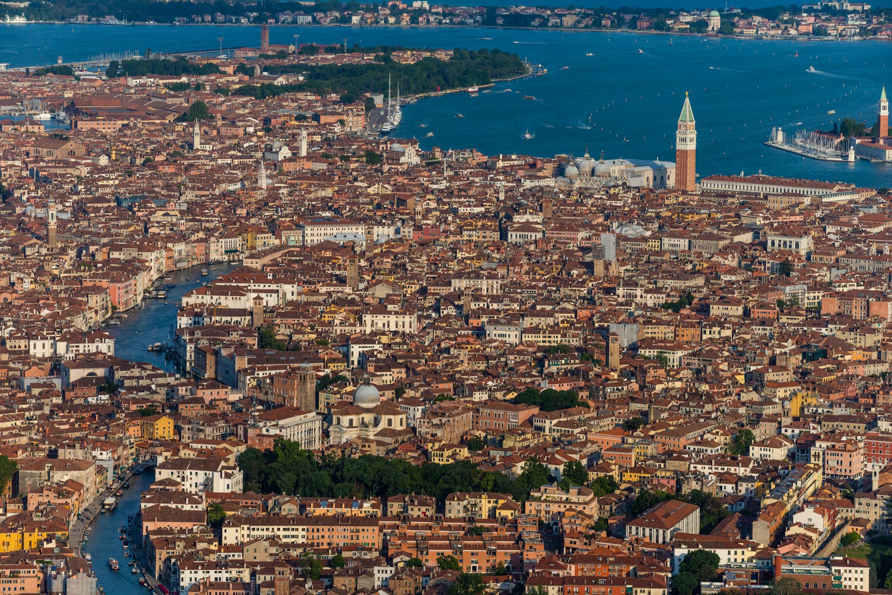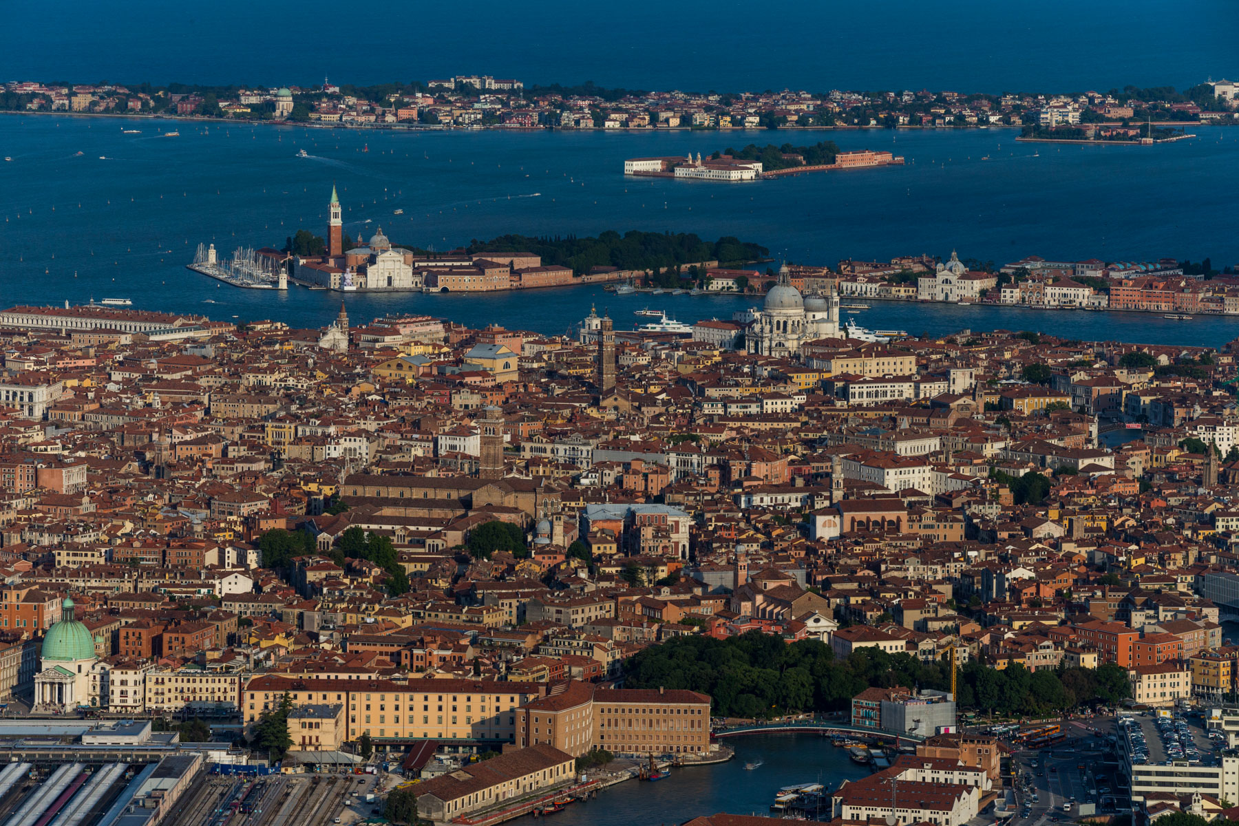 General view of Venice, Veneto, Italy (45°25' N – 12°21' E).