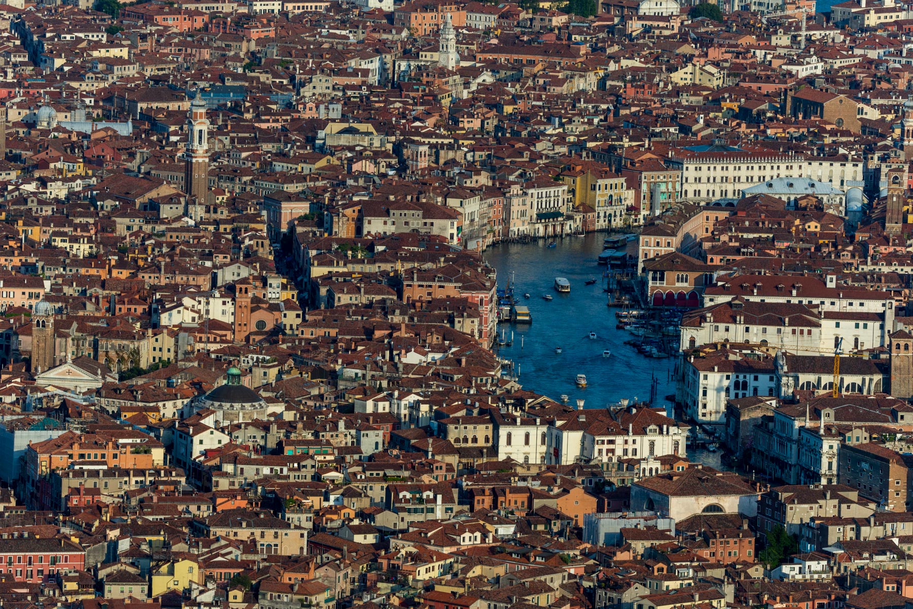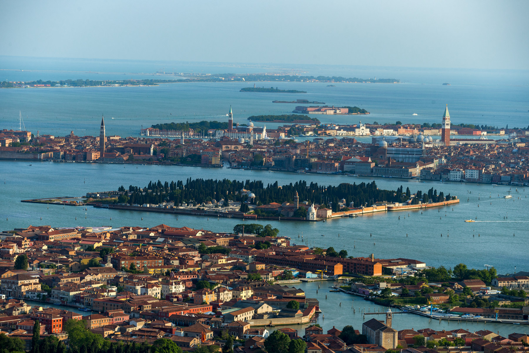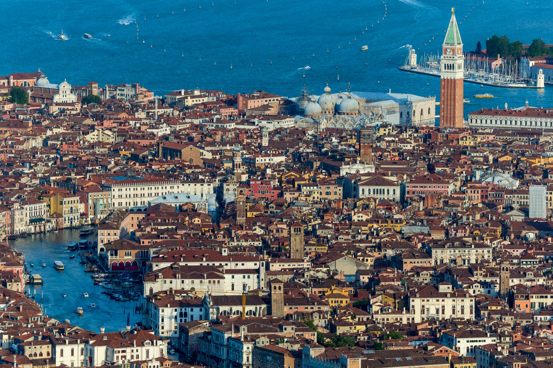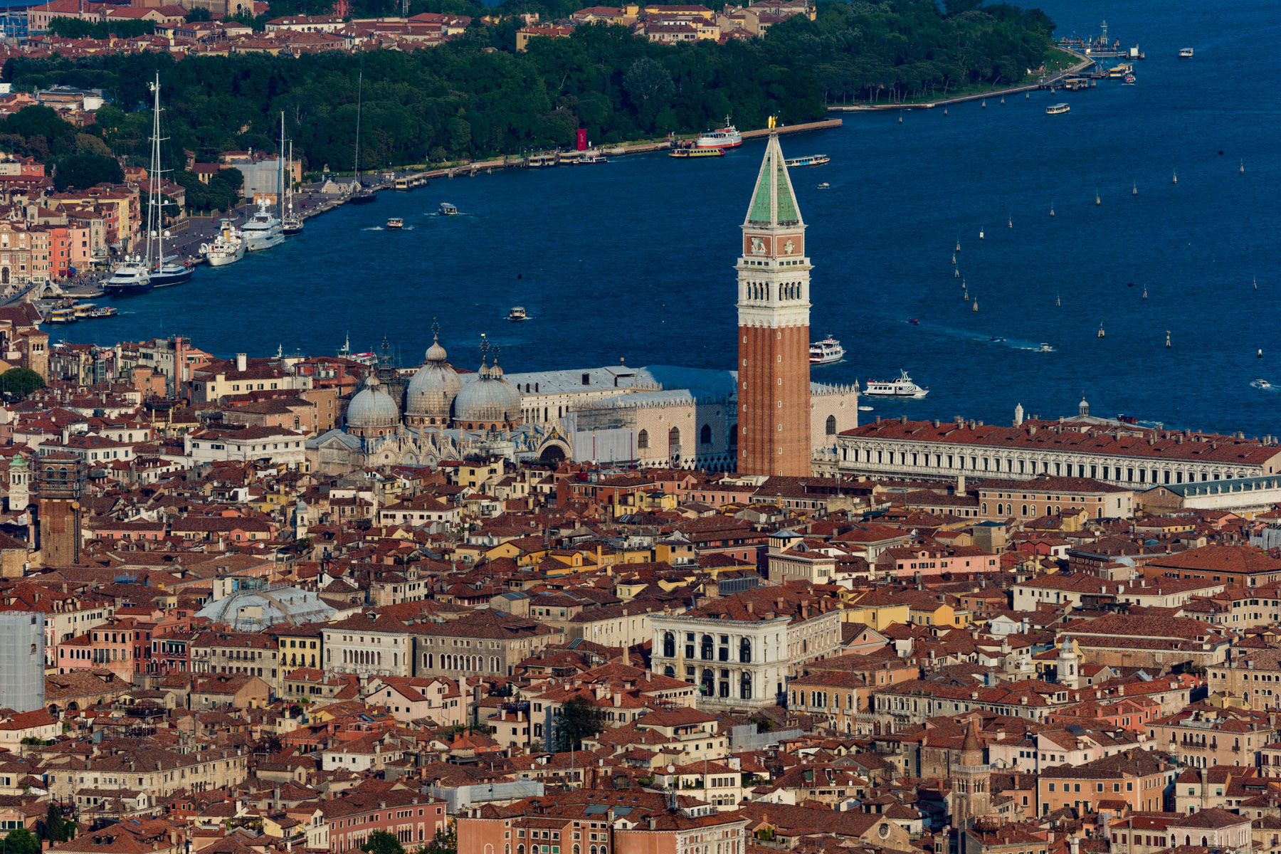 General view of Venice, Veneto, Italy (45°25' N – 12°21' E).