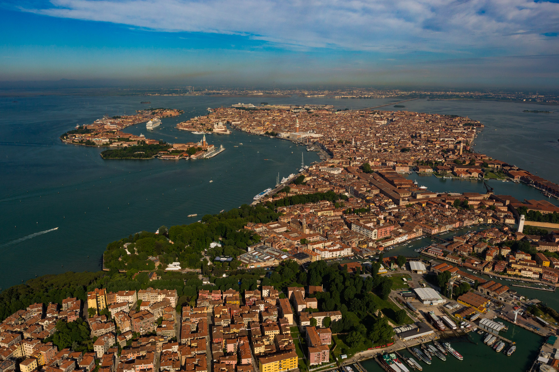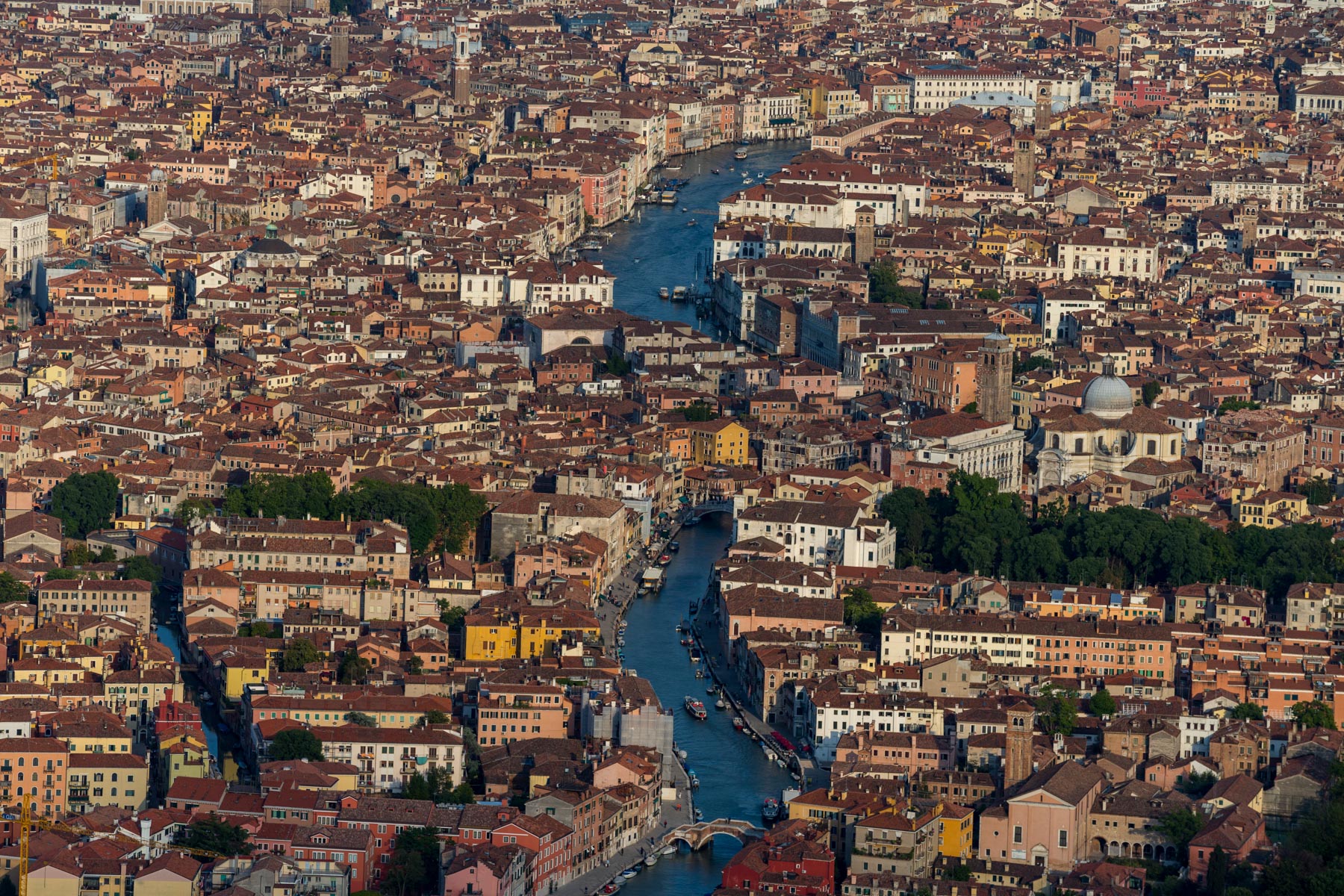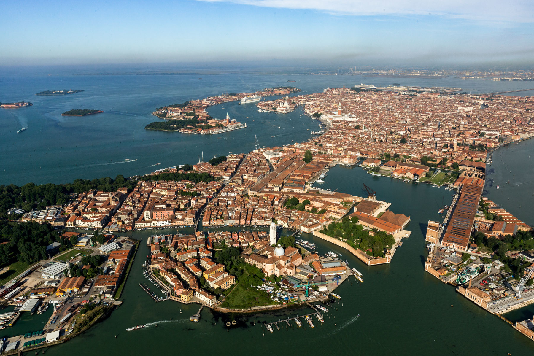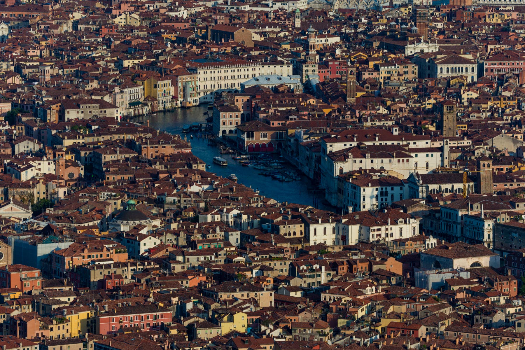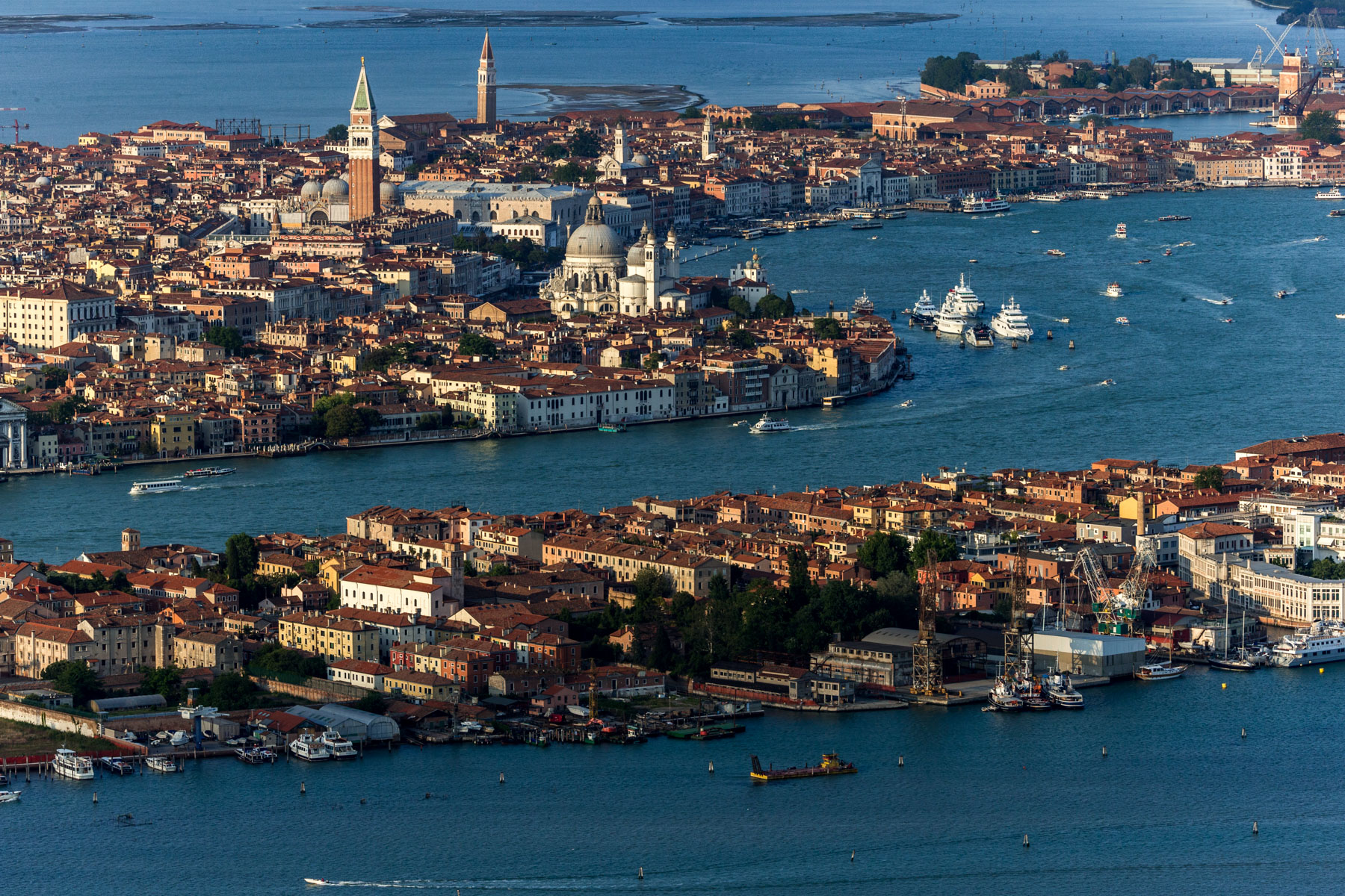 General view of Venice, Veneto, Italy (45°25' N – 12°21' E).
