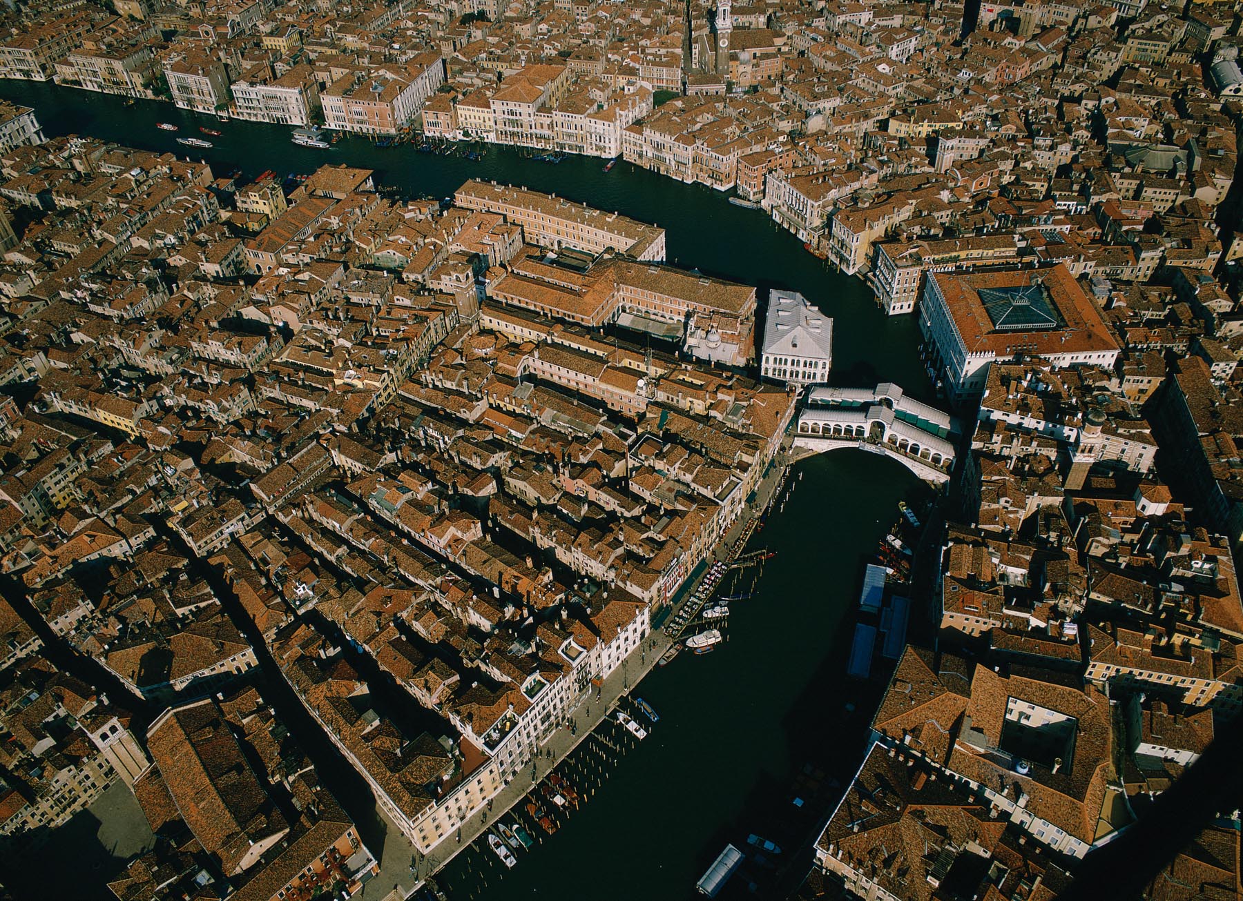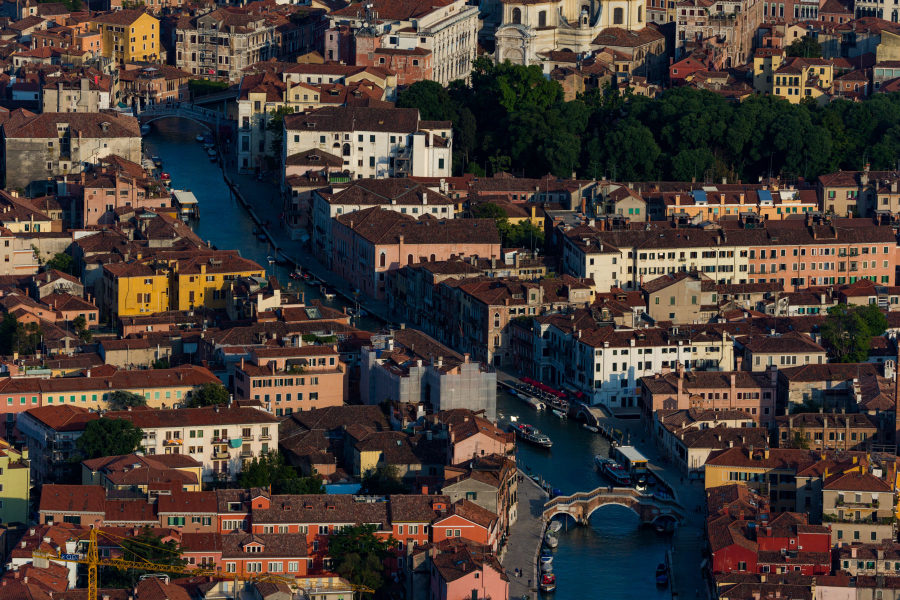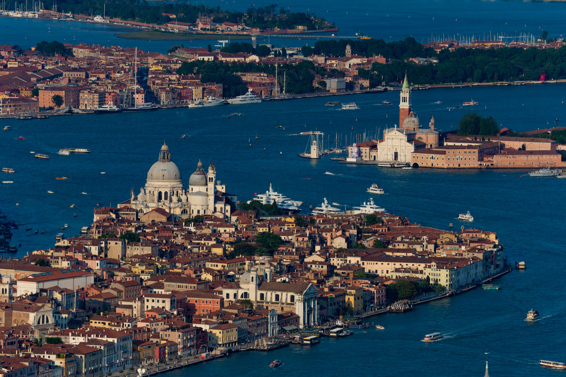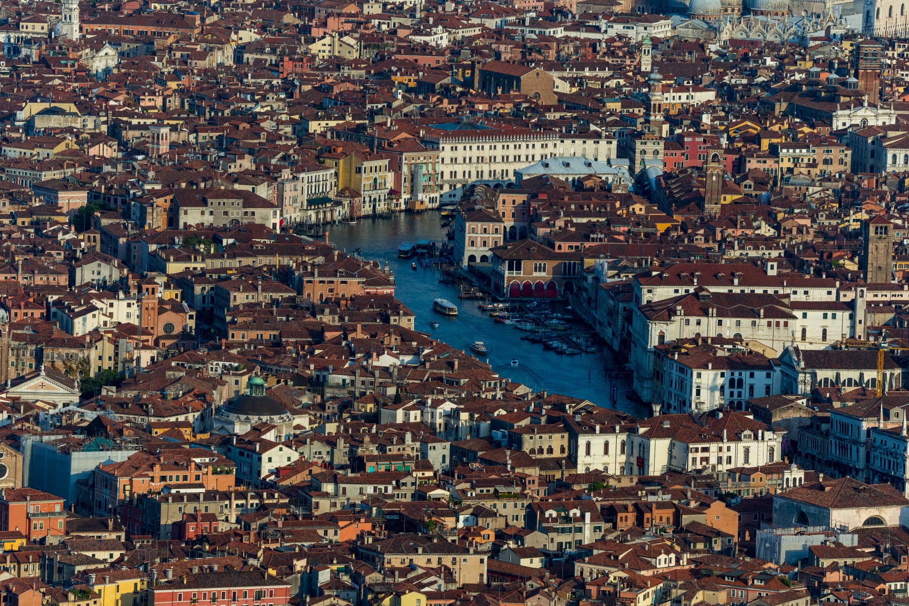 General view of Venice, Veneto, Italy (45°25' N – 12°21' E).