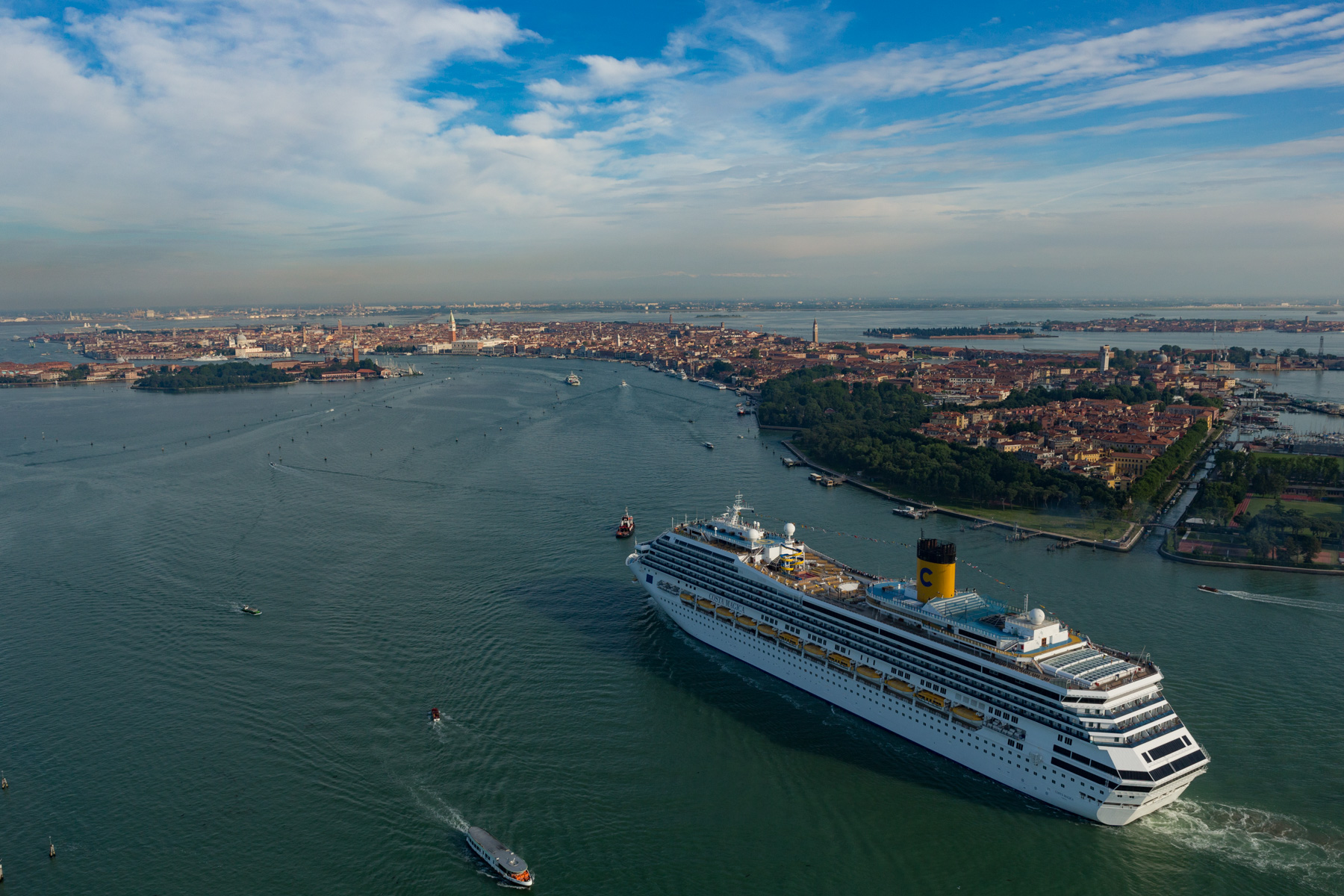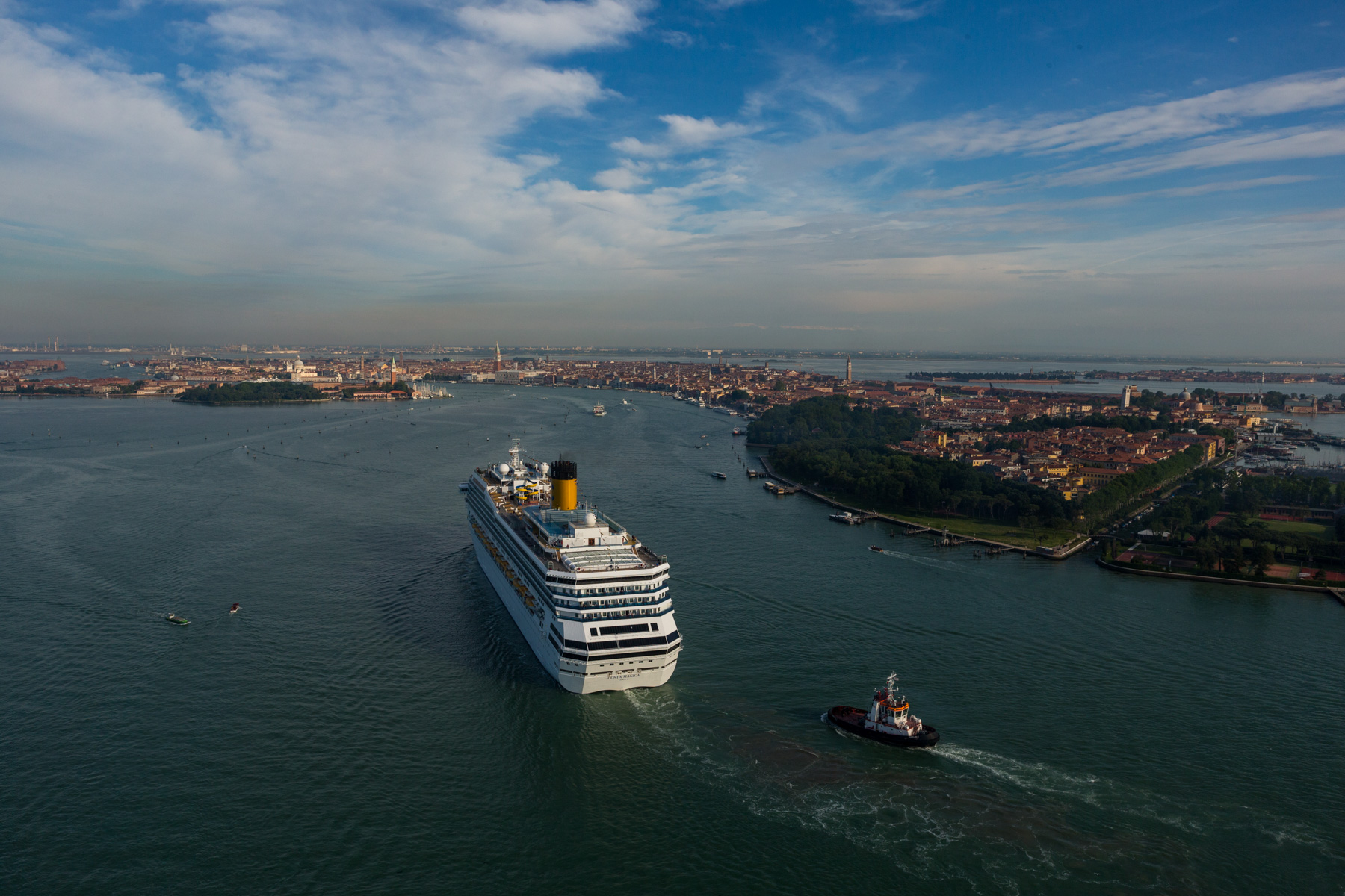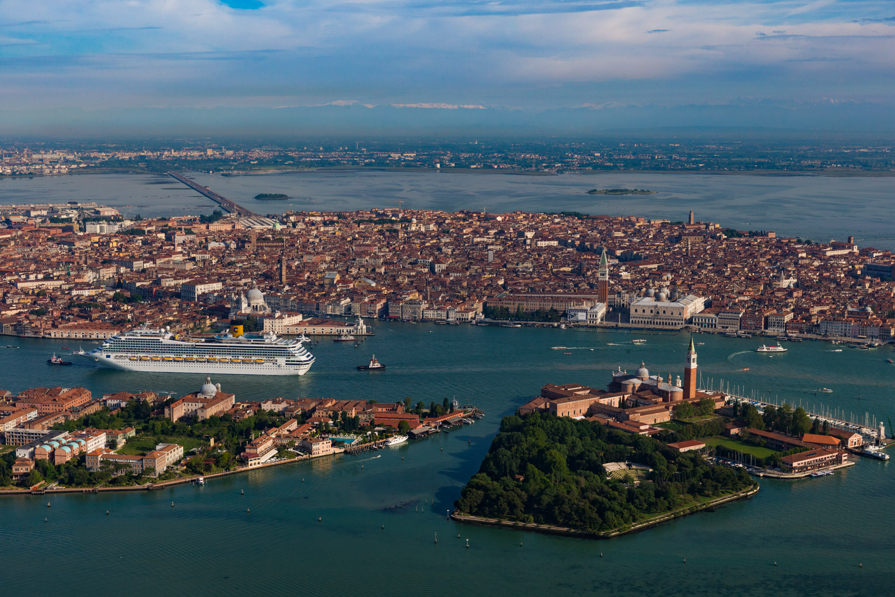 Paquebot arrivant à Venise, région de Vénétie, Italie (45°26'21.32"N-12°19'43.43"E)