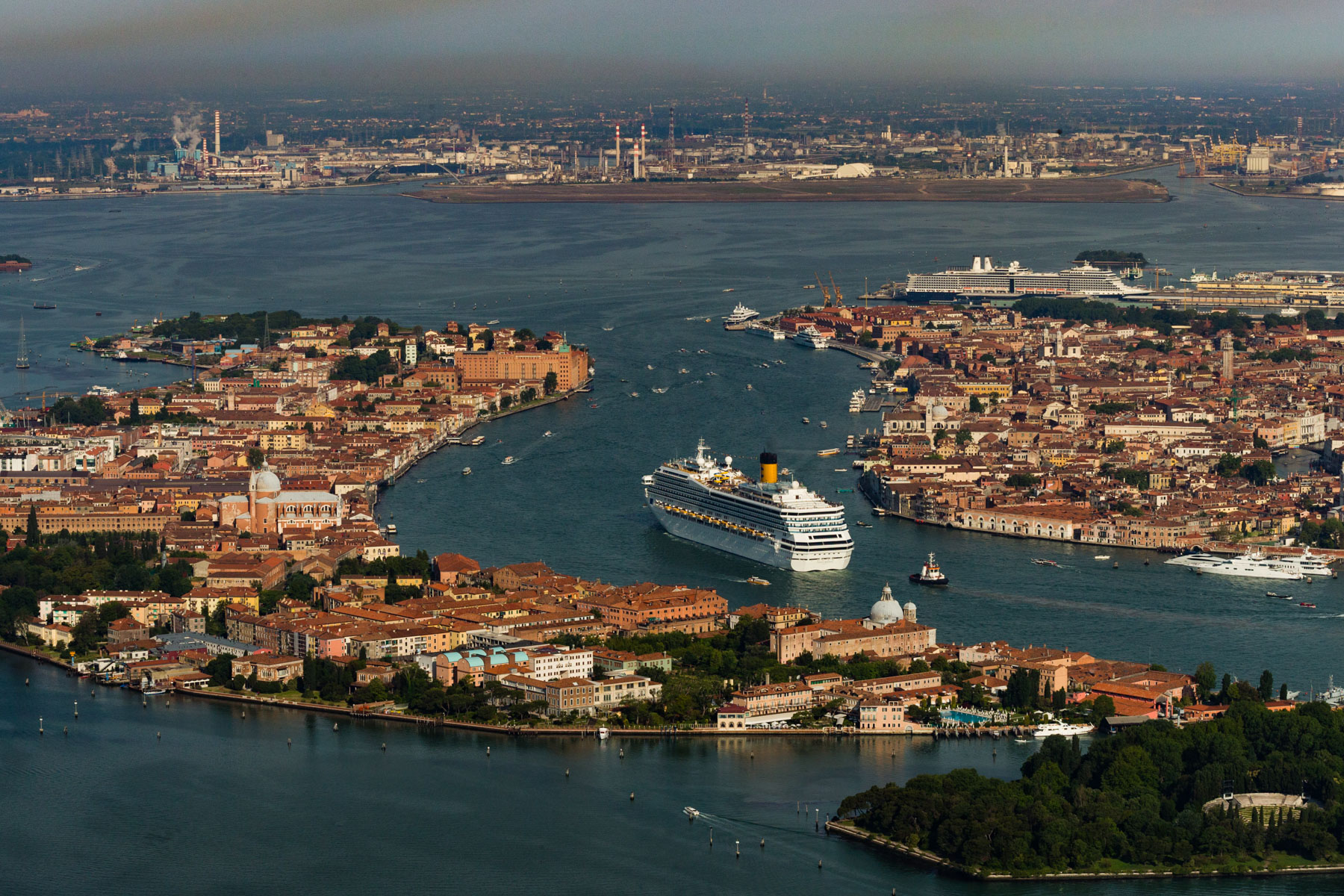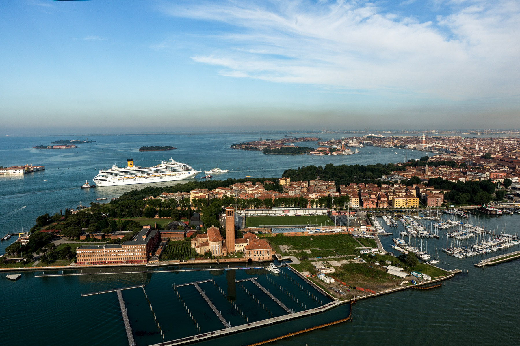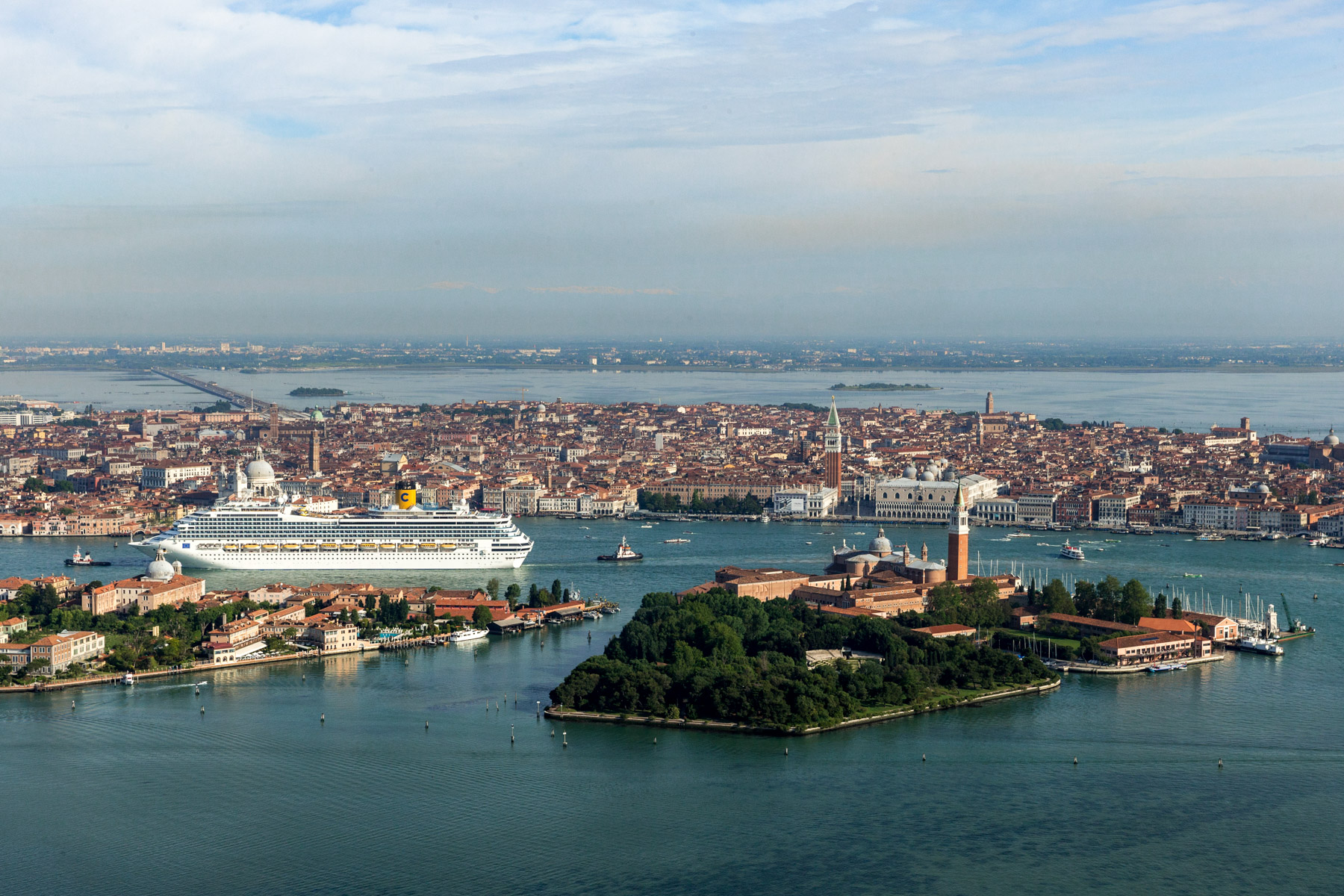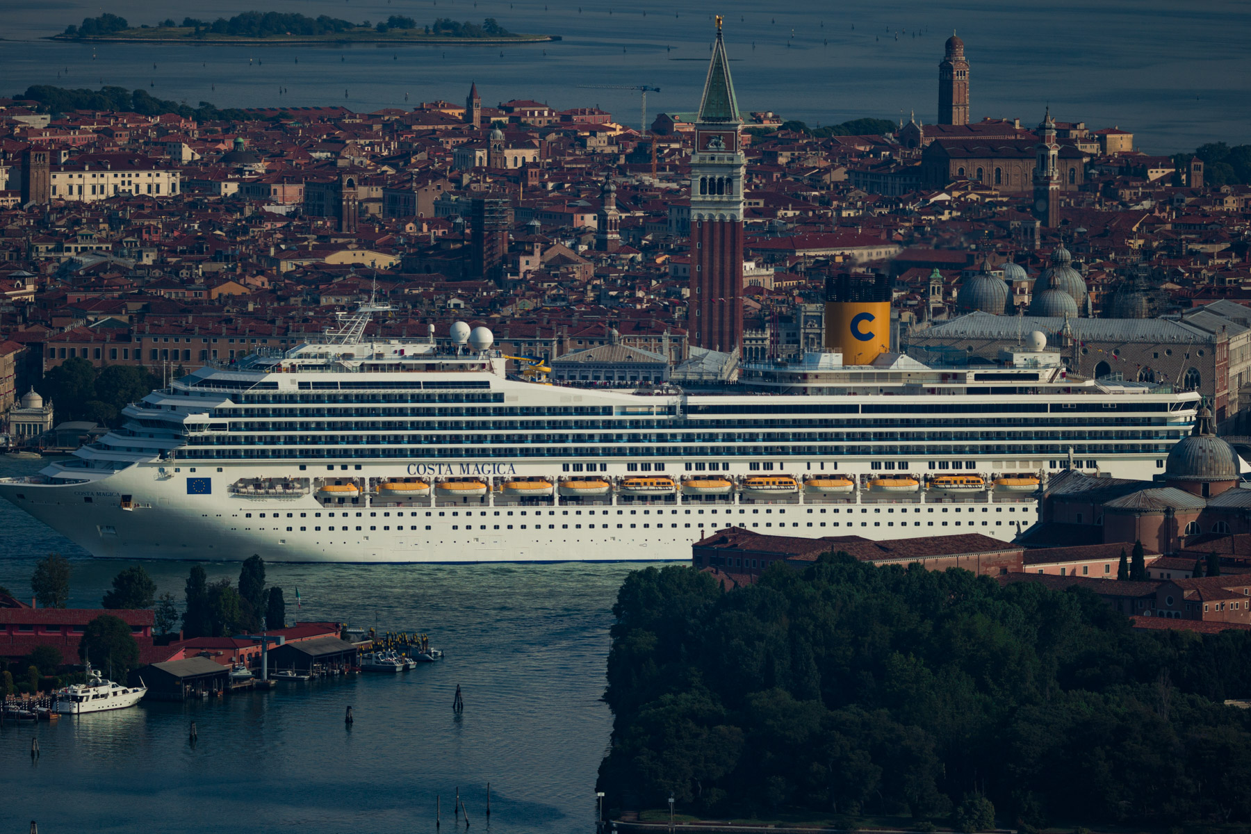 Paquebot arrivant à Venise, région de Vénétie, Italie (45°26'21.32"N-12°19'43.43"E)