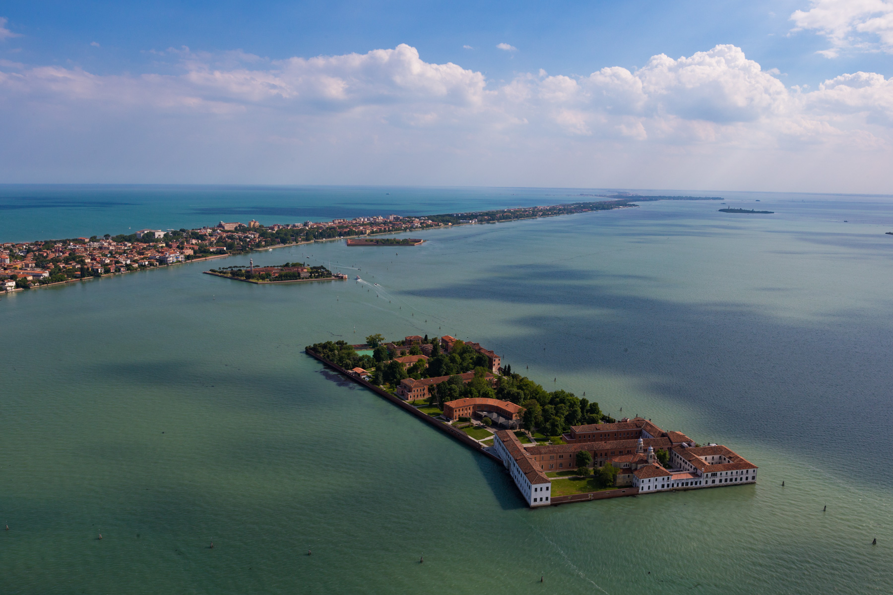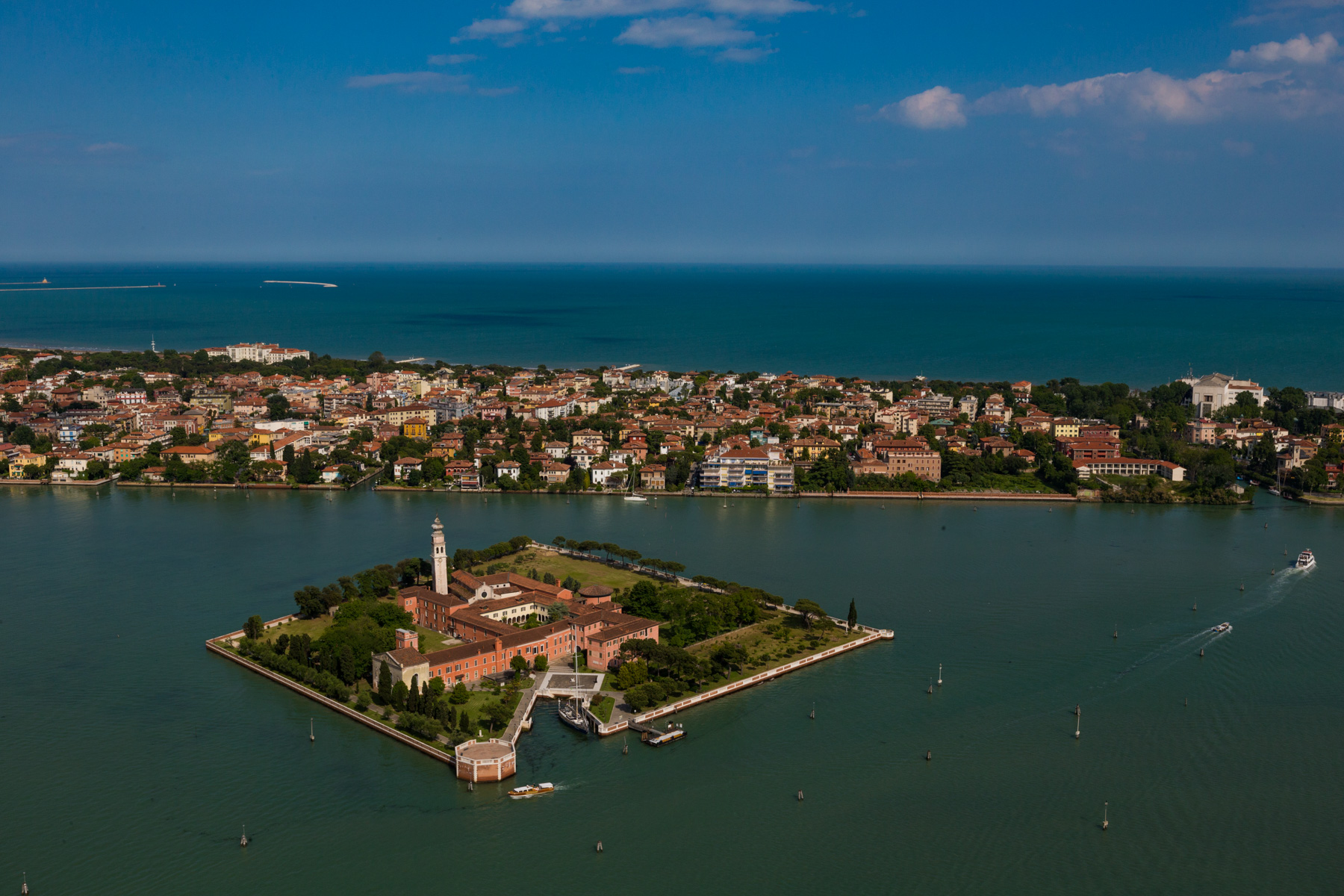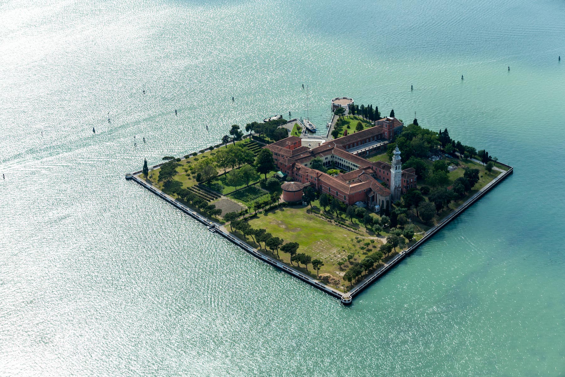 Isola de San Lazzaro degli Armeni, derrière la grande Ile du Lido, Venise, région de Vénitie, Italie (45°24'43.65"N-12°21'41.91"E)