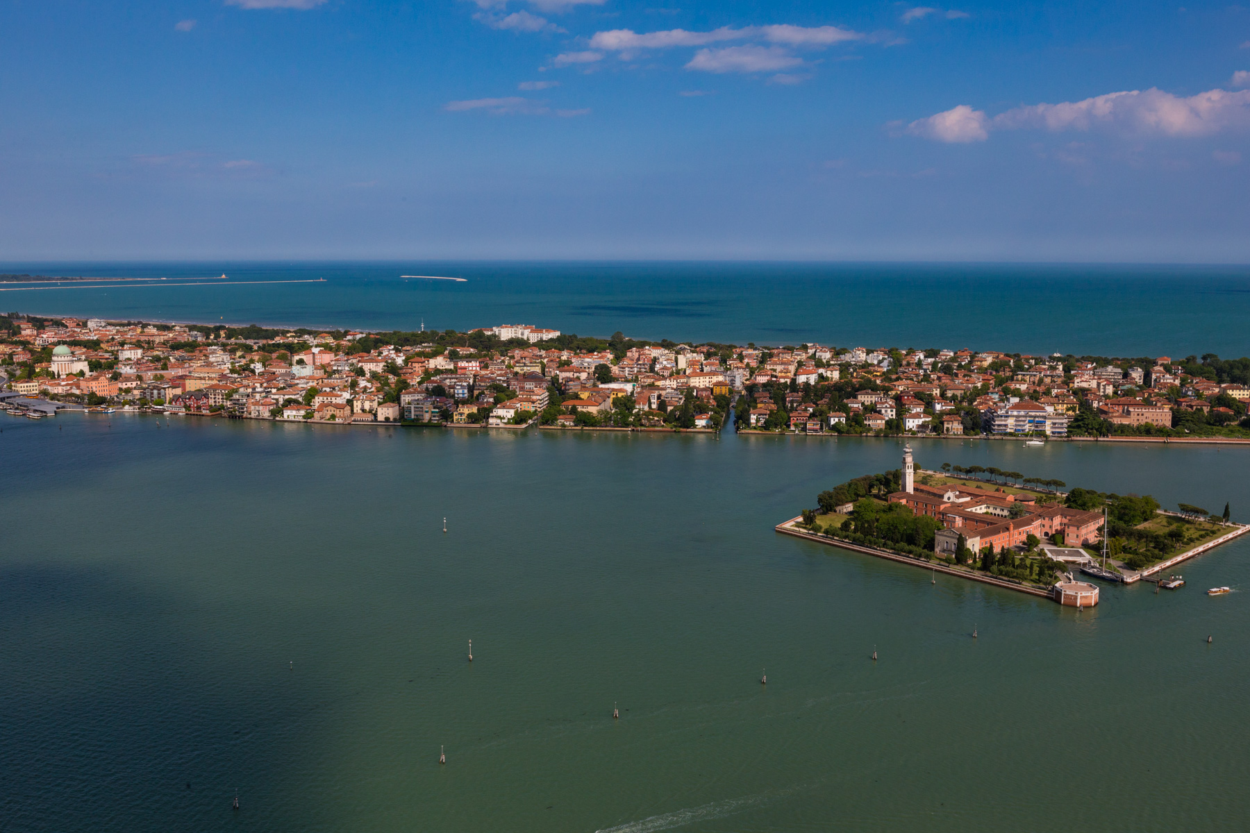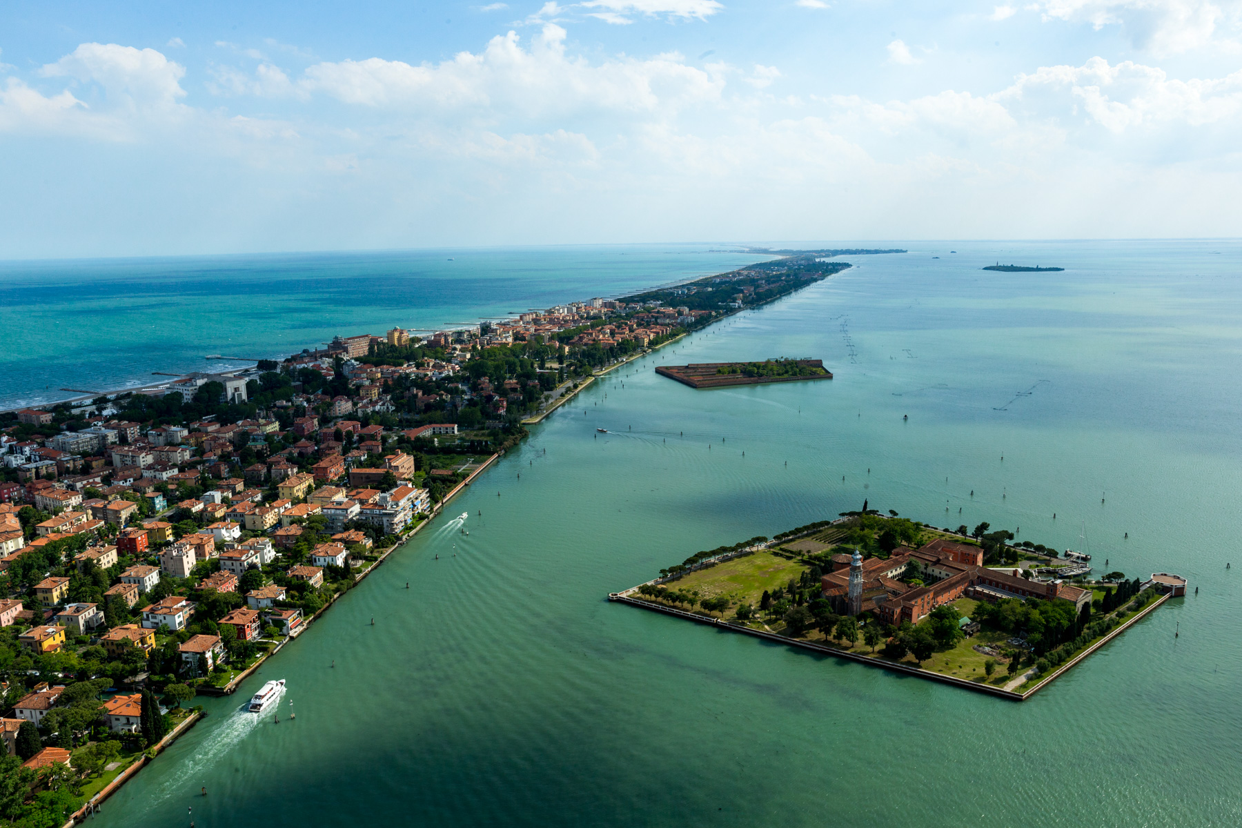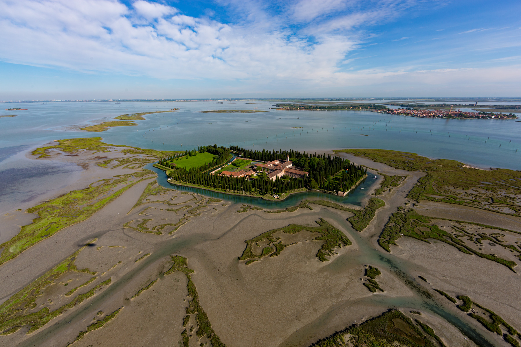 Isola de Sacca Sessola, Isola San Clemente à gauche et Isola San Spirito à droite, Venise, région de Vénitie, Italie (45°24'20.39"N- 12°19'14.31"E)