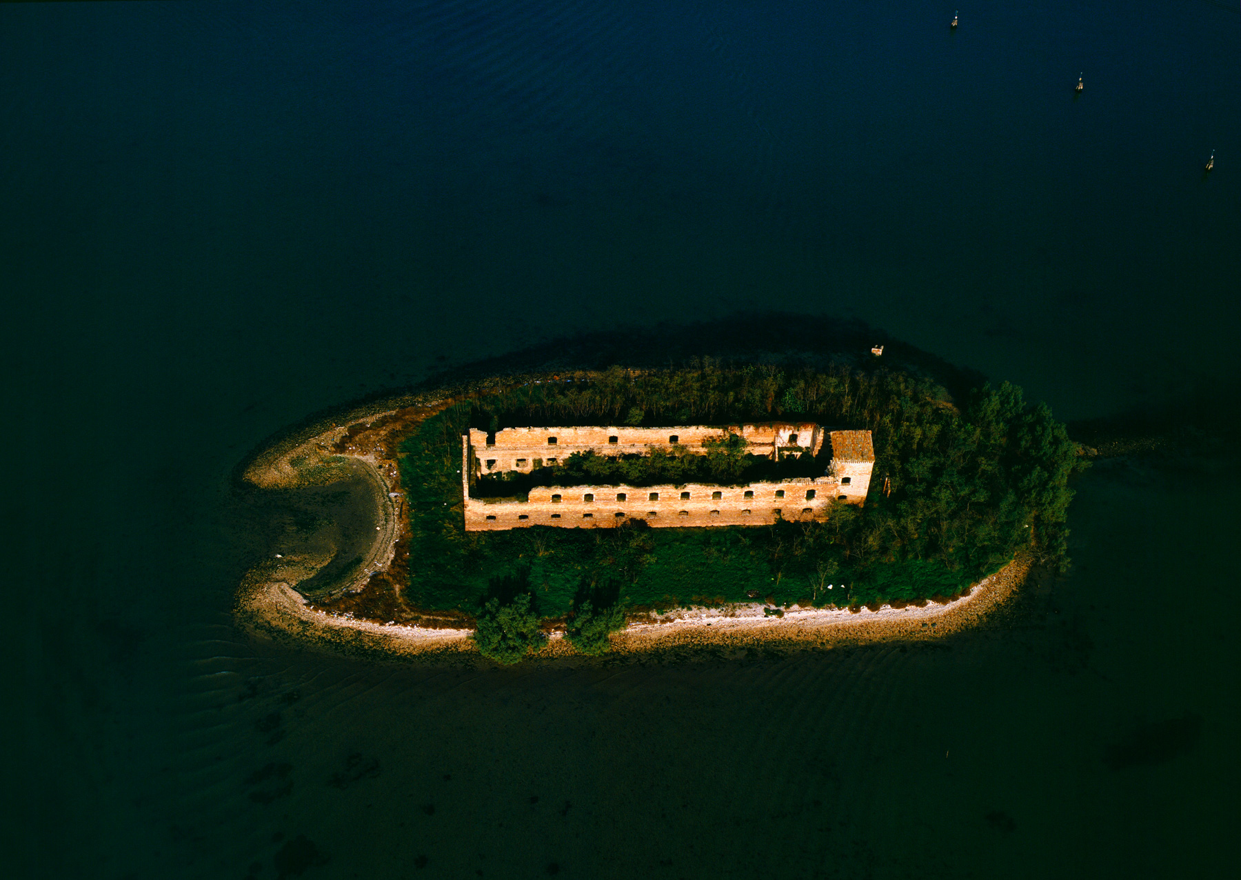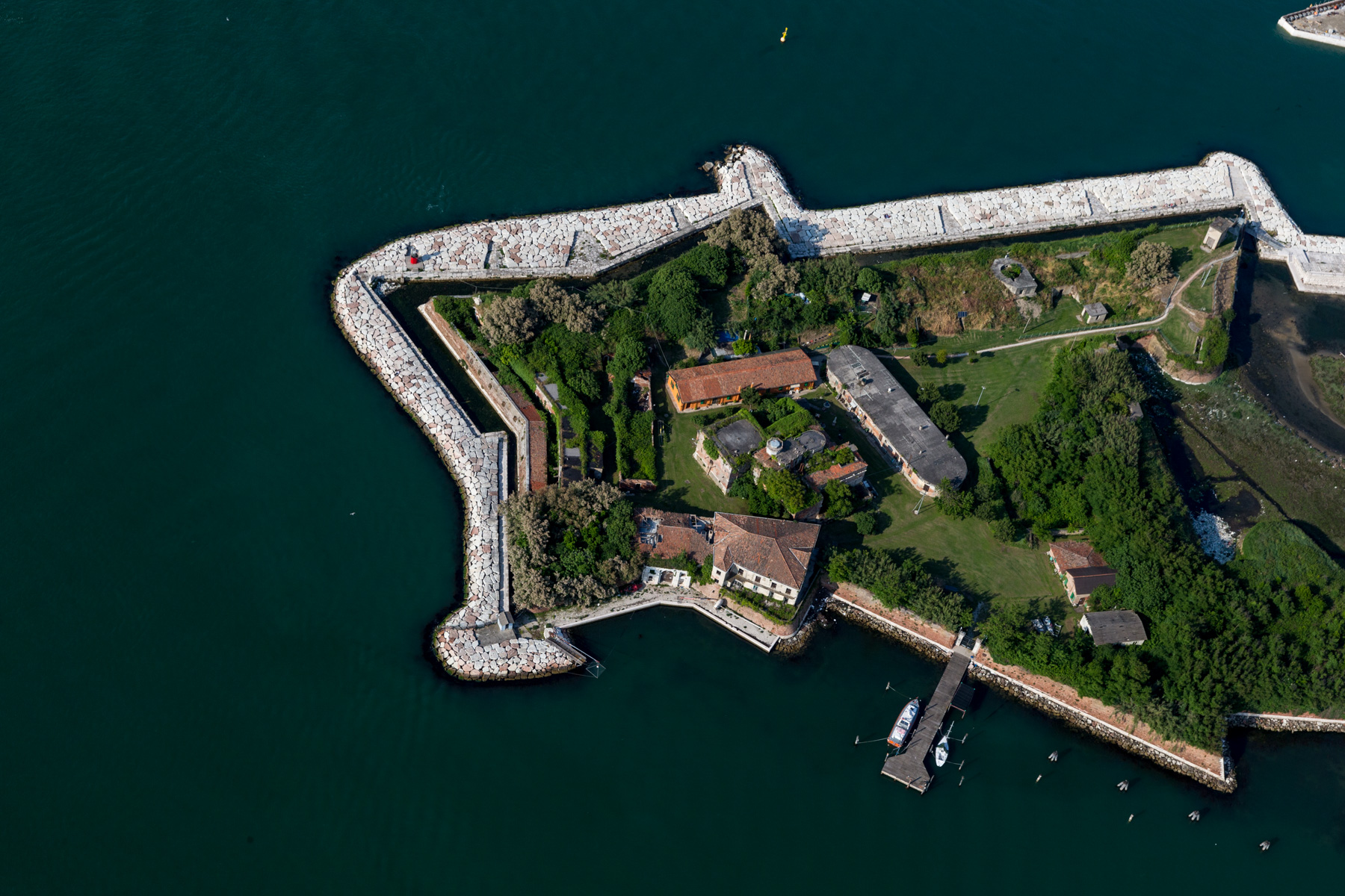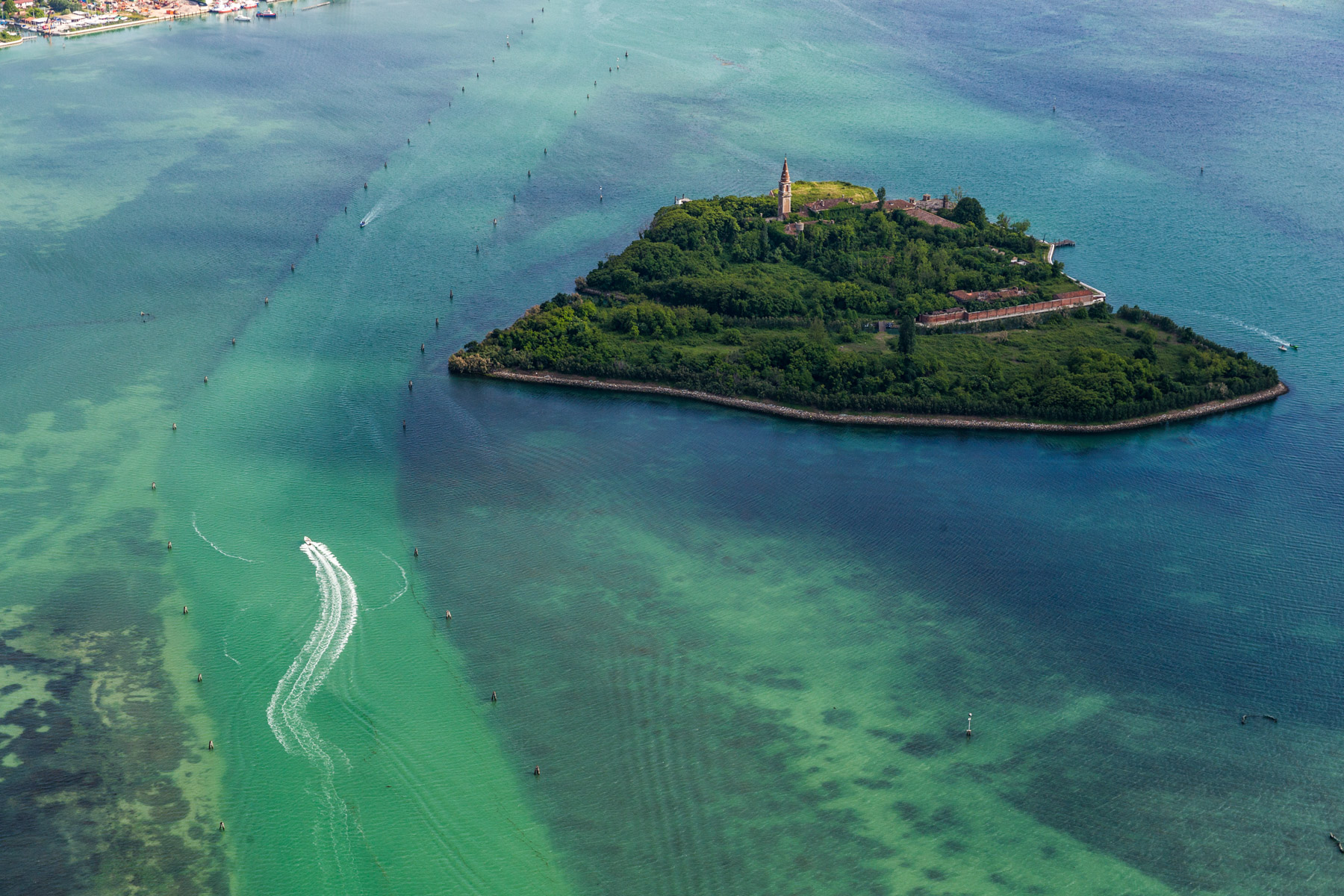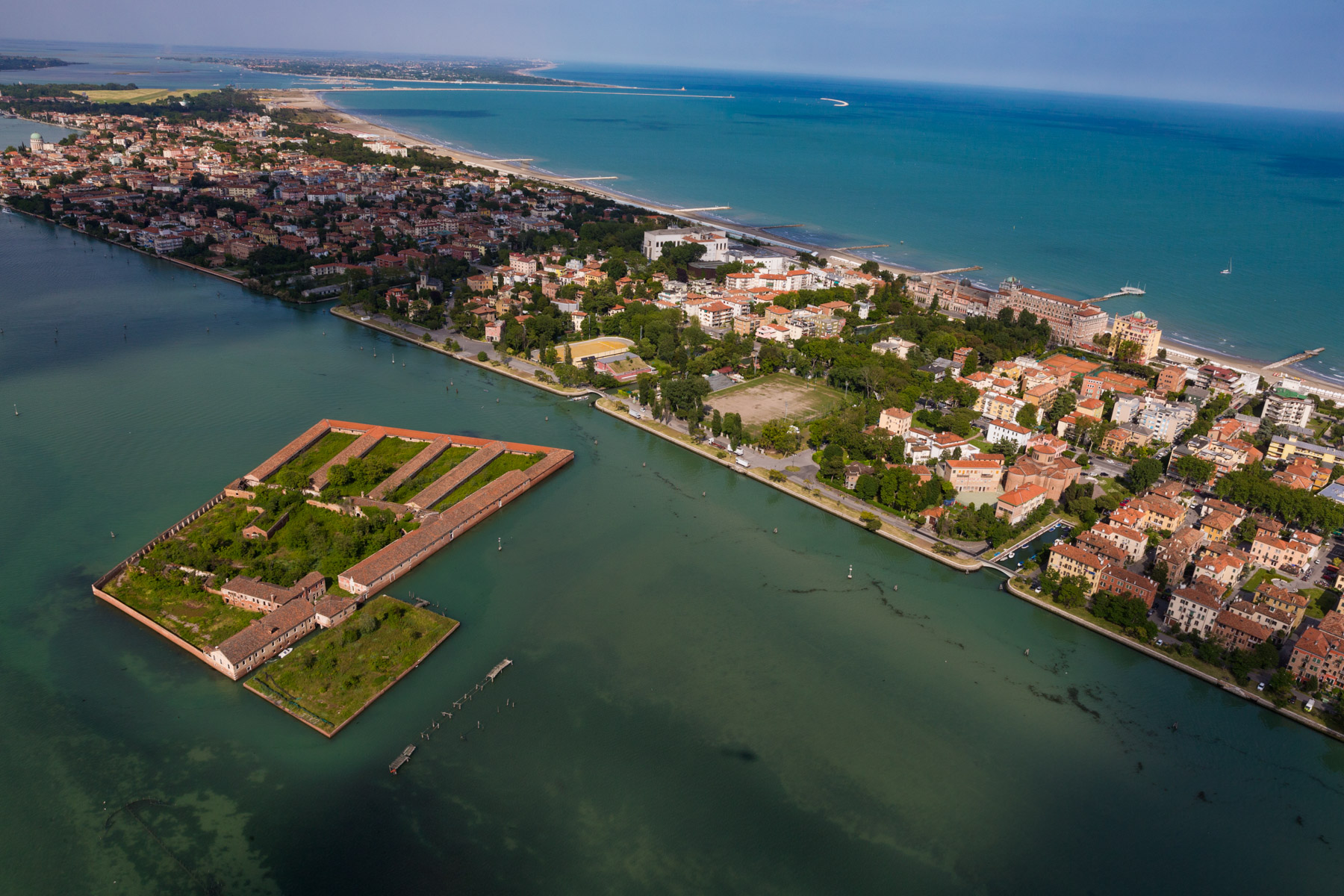 Isola de Lazzaretto Vecchio et en fond la grande Ile du Lido; Venise, région de Vénitie, Italie (45°24'22.39"N-12°21'35.47"E)
