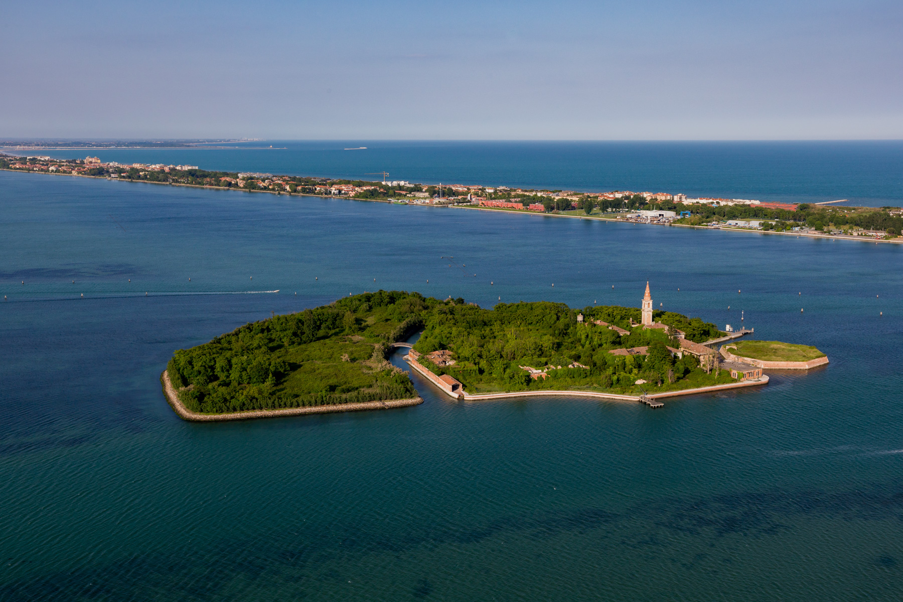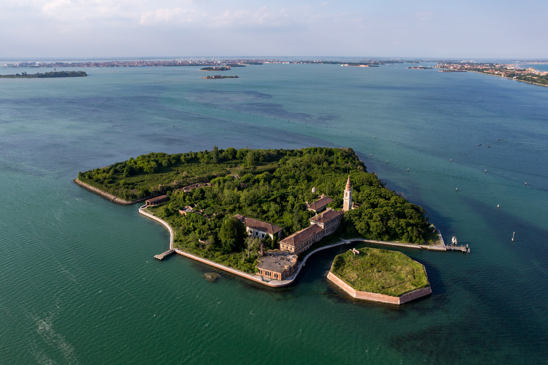 Isola de Poveglia est une île située dans la lagune de Venise près de Malamocco, partie méridionale de l'île du Lido, Venise, région de Vénitie, Italie (45°22'54.39"N-12°19'52.90"E)