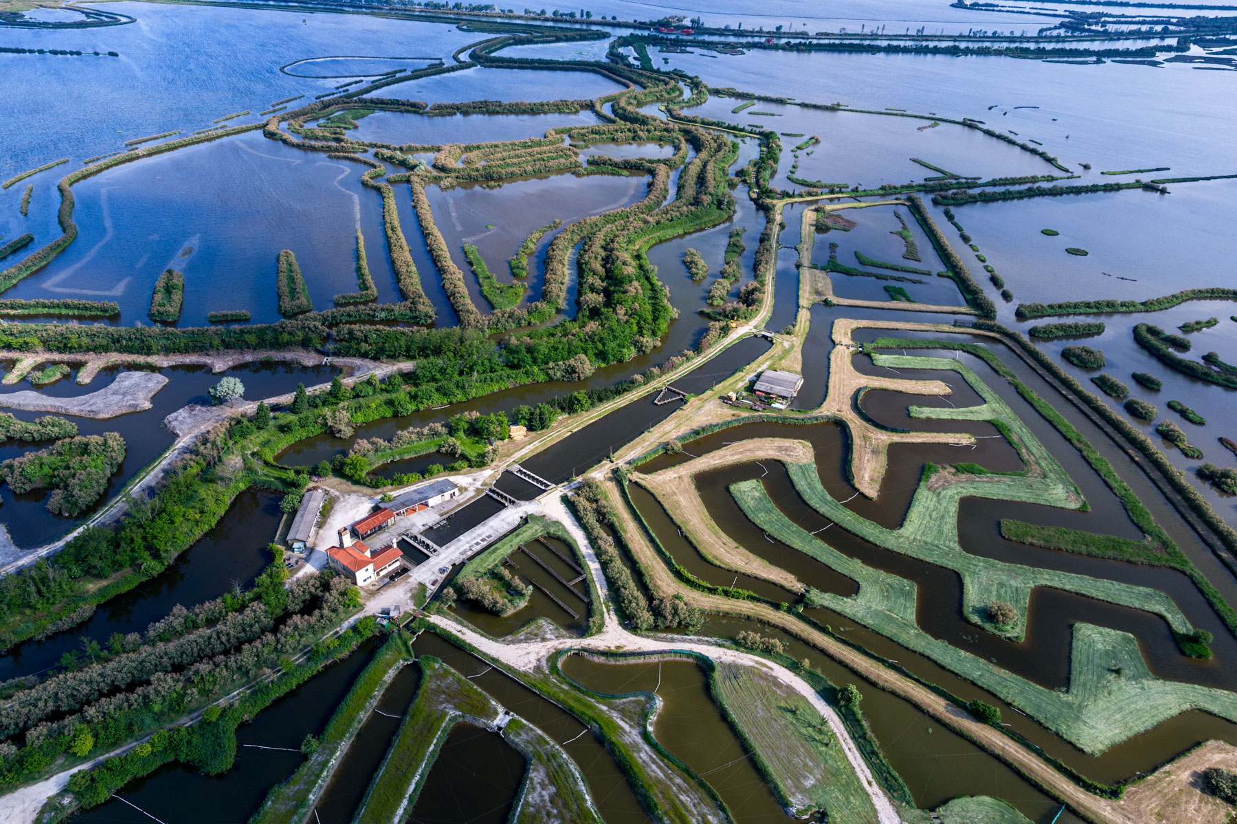 Lagune, Ferme Piscicole, Venise, région de Vénitie, Italie( 45°30'50.20"N-12°33'54.05"E)