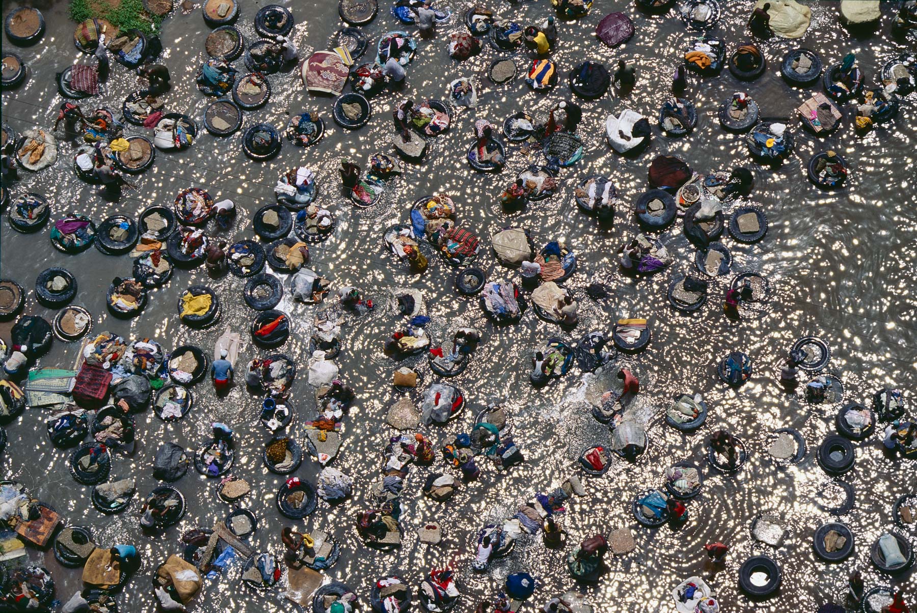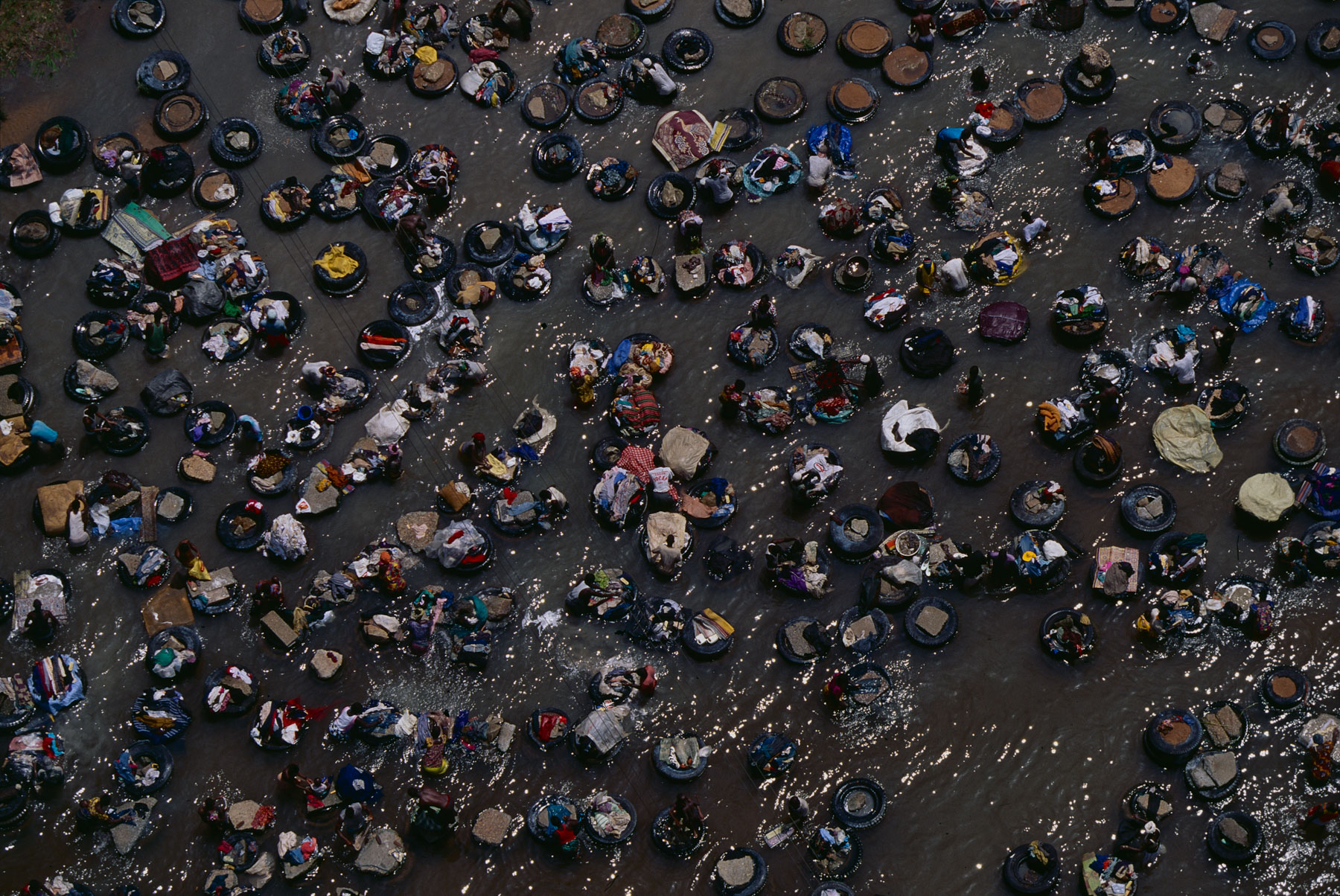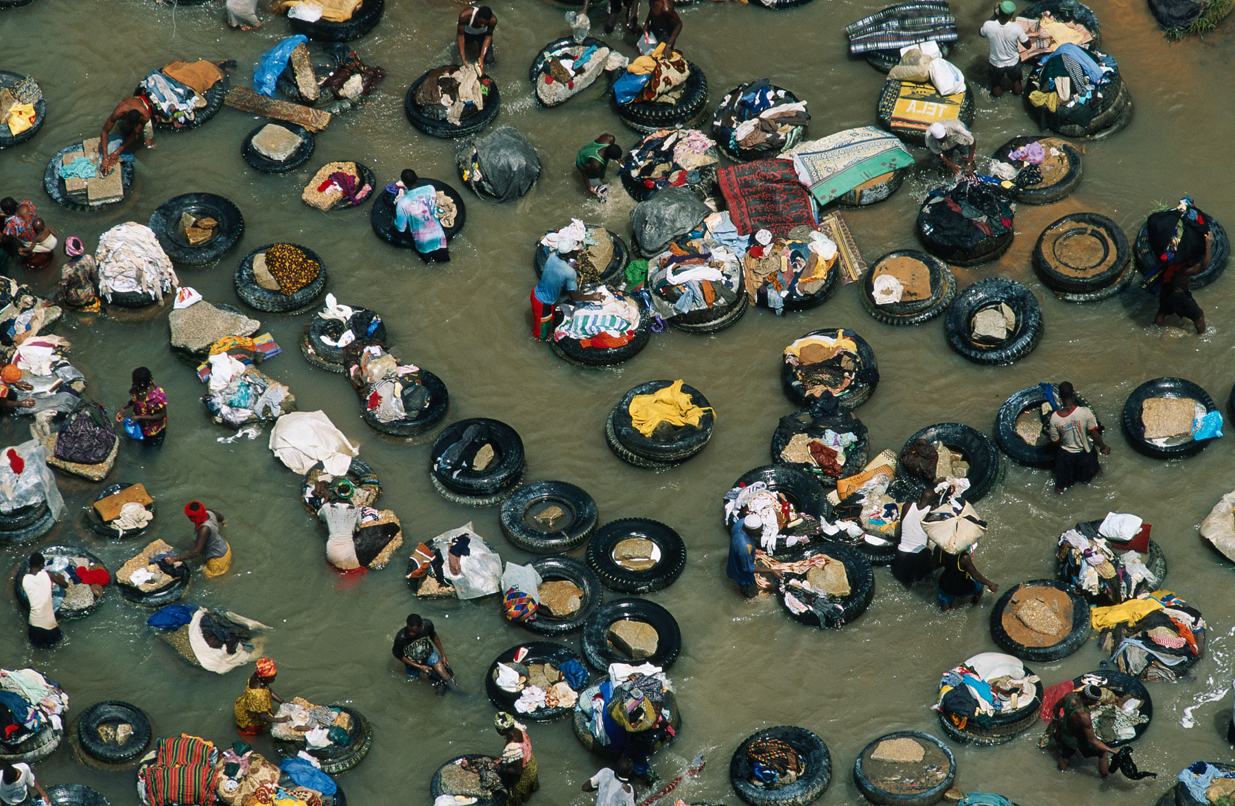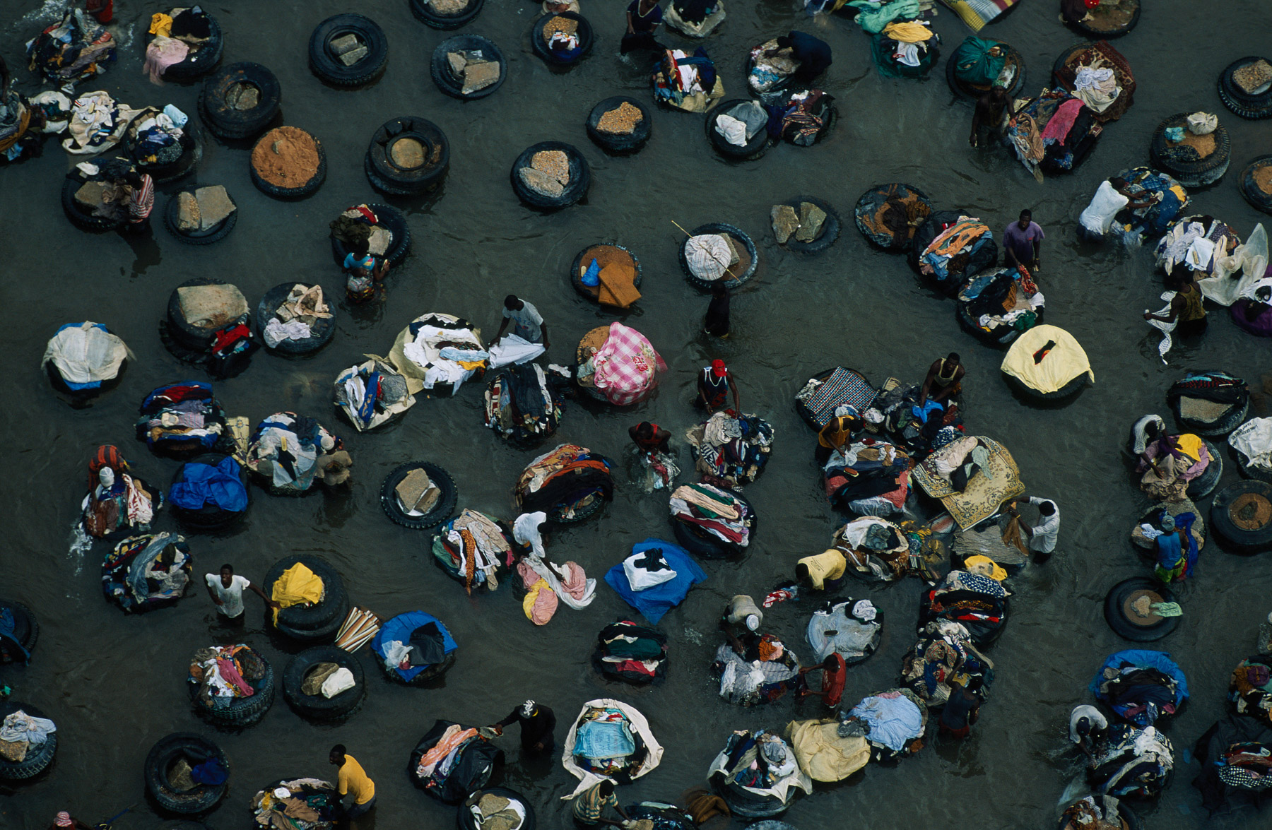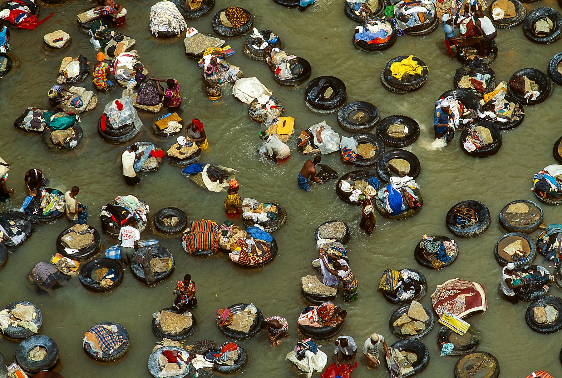 Washing laundry in a creek in the Adjamé neighborhood in Abidjan, Ivory Coast (5°19' N – 4°02' W).