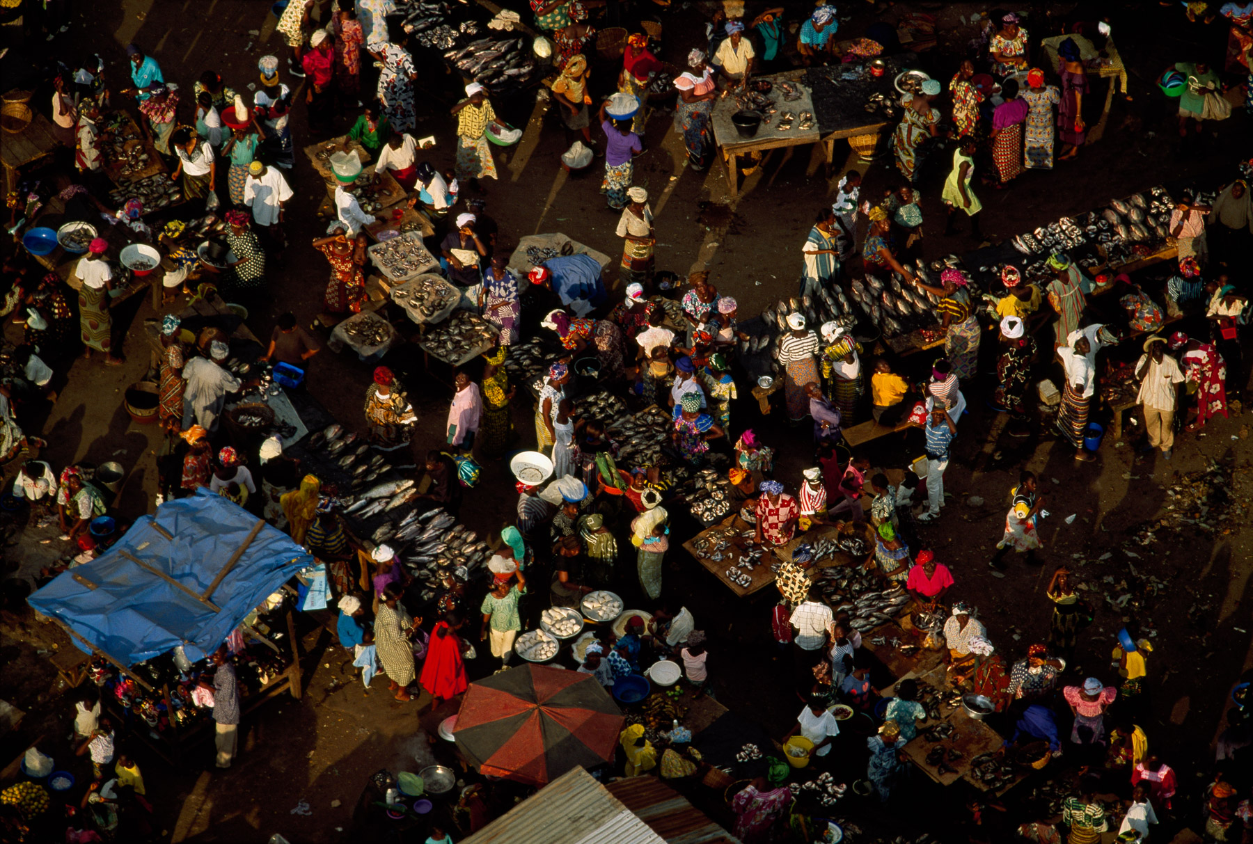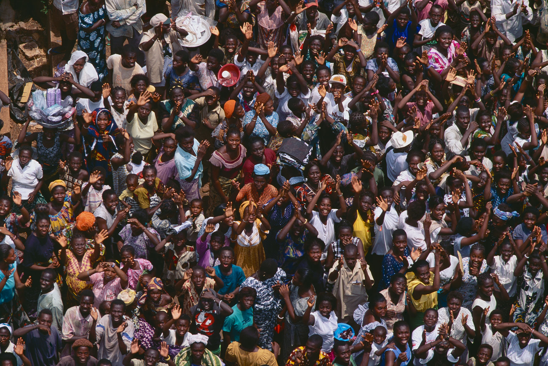 Crowd in Abengourou, Ivory Coast (6°44' N – 3°29' W).