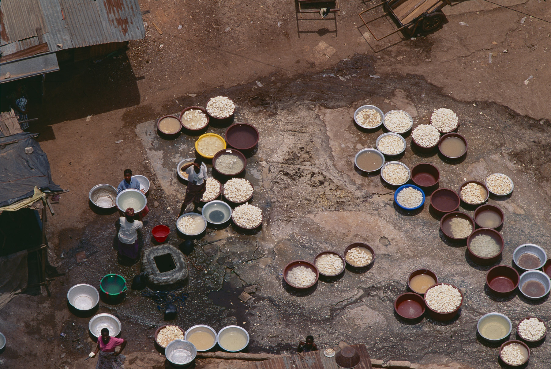 Yams drying in northern Tagadi, Bondoukou region, Ivory Coast (8°43' N - 2°39' W).