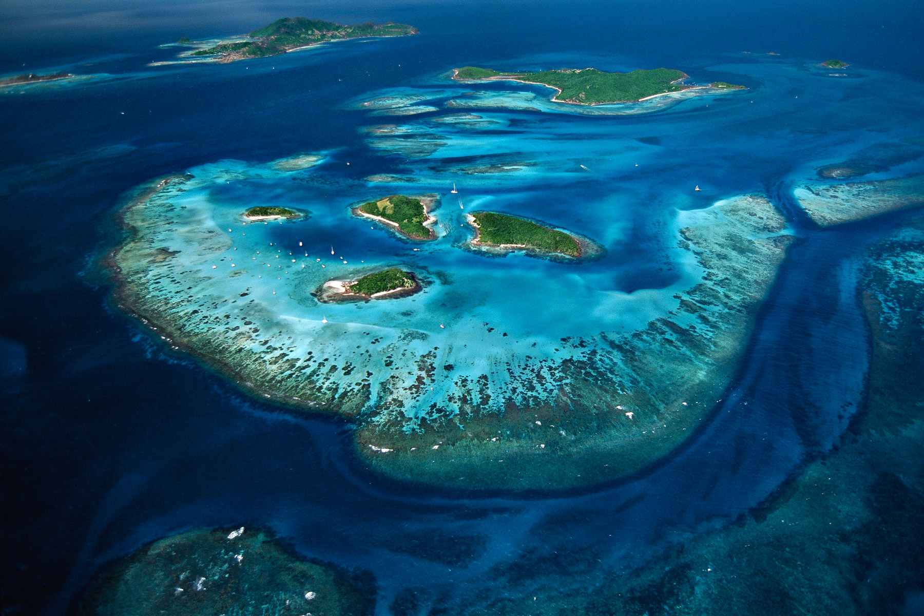 Îlots des Tobago Cays près d’Union Island, Saint-Vincent-et-les-Grenadines, Petites Antilles (13°15'N - 61°12'O)._Islands of the Tobago Keys, near Union Island, Saint Vincent and the Grenadines, Lesser Antilles (13°15'N - 61°12'W).