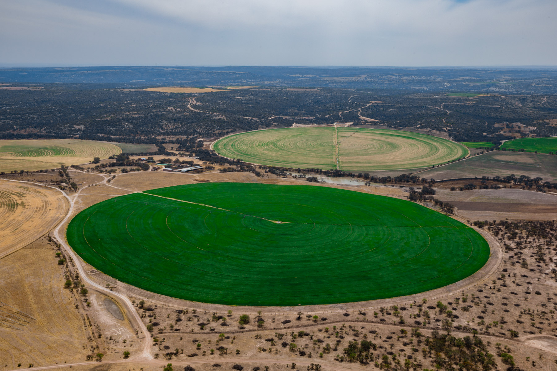 Champs circulaires près de Venta (sud de Aguascalientes), Etat de Aguascalientes, Mexique ( 21°40'51.58"N - 102°21'16.01"O)