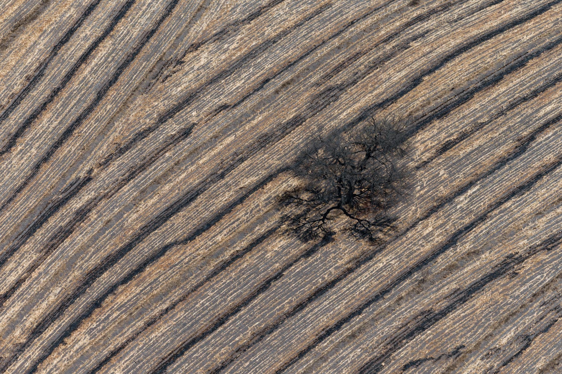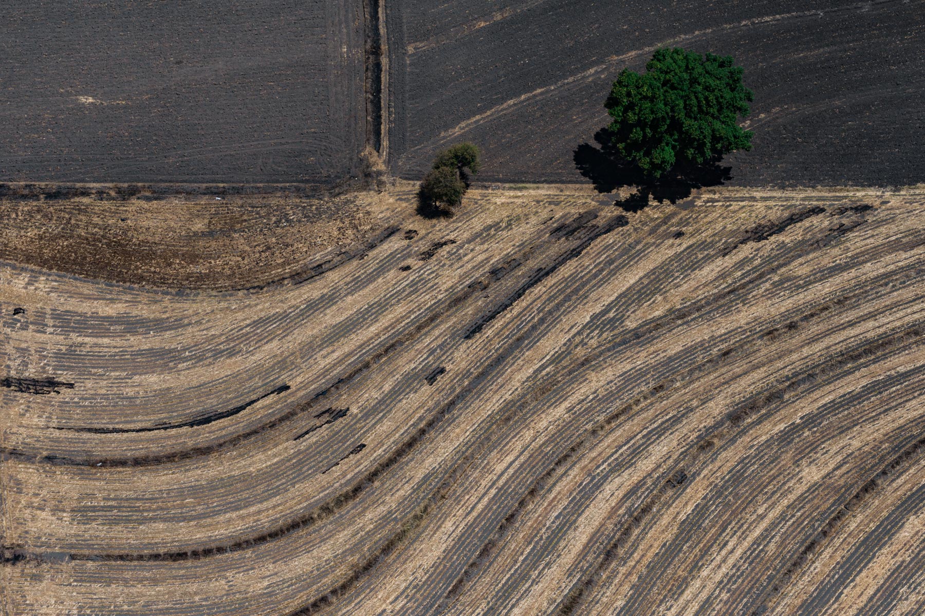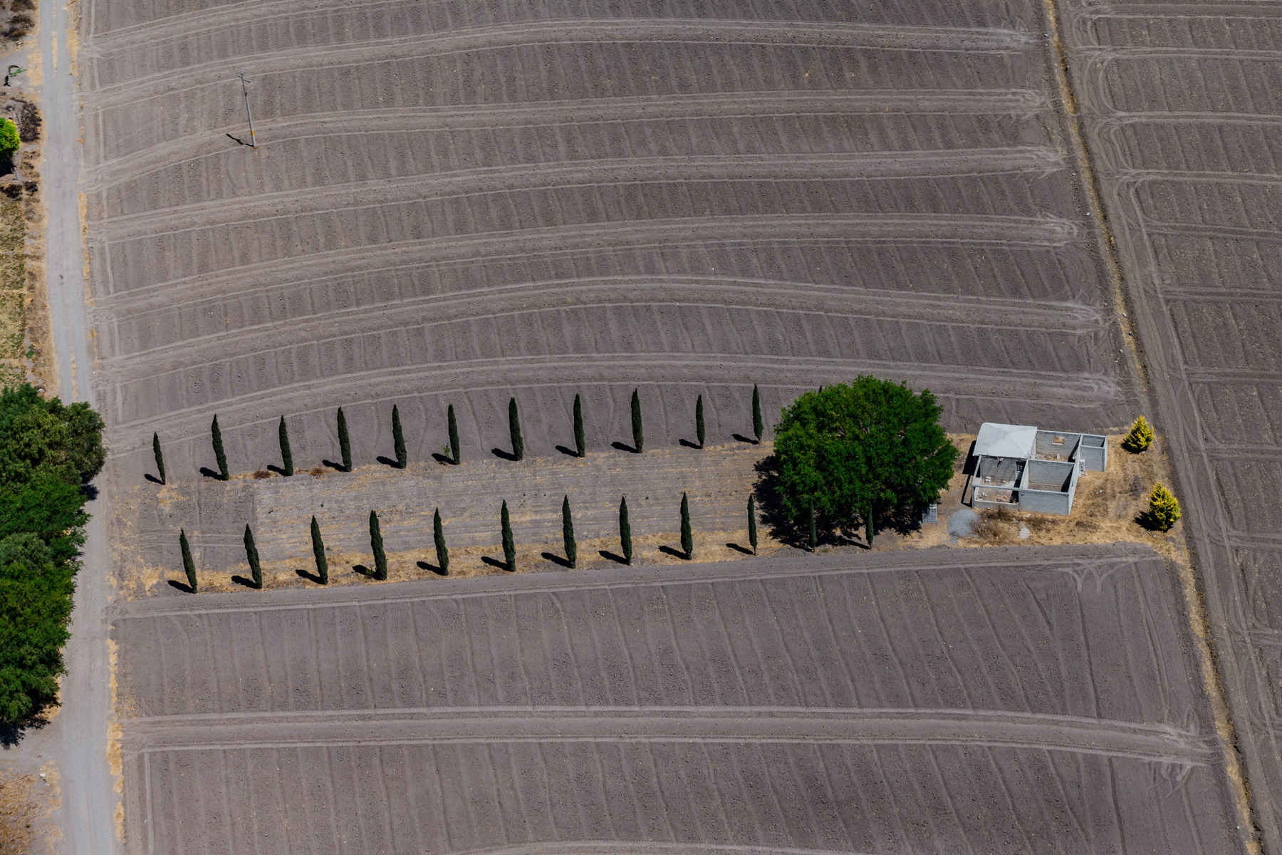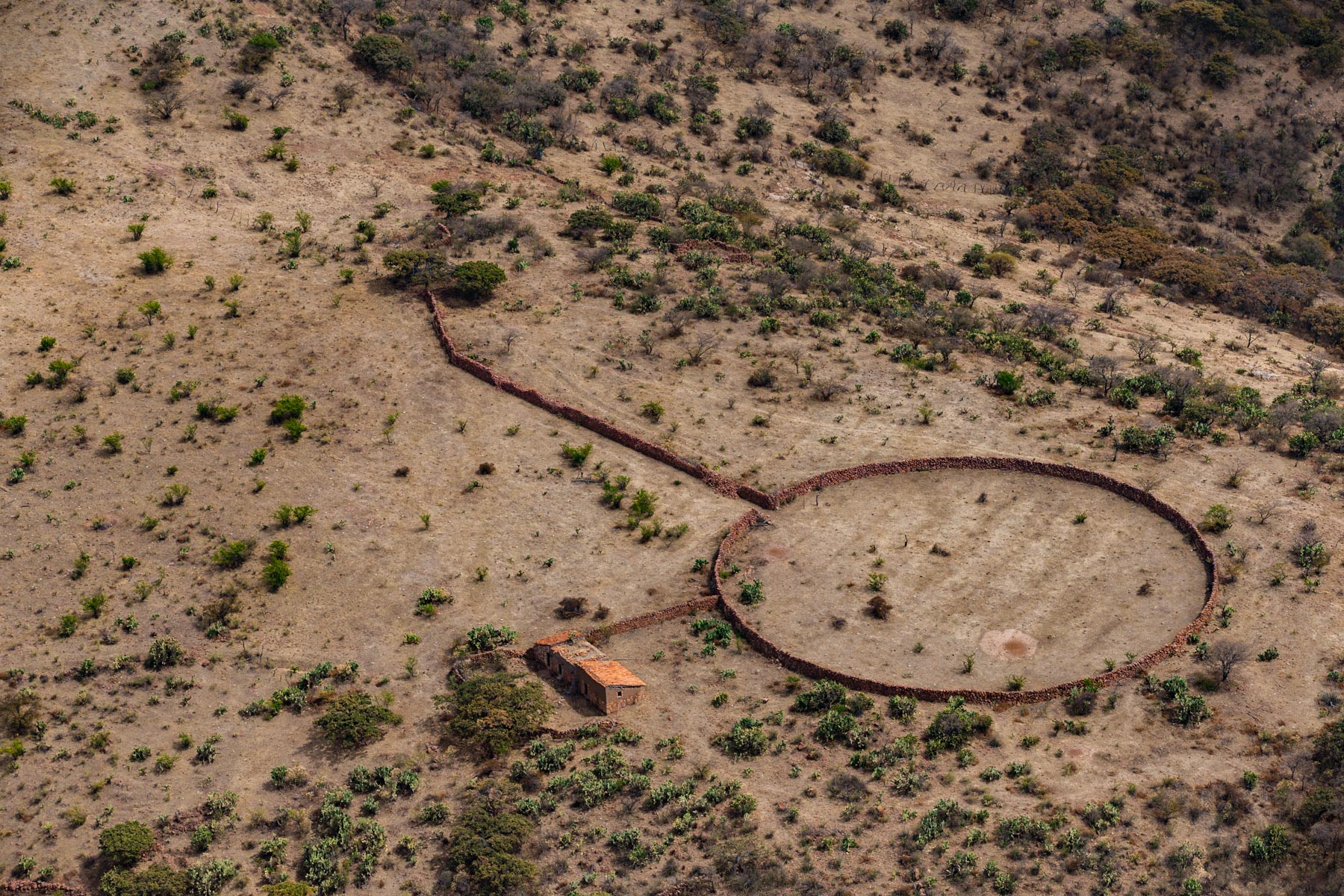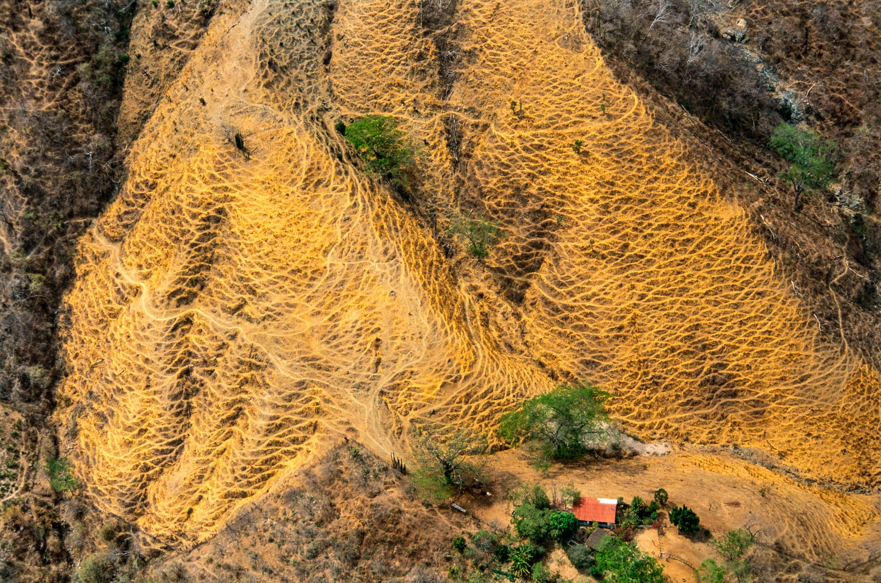 Trace d'animaux dans le flan de colline surplombant une ferme isolée - Jalisco