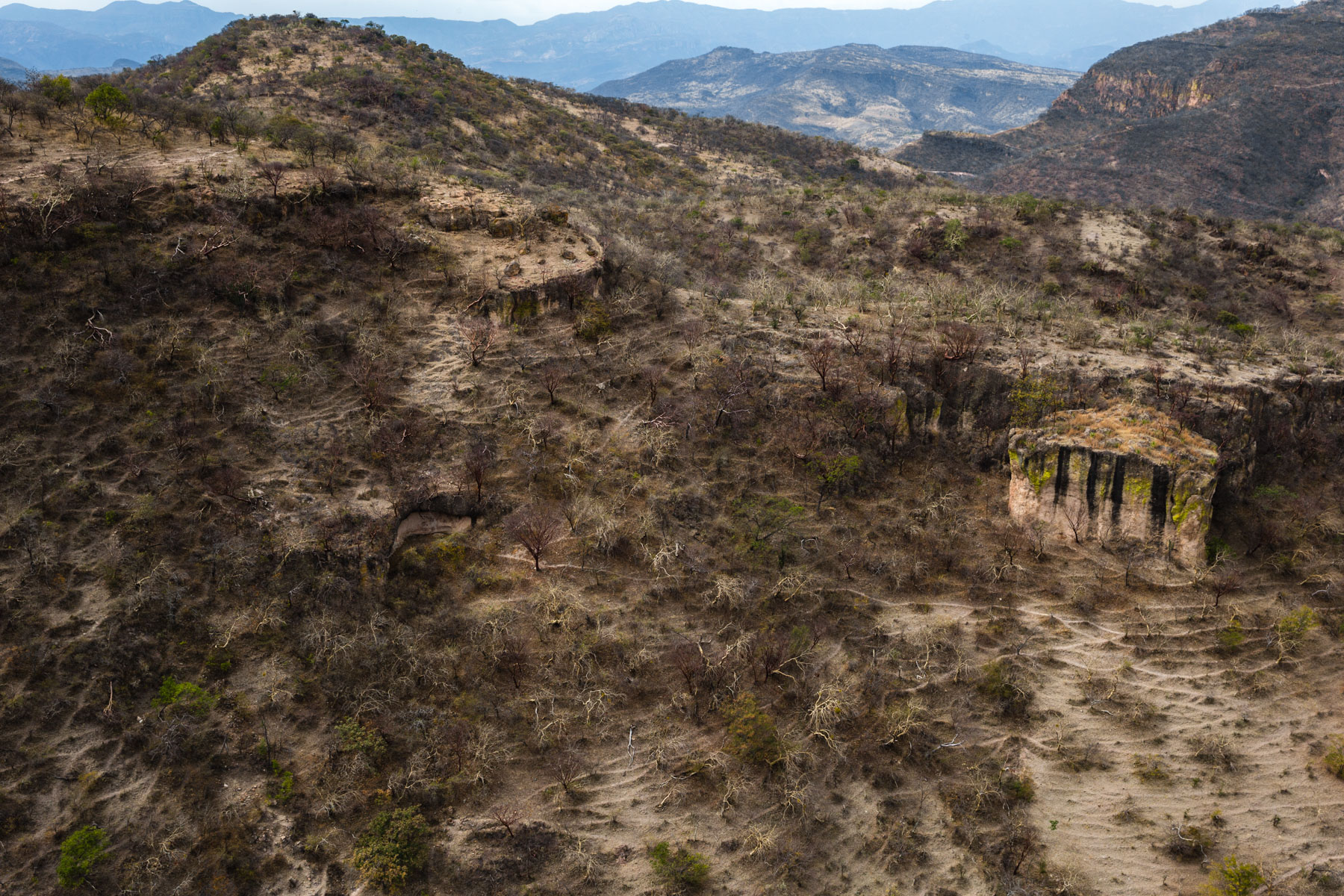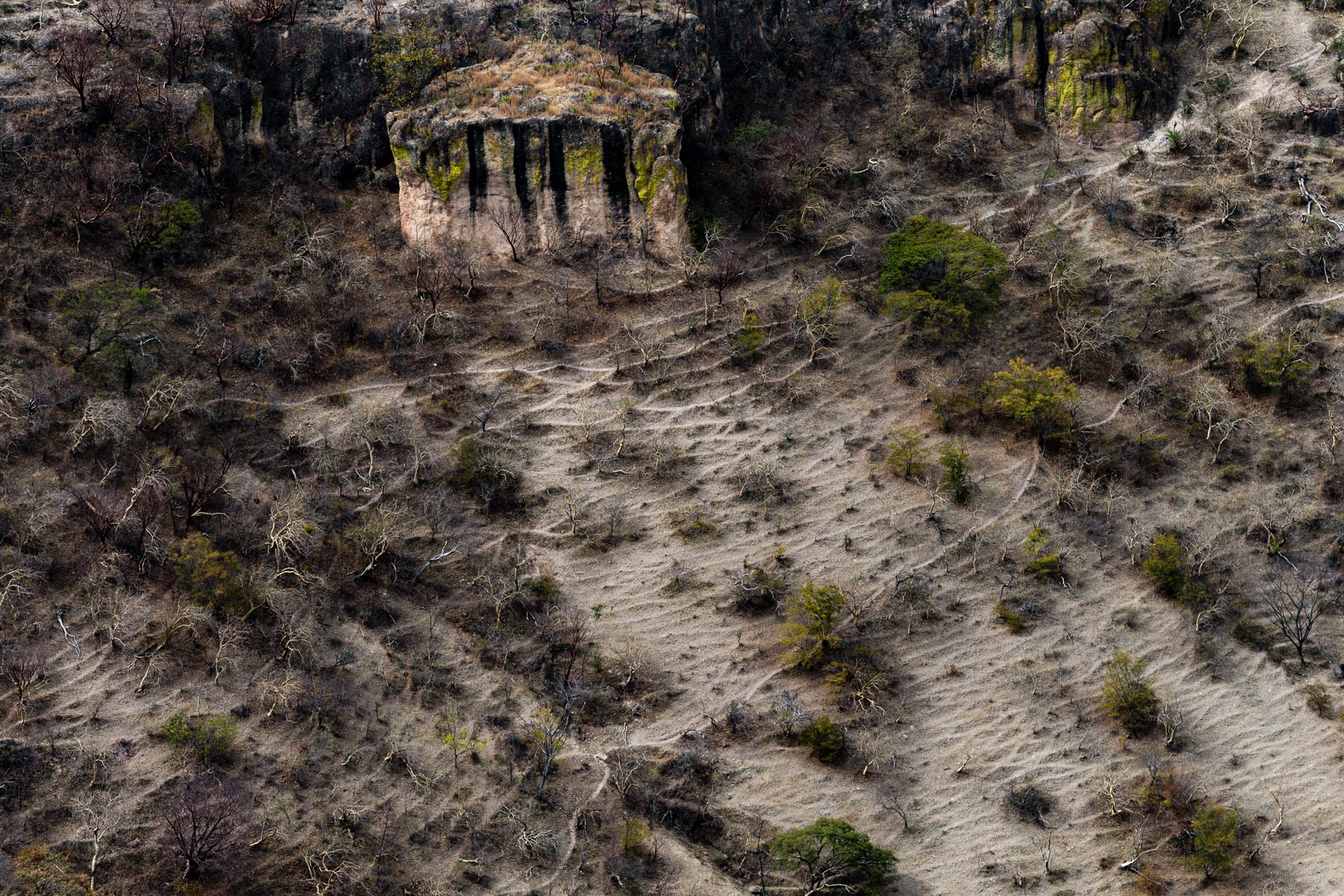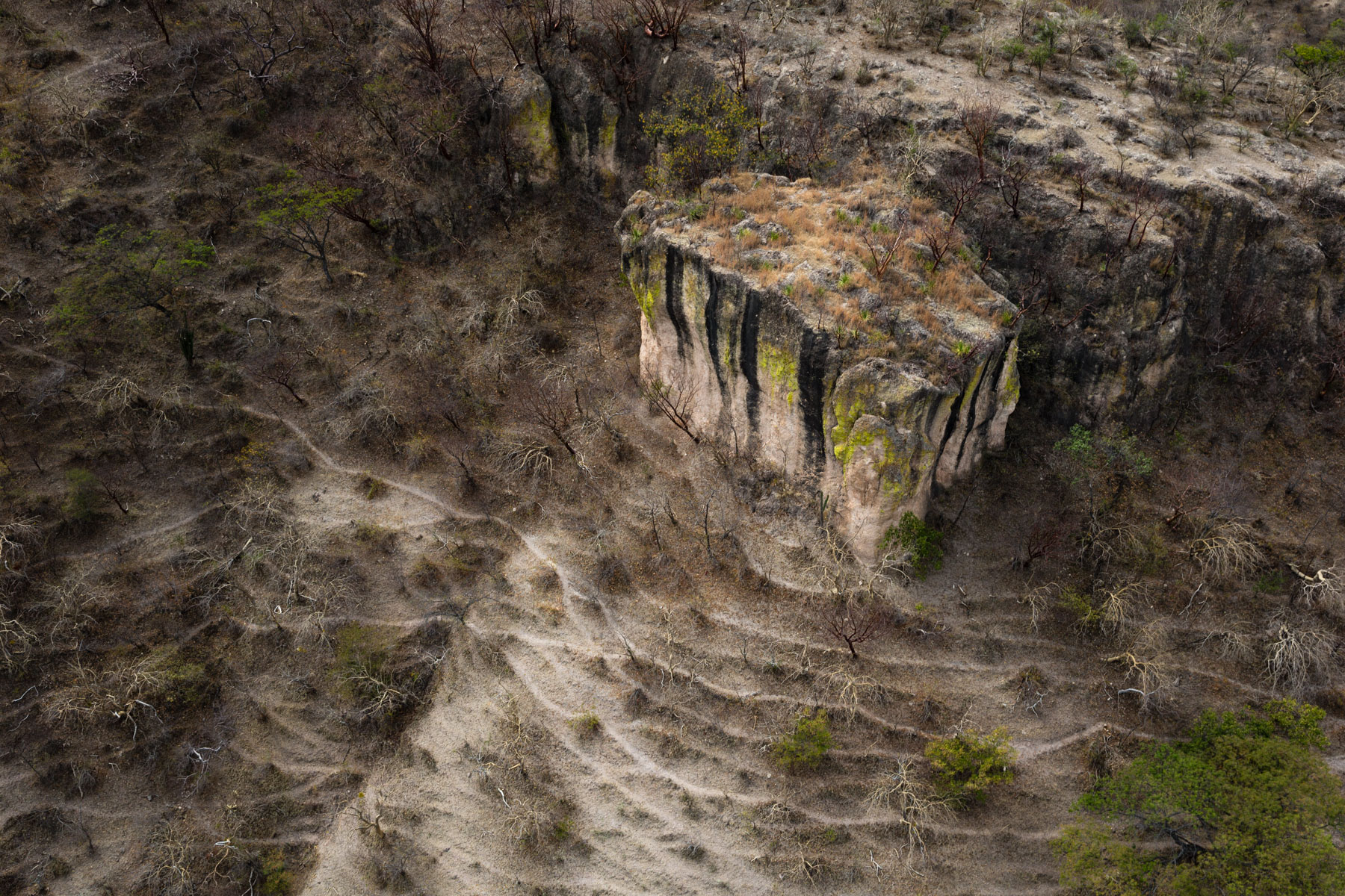 Traces d’animaux à flanc de montagne, État de Jalisco, Mexique (20°20' N – 103°40' O).