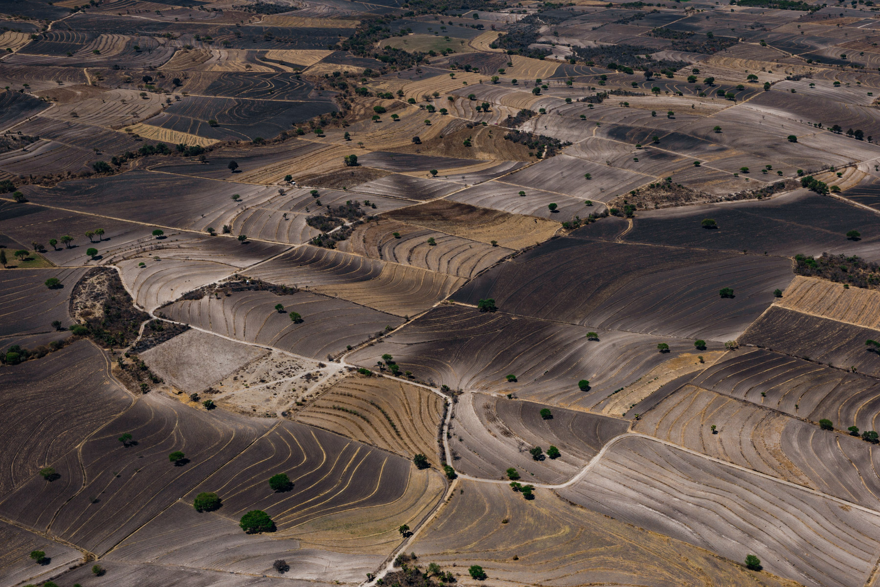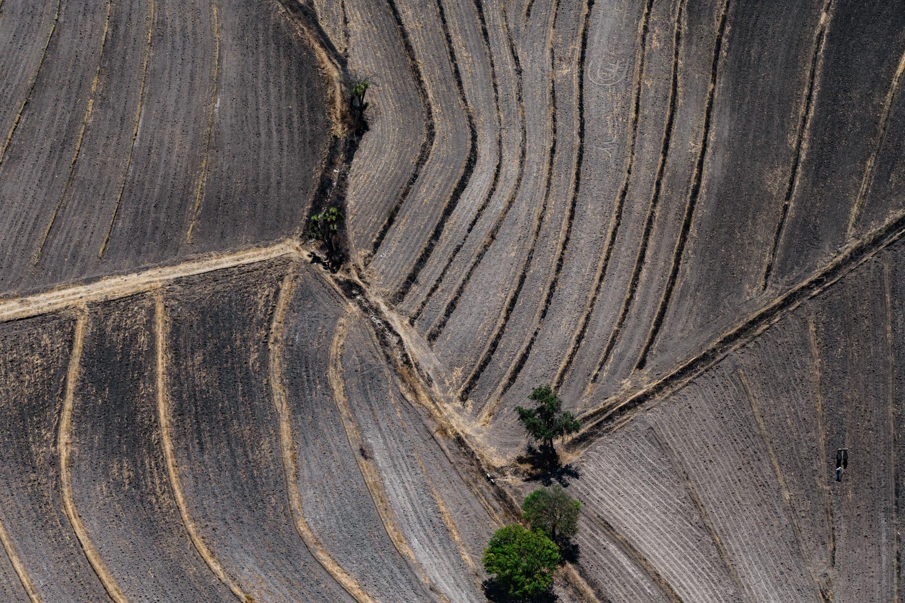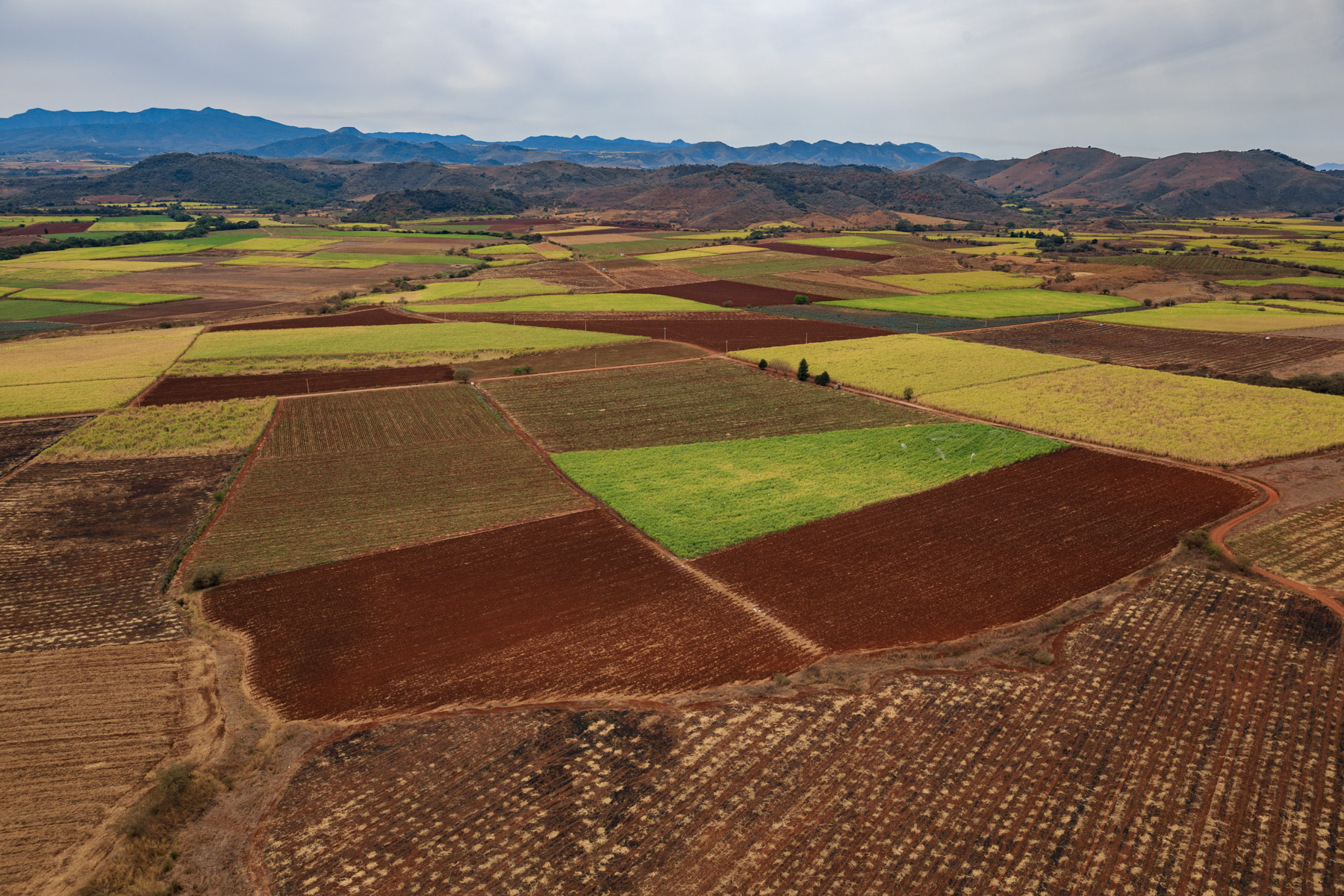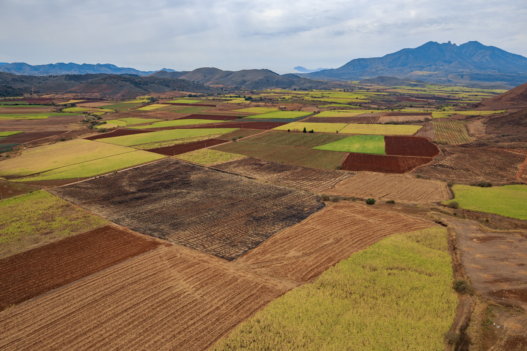 Champs cultivés entre Atlixco et Tehuacan, Etat de Puebla, Mexique