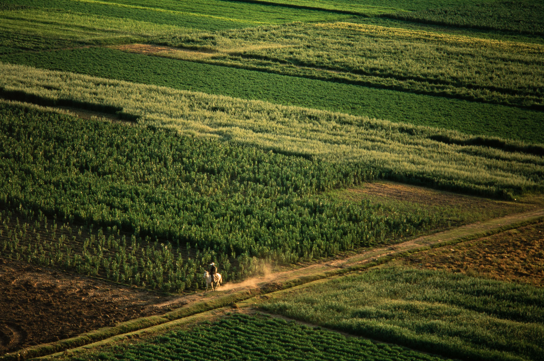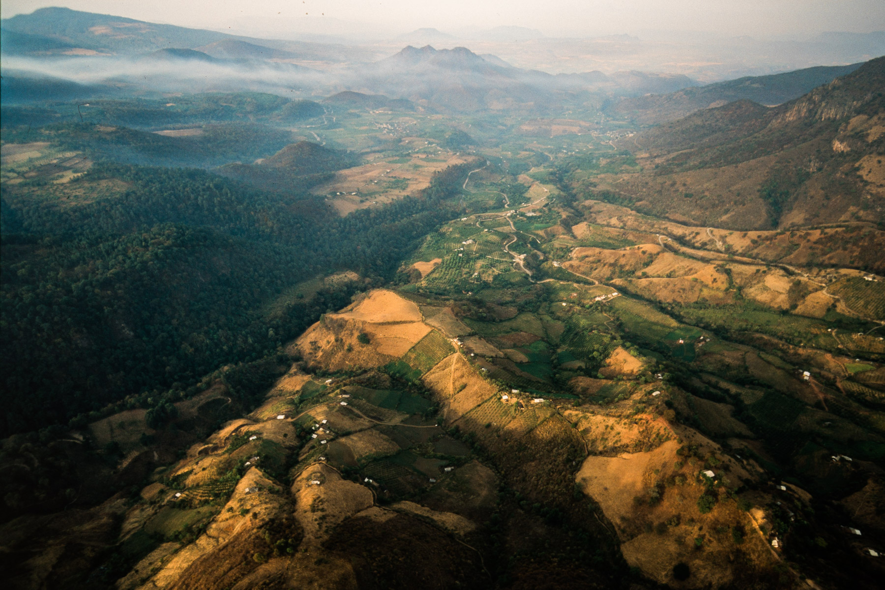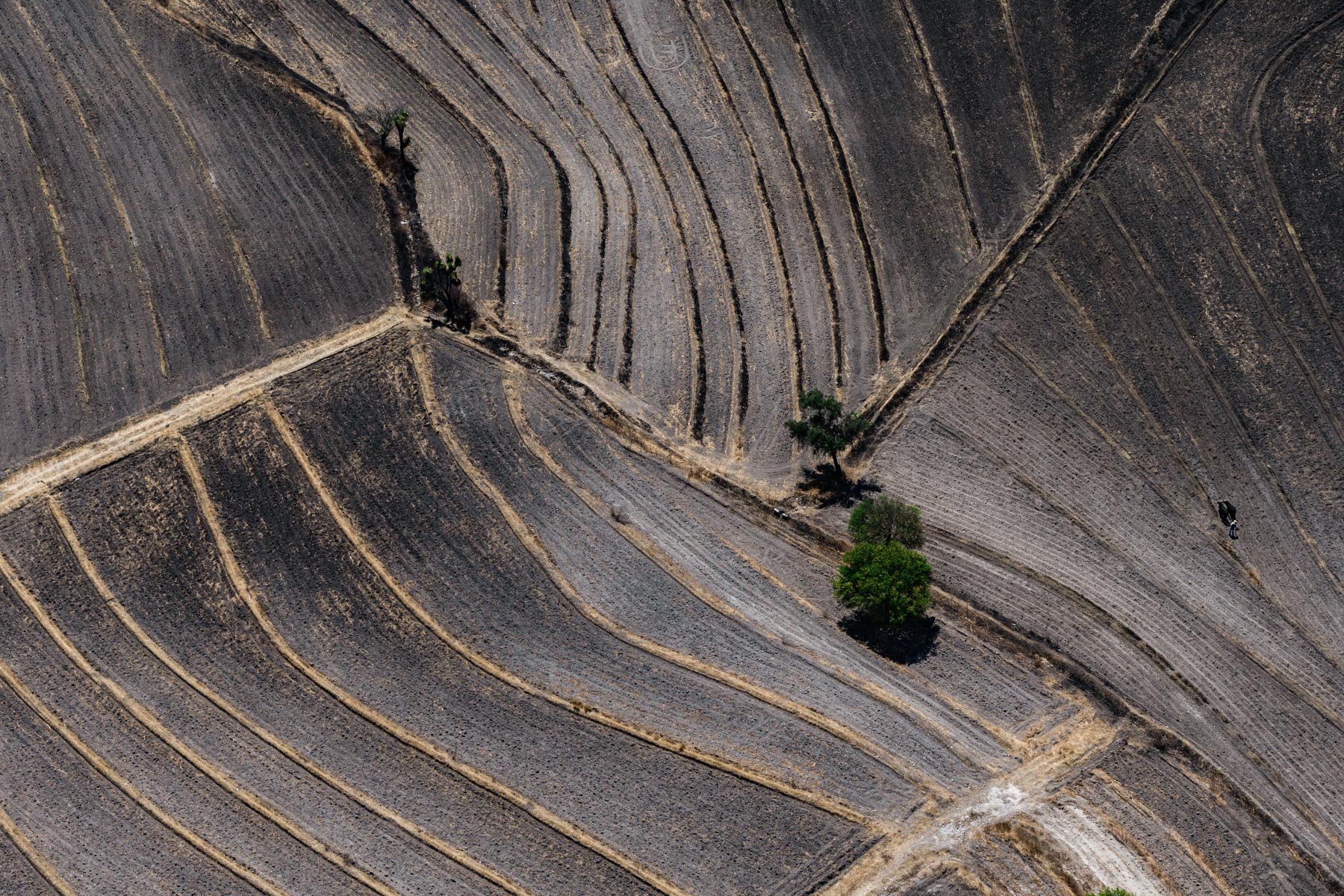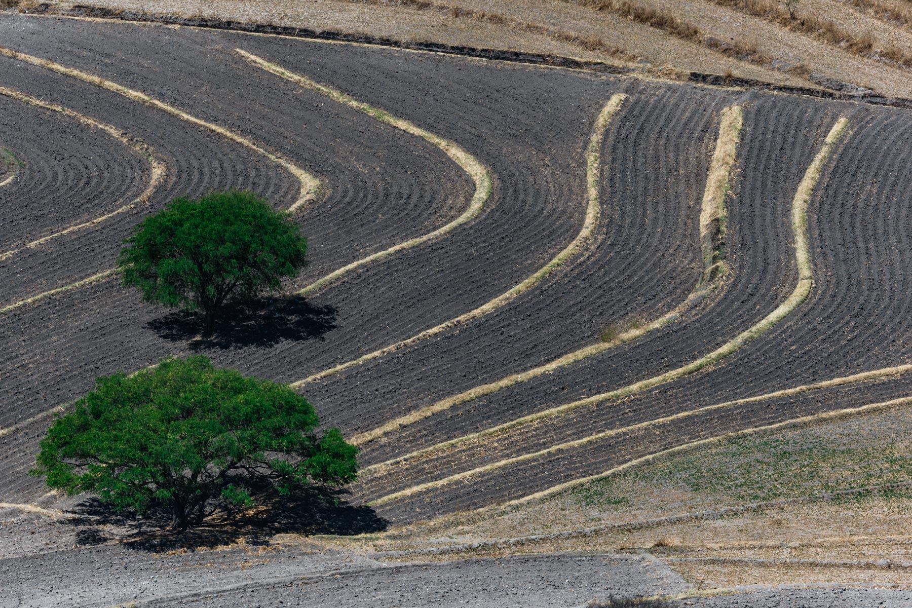Champs cultivés entre Atlixco et Tehuacan, Etat de Puebla, Mexique