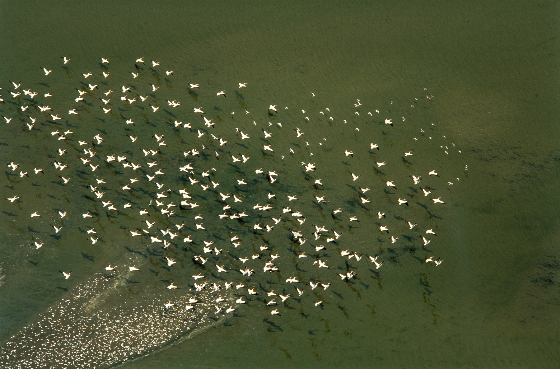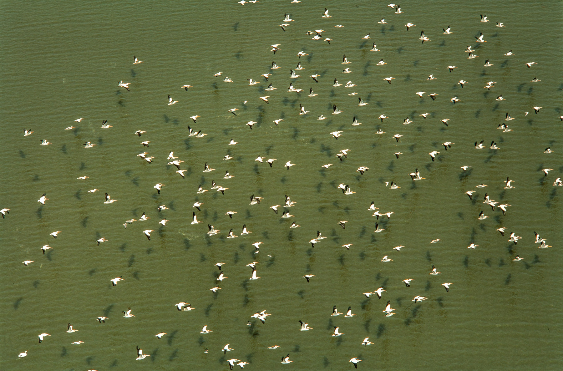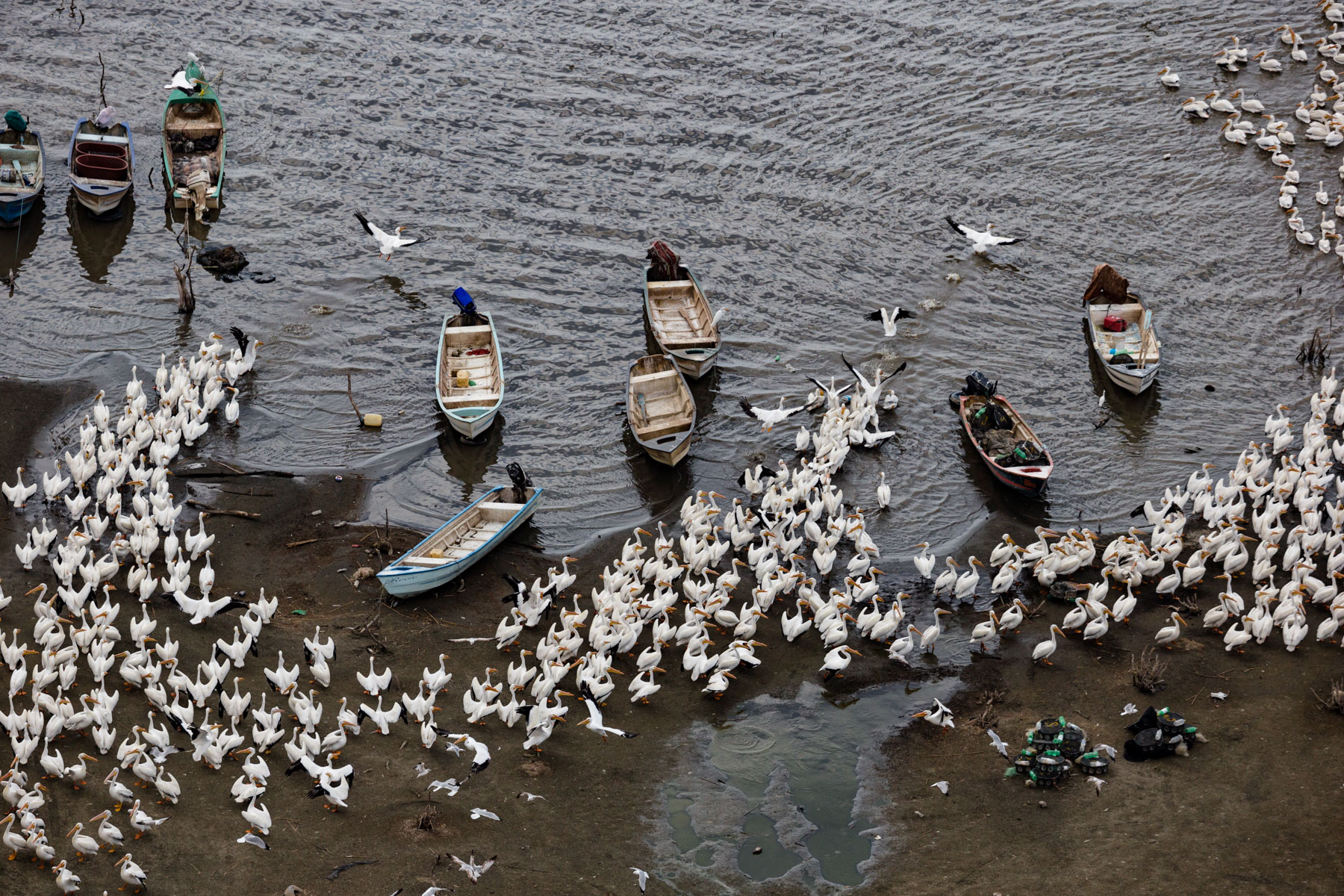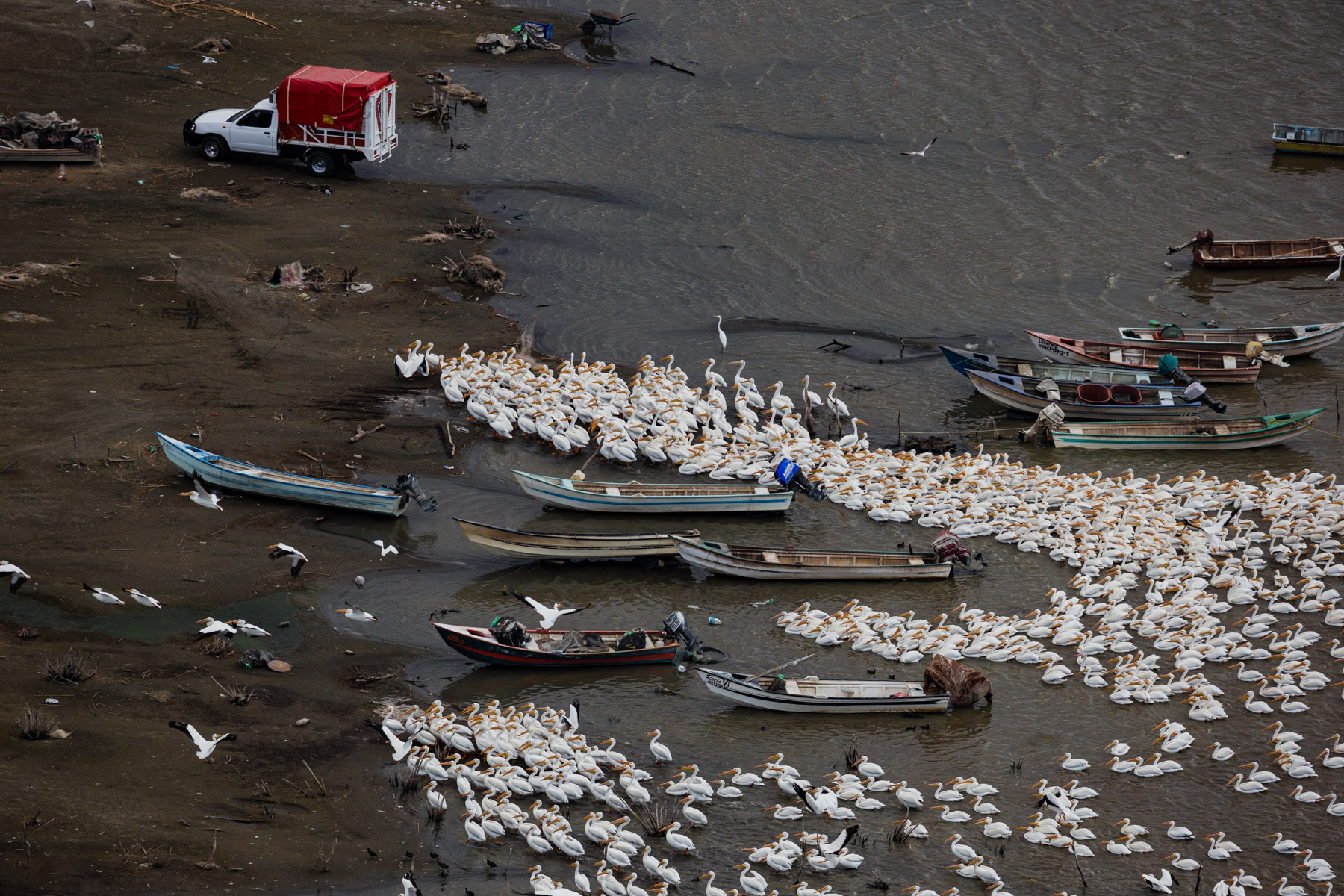Pélicans blancs sur le lac de Chapala, près de Petatan, Etat de Michoacan, Mexique (19°32'3.90"N - 102°14'57.31"O)