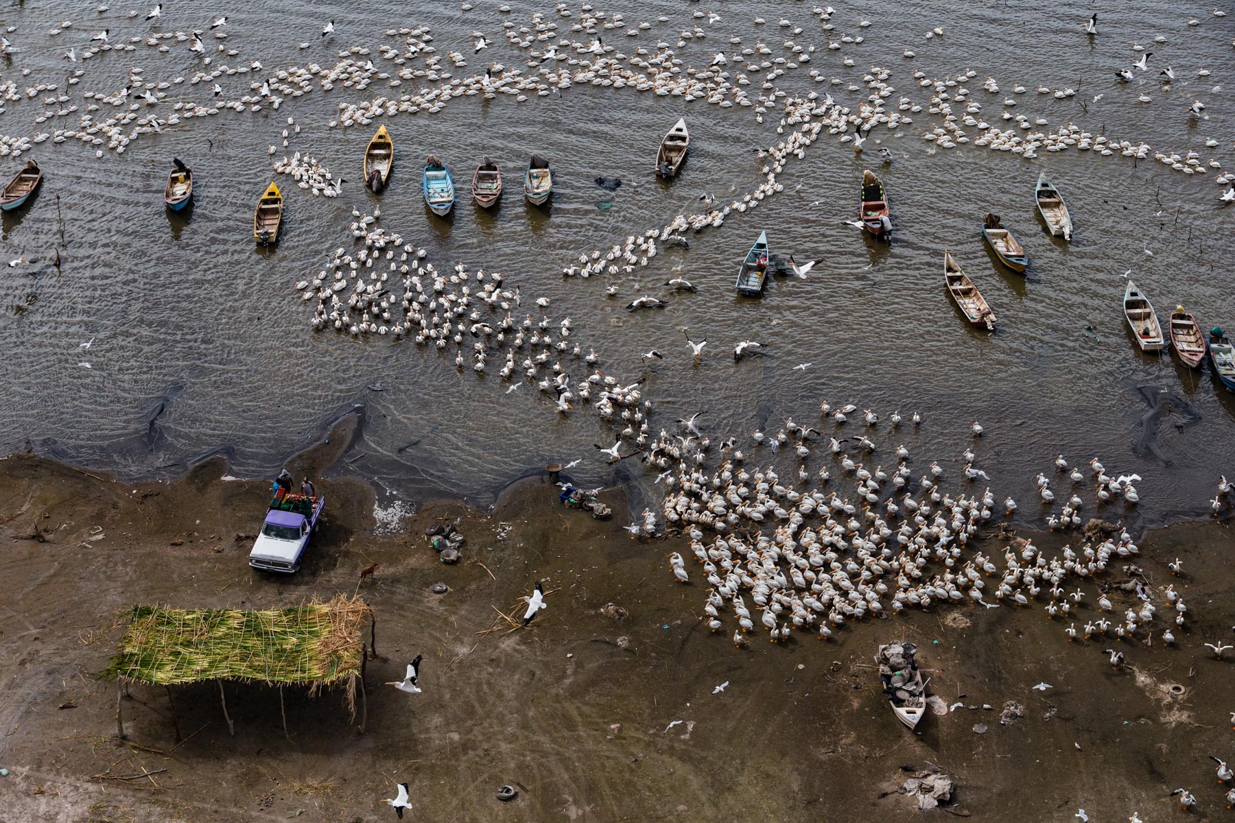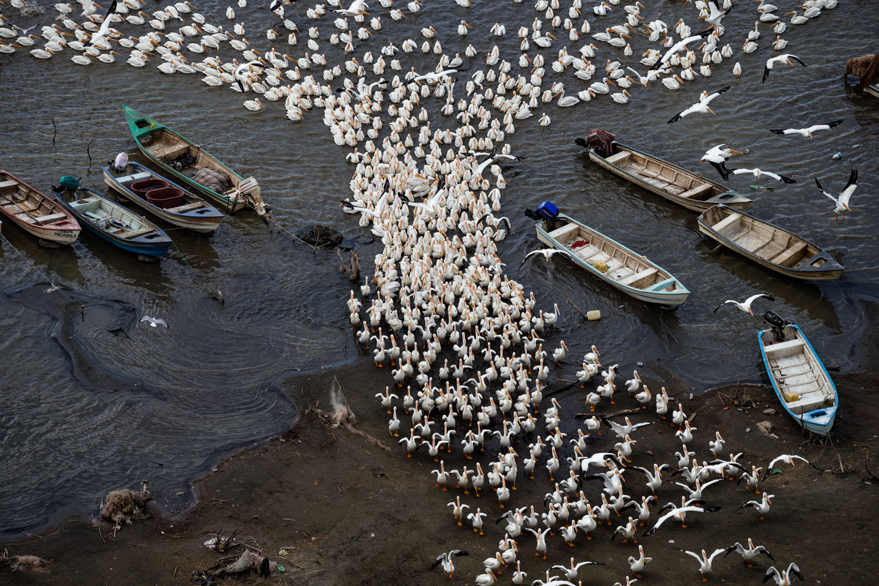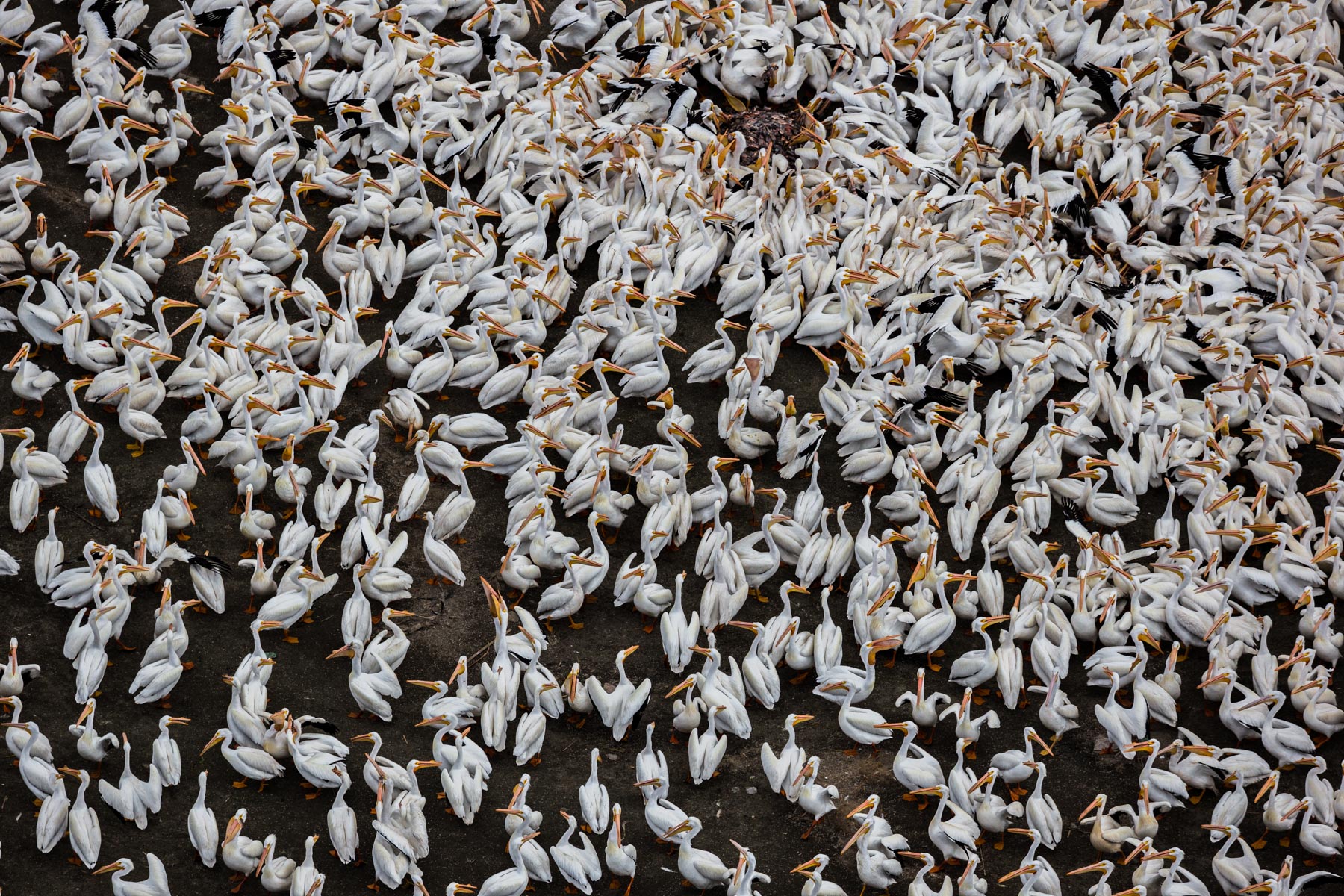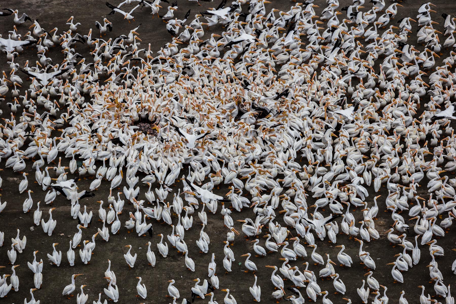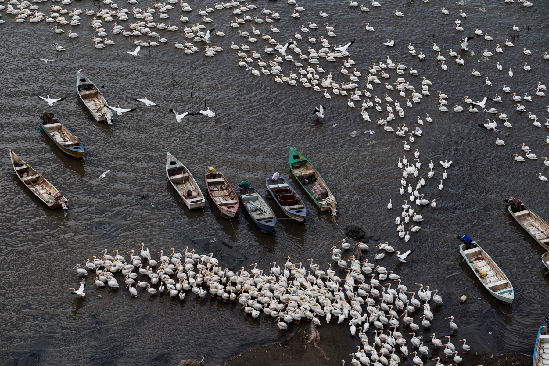 Pélicans blancs sur le lac de Chapala, près de Petatan, Etat de Michoacan, Mexique (19°32'3.90"N - 102°14'57.31"O)