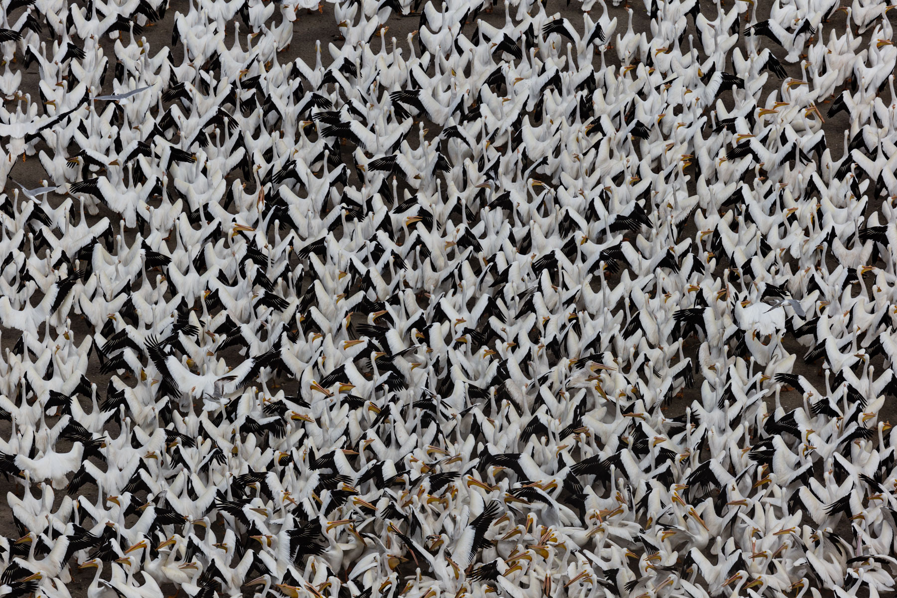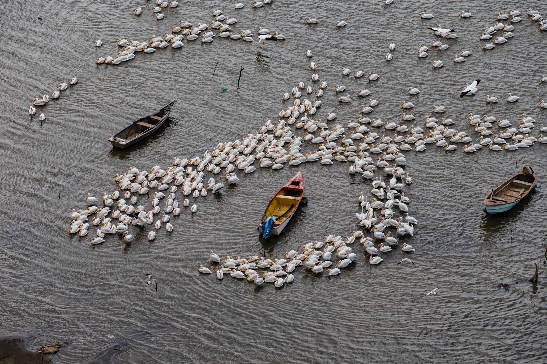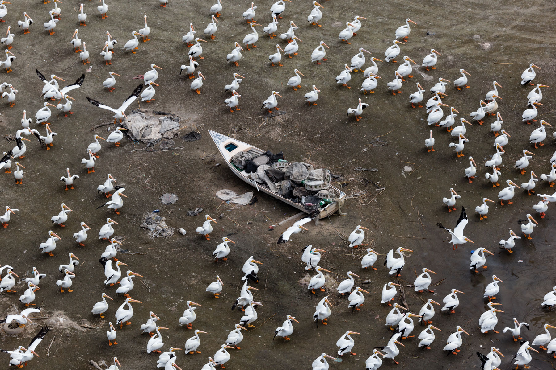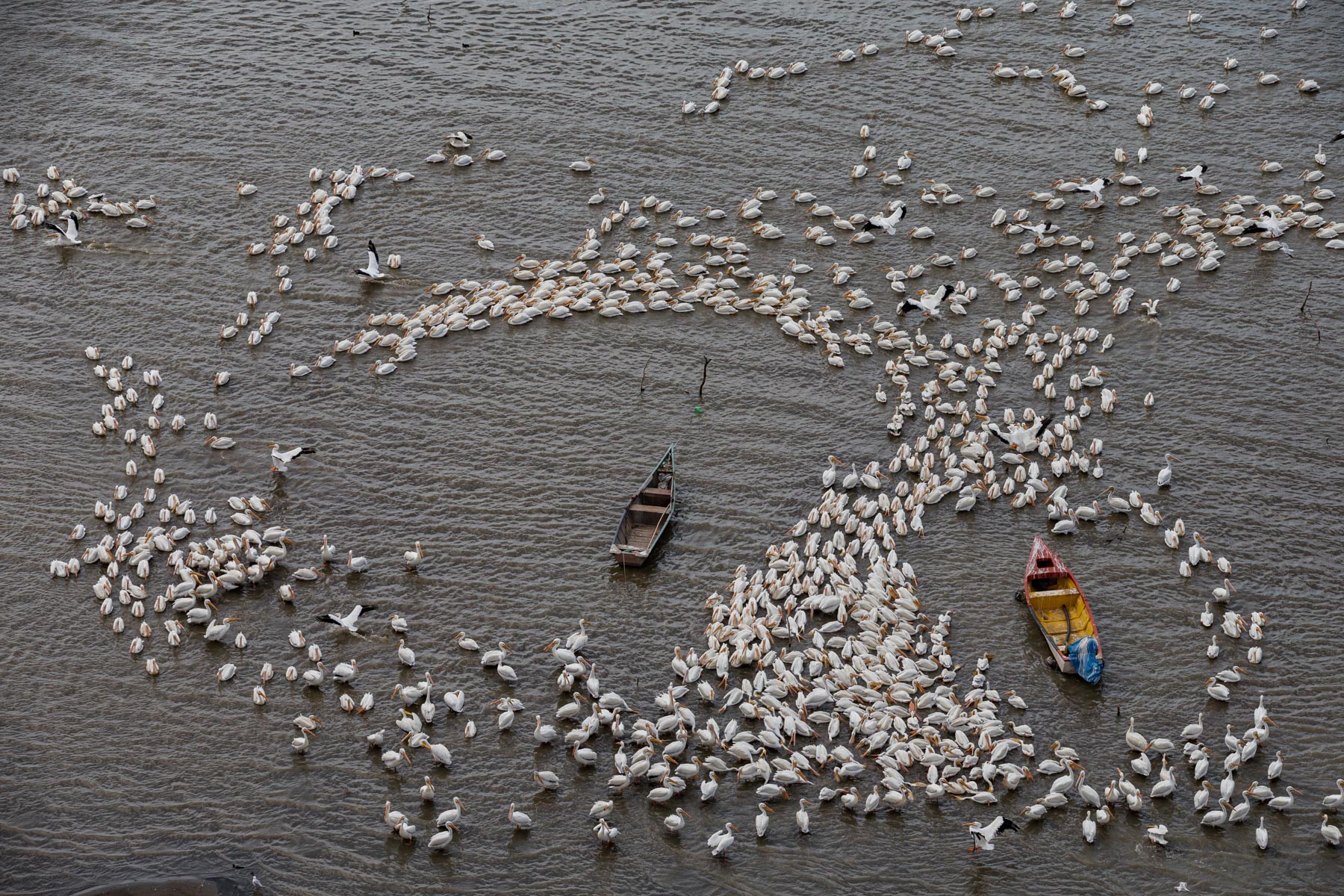Pélicans blancs sur le lac de Chapala, près de Petatan, Etat de Michoacan, Mexique (19°32'3.90"N - 102°14'57.31"O)