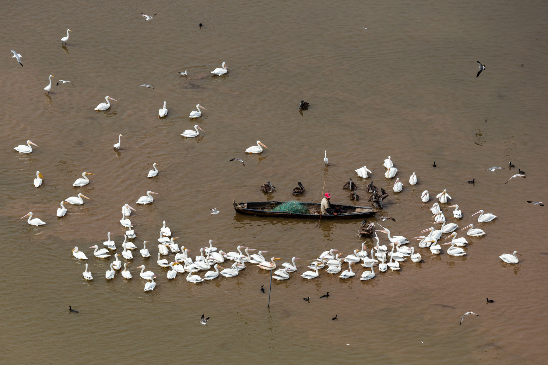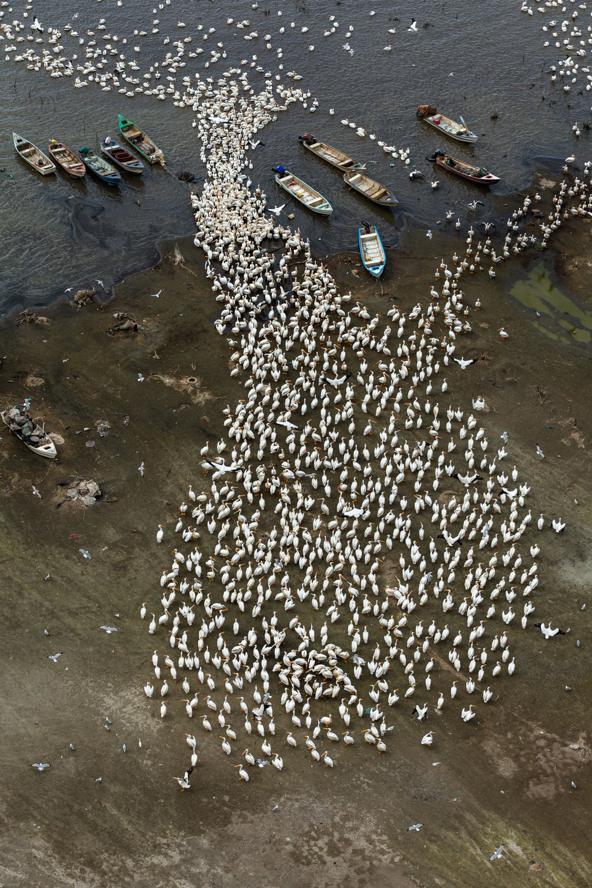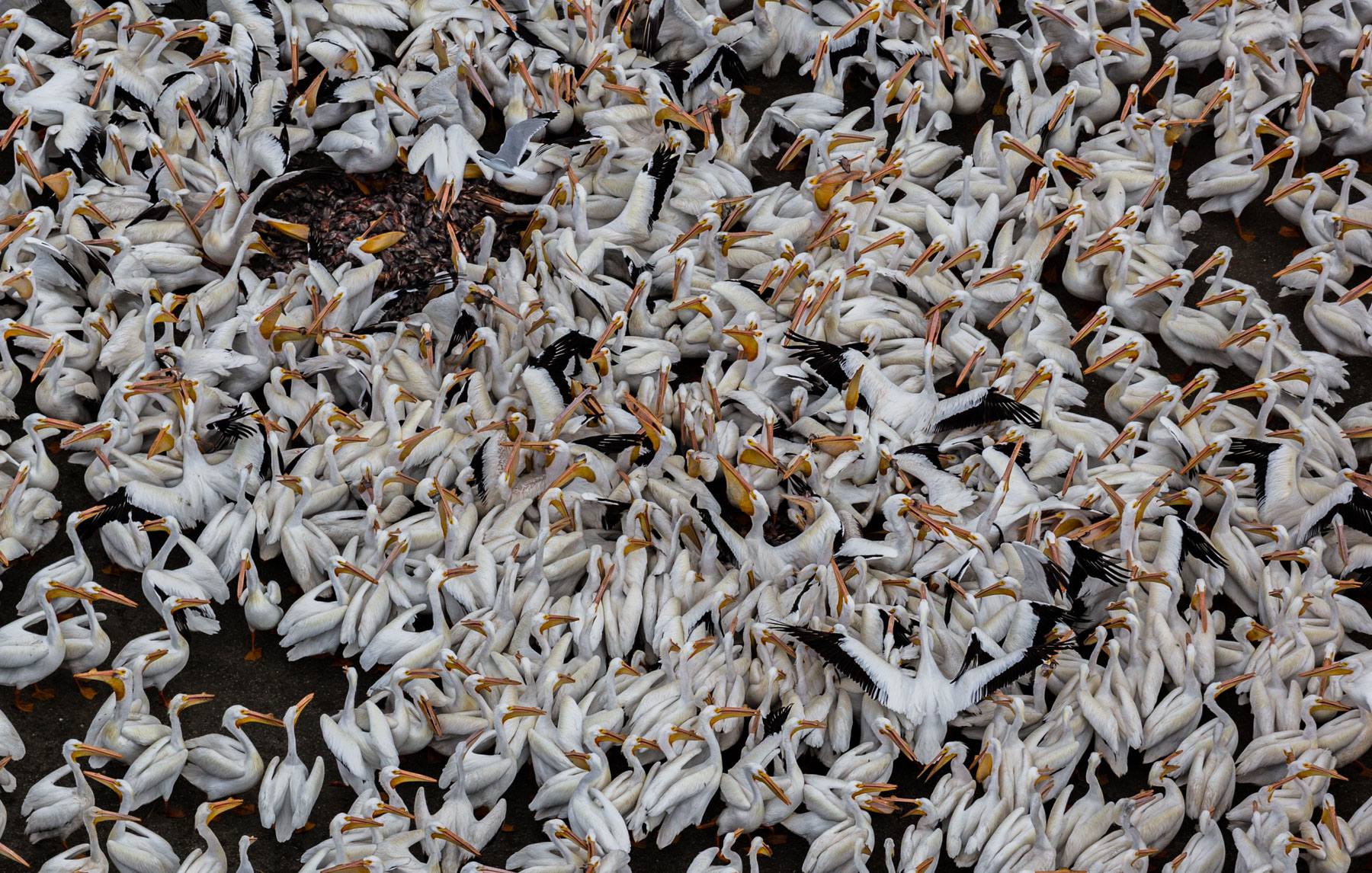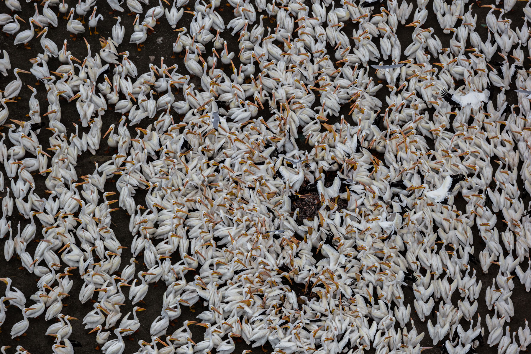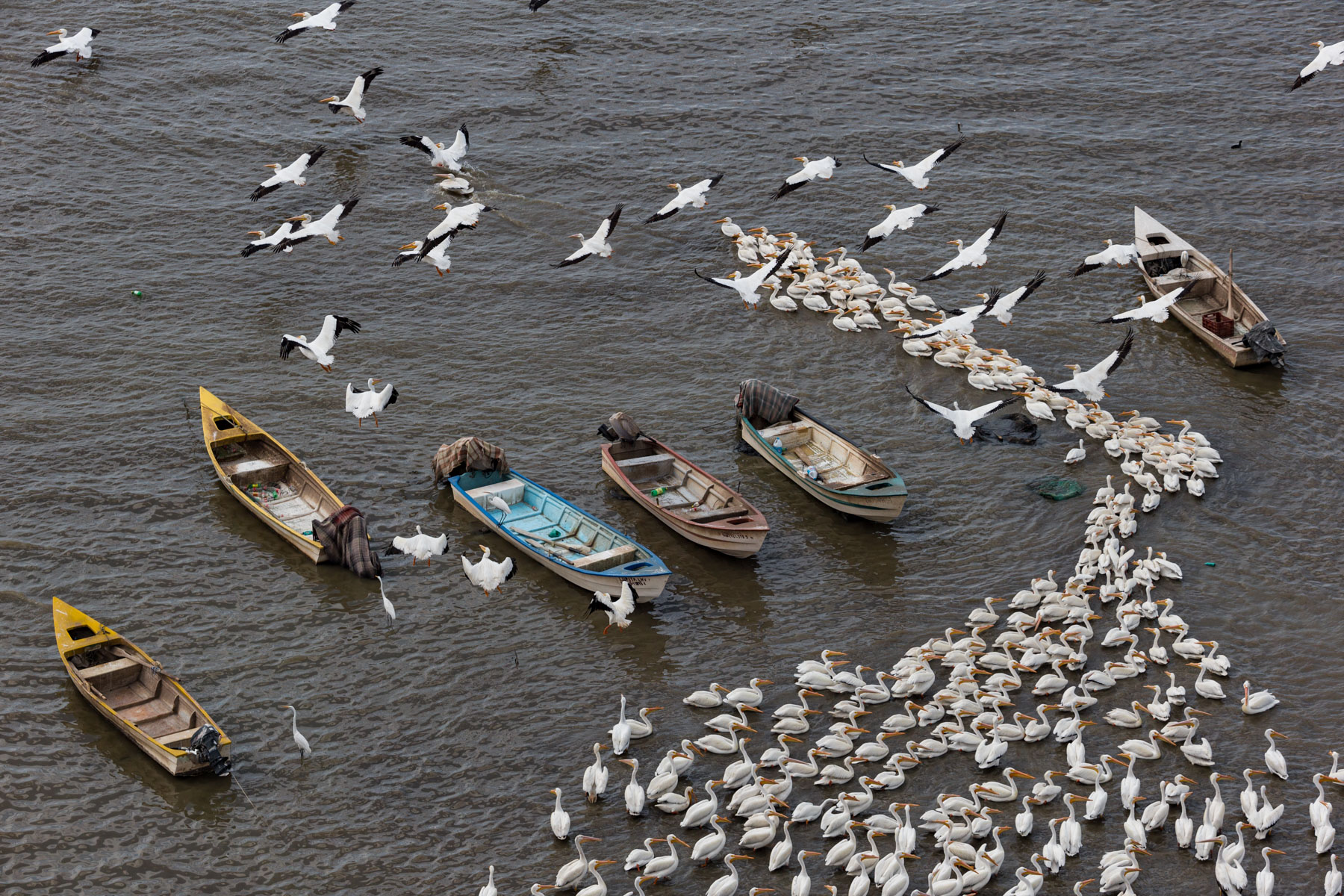 Pélicans blancs sur le lac de Chapala, près de Petatan, Etat de Michoacan, Mexique (19°32'3.90"N - 102°14'57.31"O)