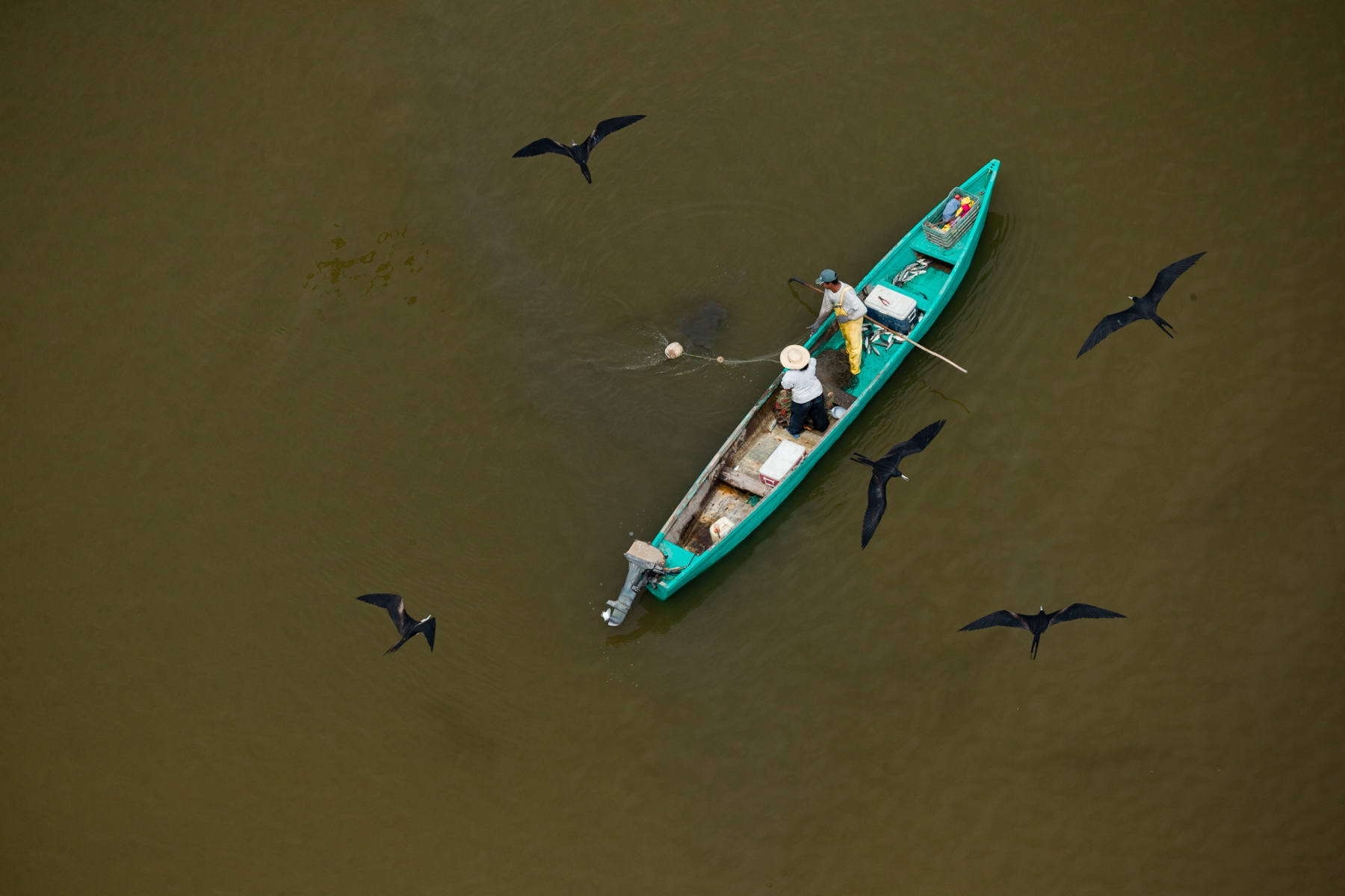 Pêcheurs devant l'île de Mexcaltitan, lagune du rio San Pedro, Etat du Nayarit, Mexique
