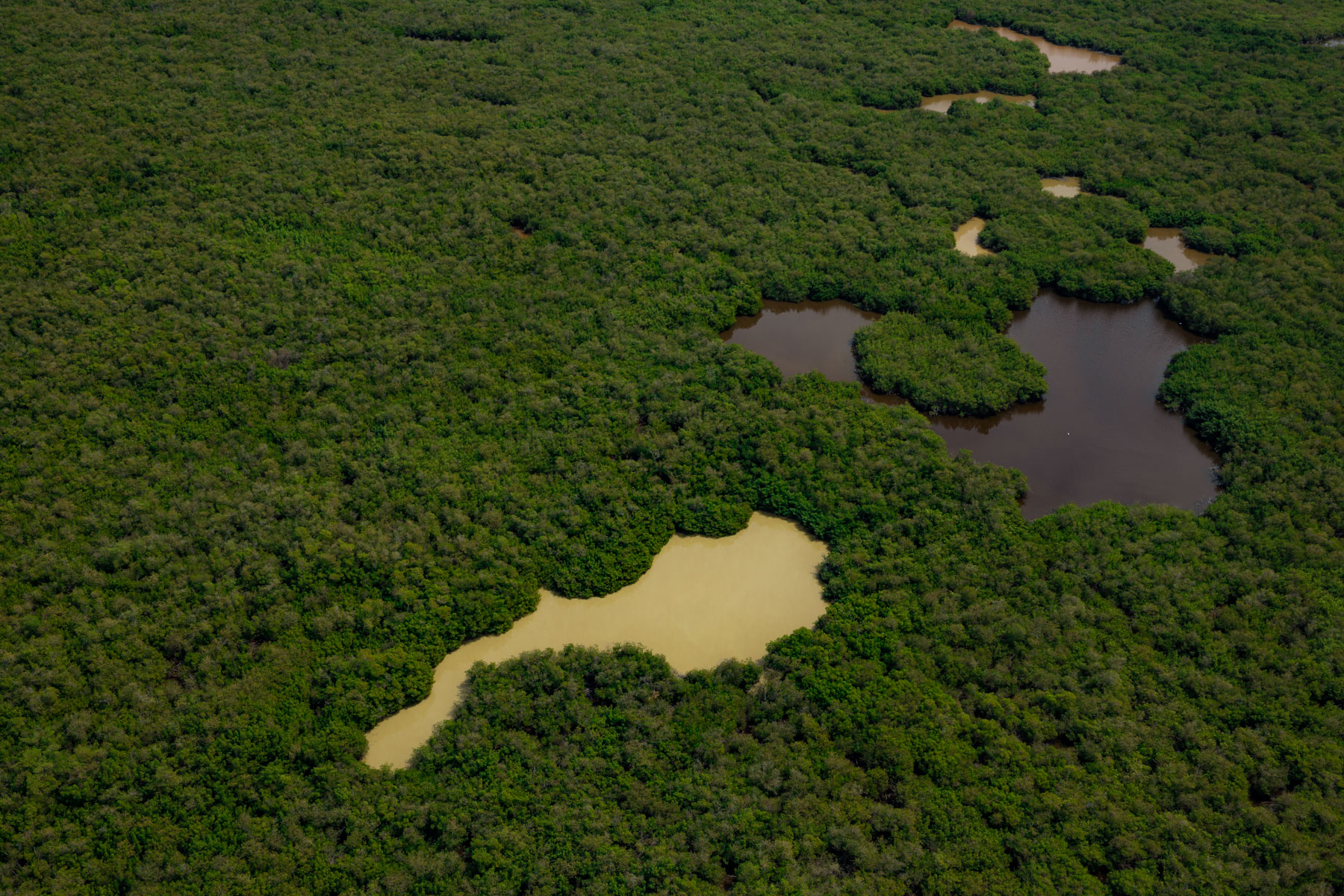 Birds flying over the lagoon near the mangroves of San Blas, Nayarit State, Mexico (21°60' N, 105°30' W).