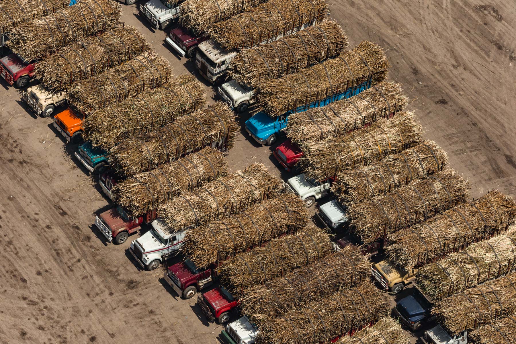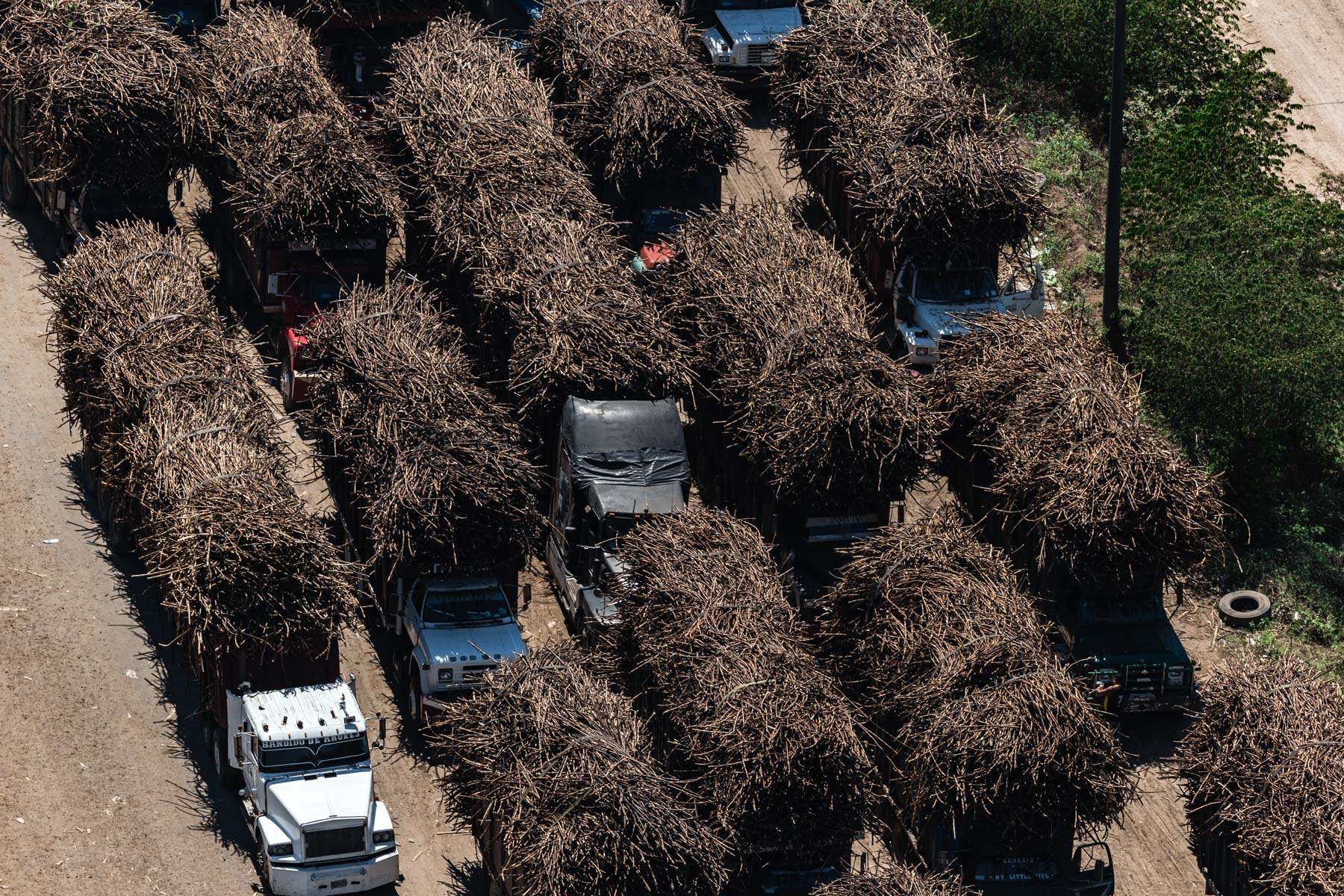 Tepic : Camions de cannes à sucre de l'usine sucrière "Ingenio El Molino", Etat du Nayarit, Mexique (21°30'3.51"N - 104°53'4.67"O).