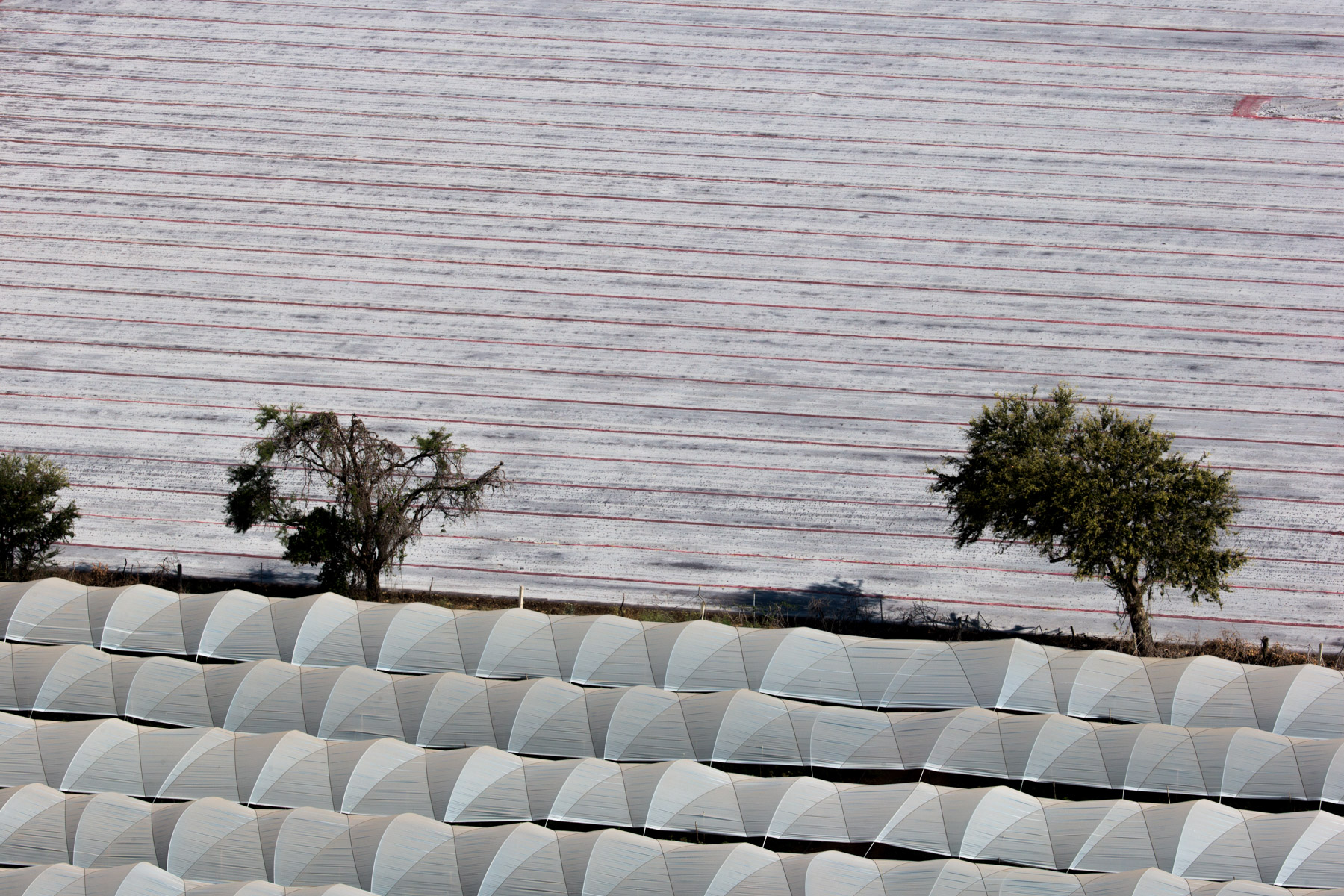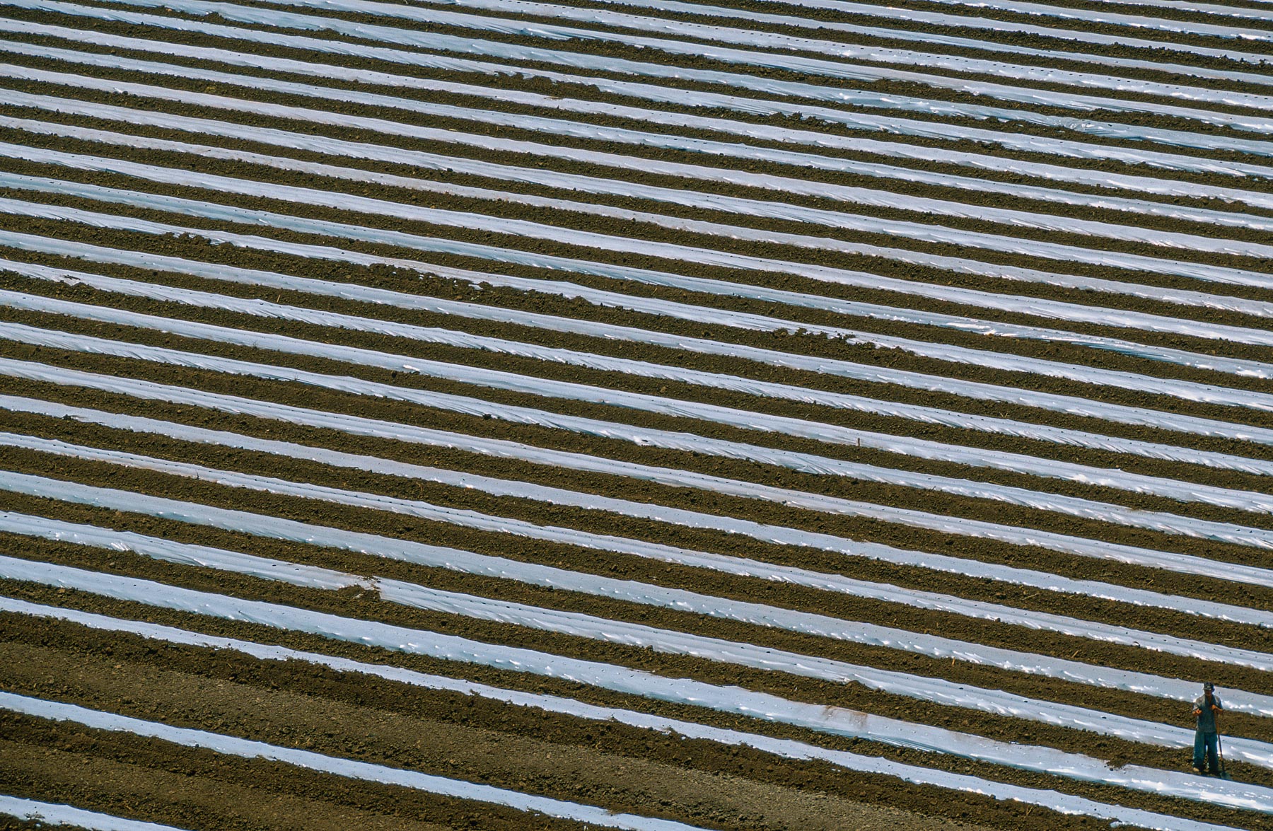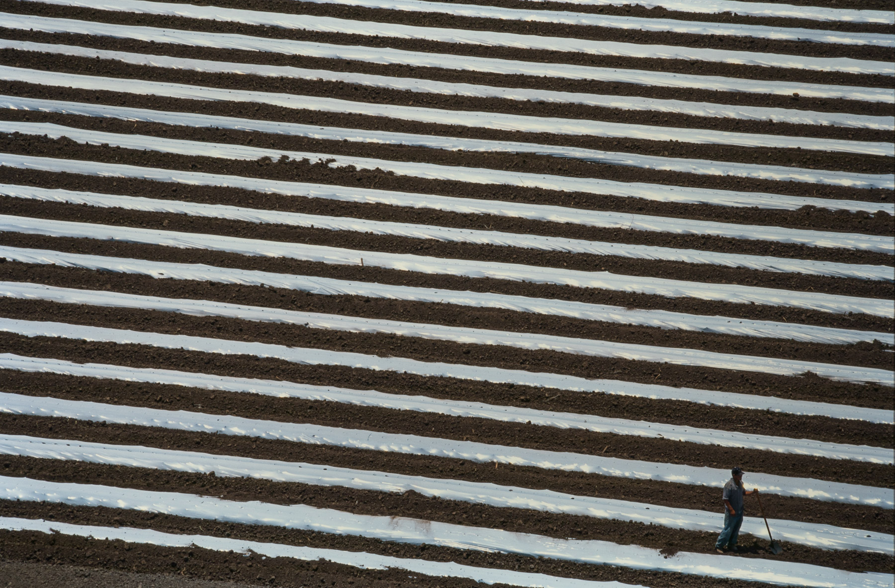 Instalation de baches plastiques dans un champs près de Zamora - Michoacan