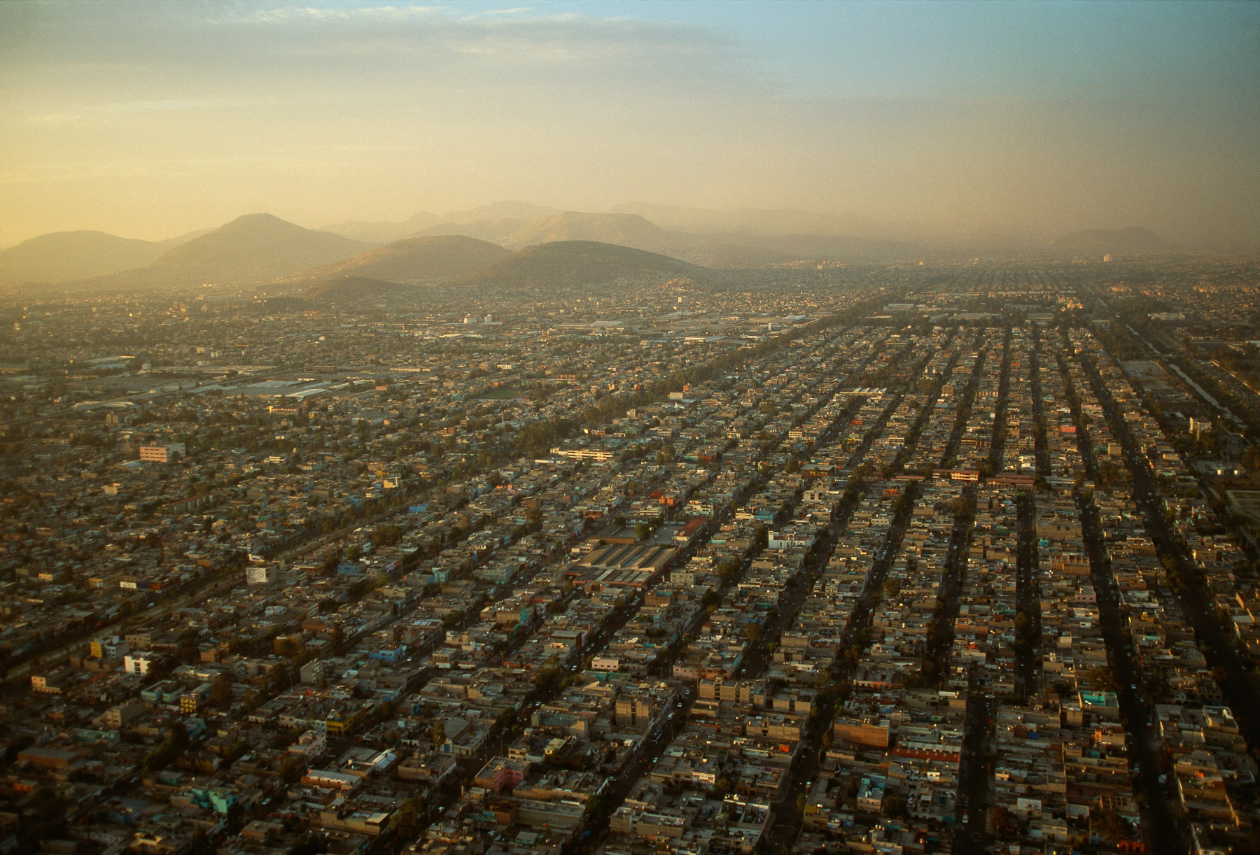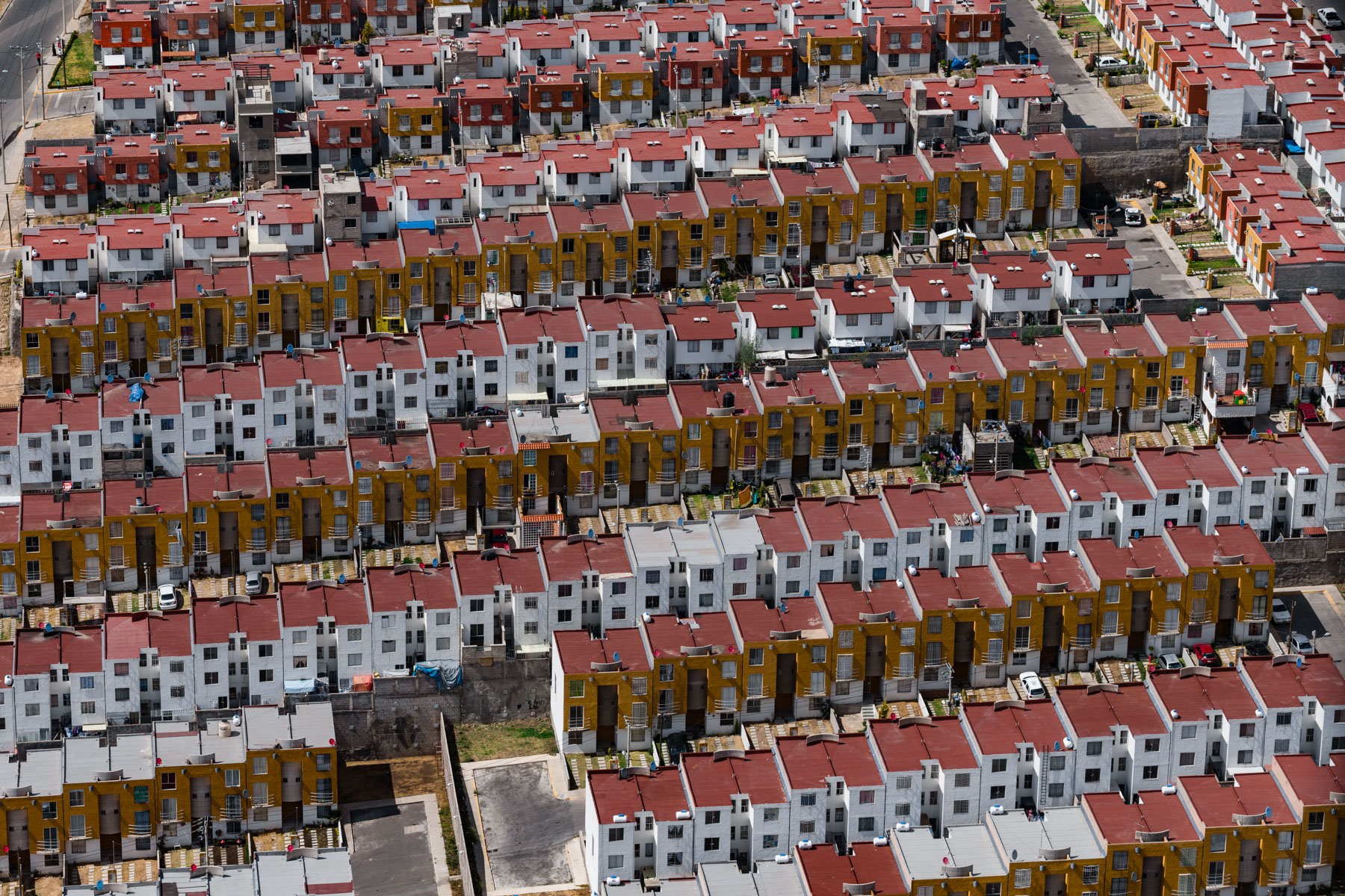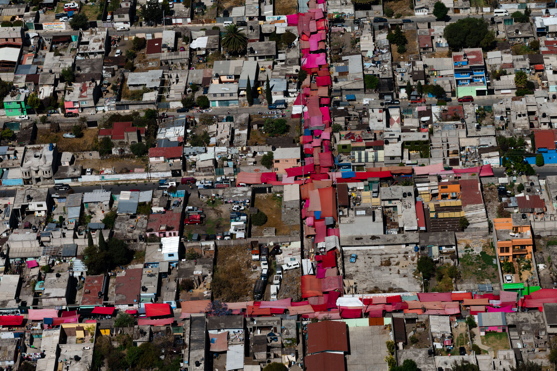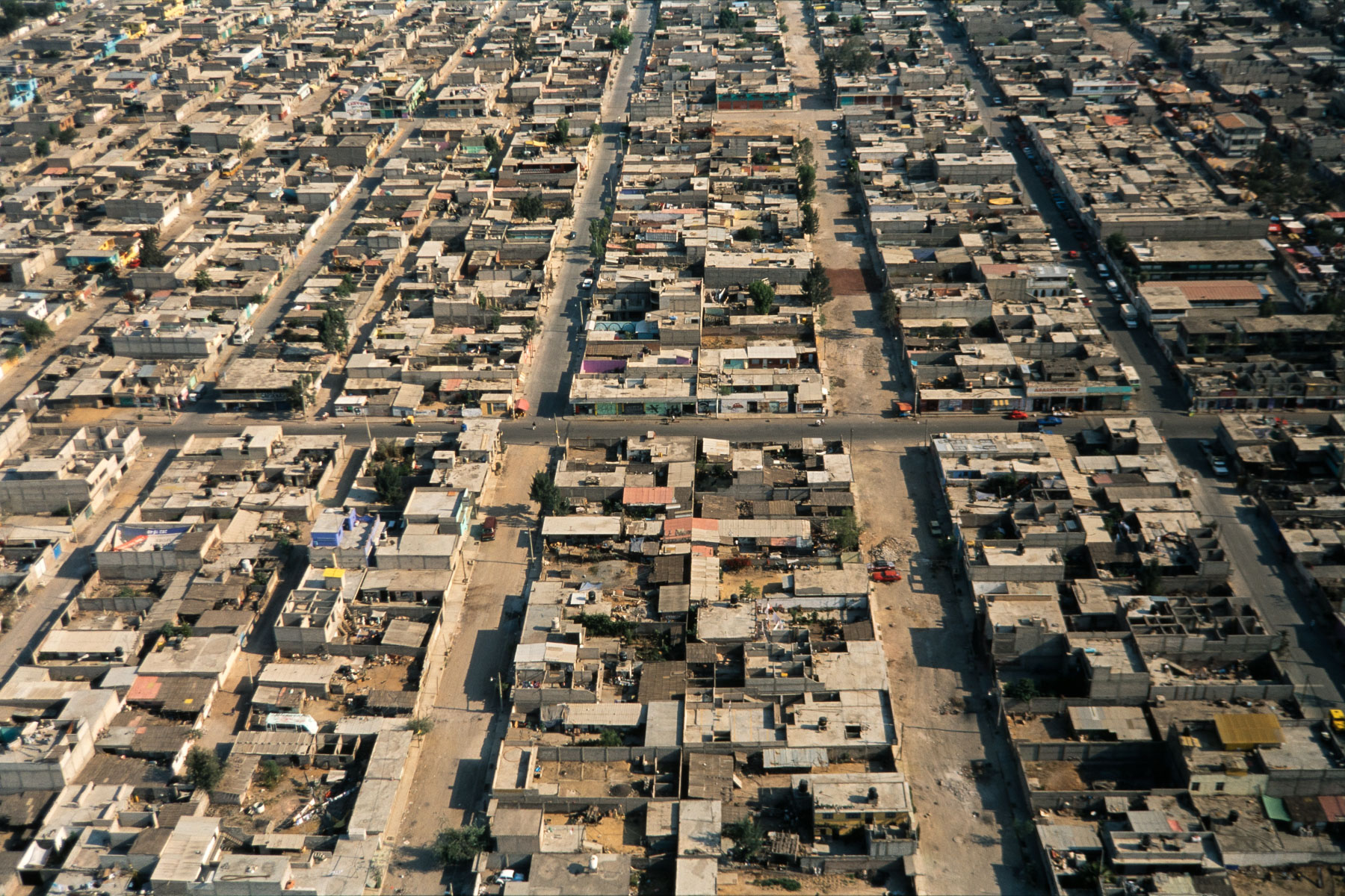 Tissu urbain orthonormé de constructions pauvres à Mexico