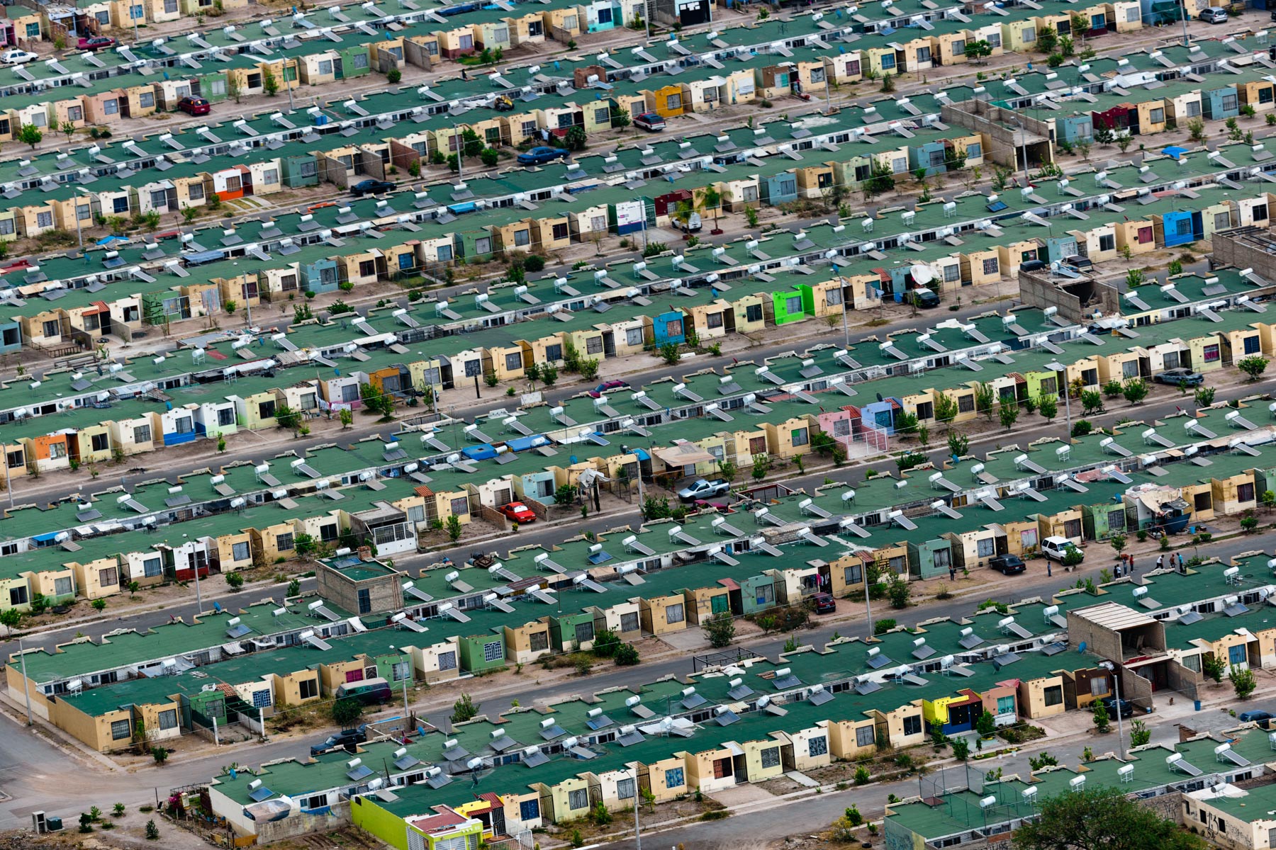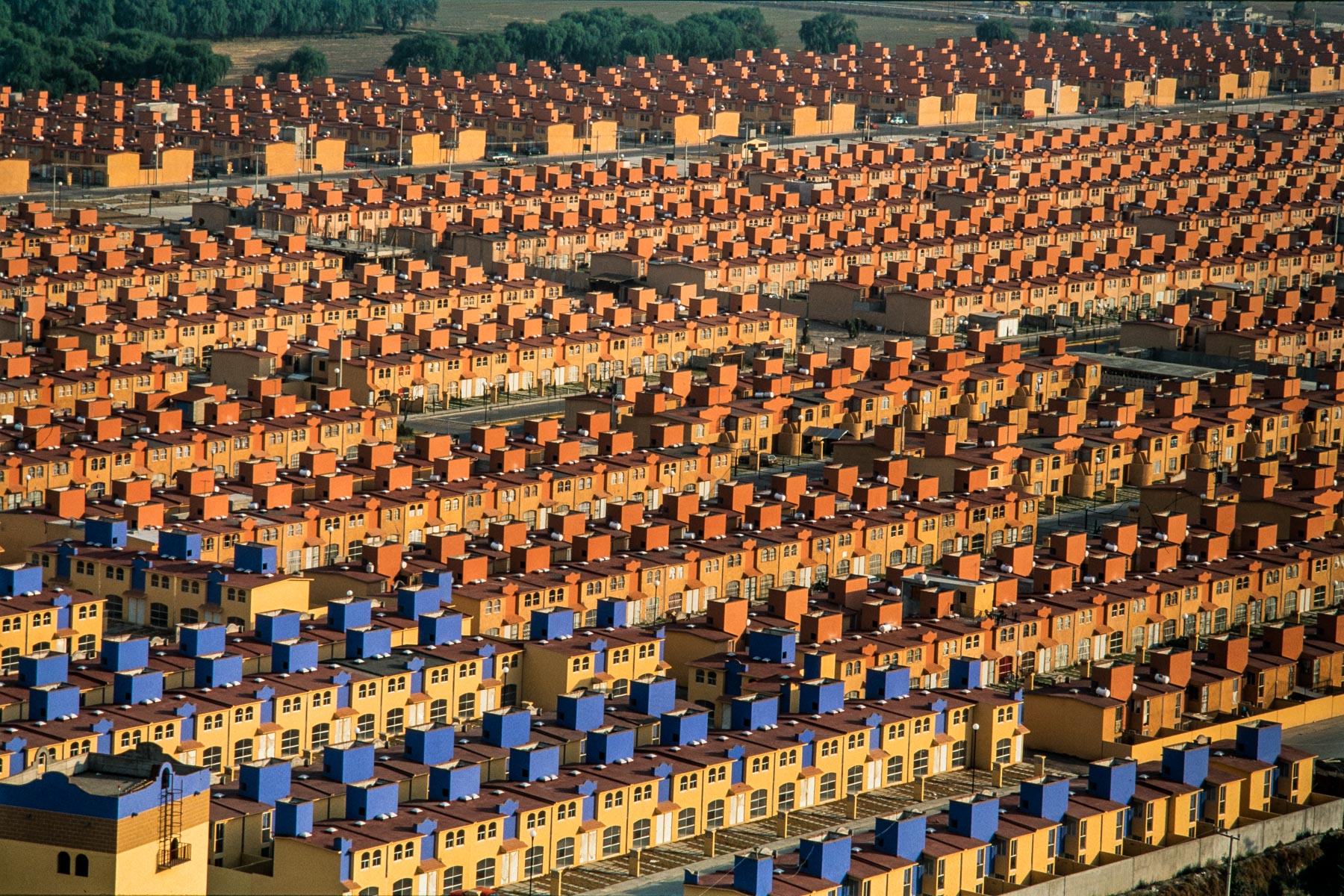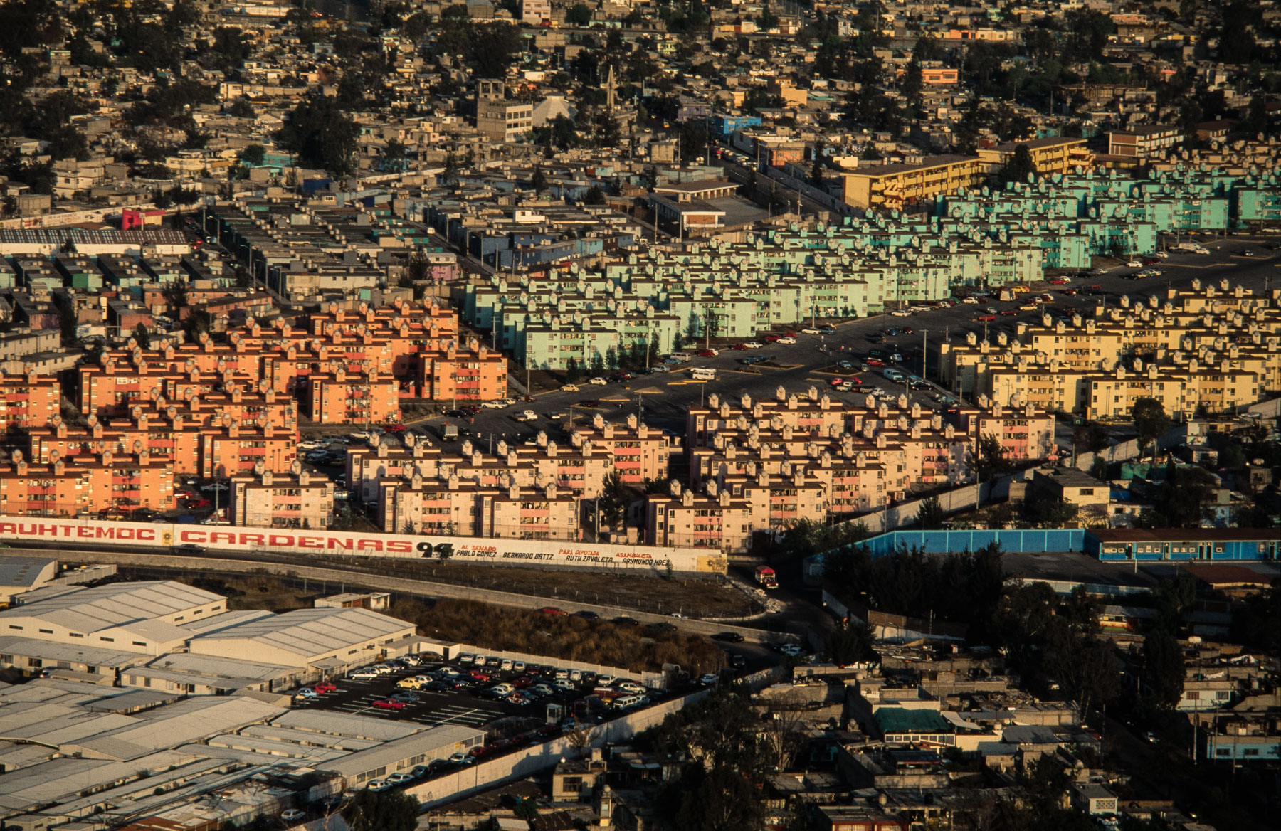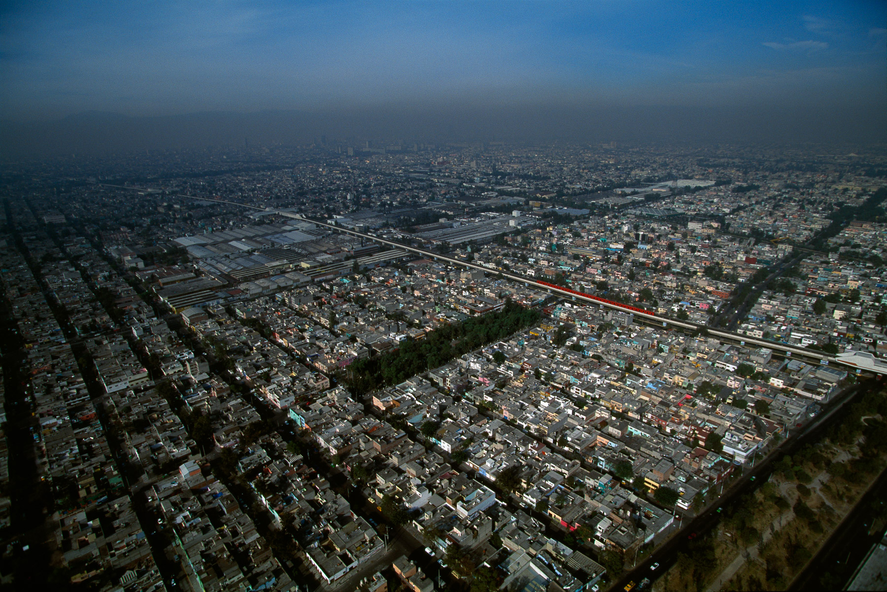 Tissu urbain orthonormé de constructions pauvres à Mexico