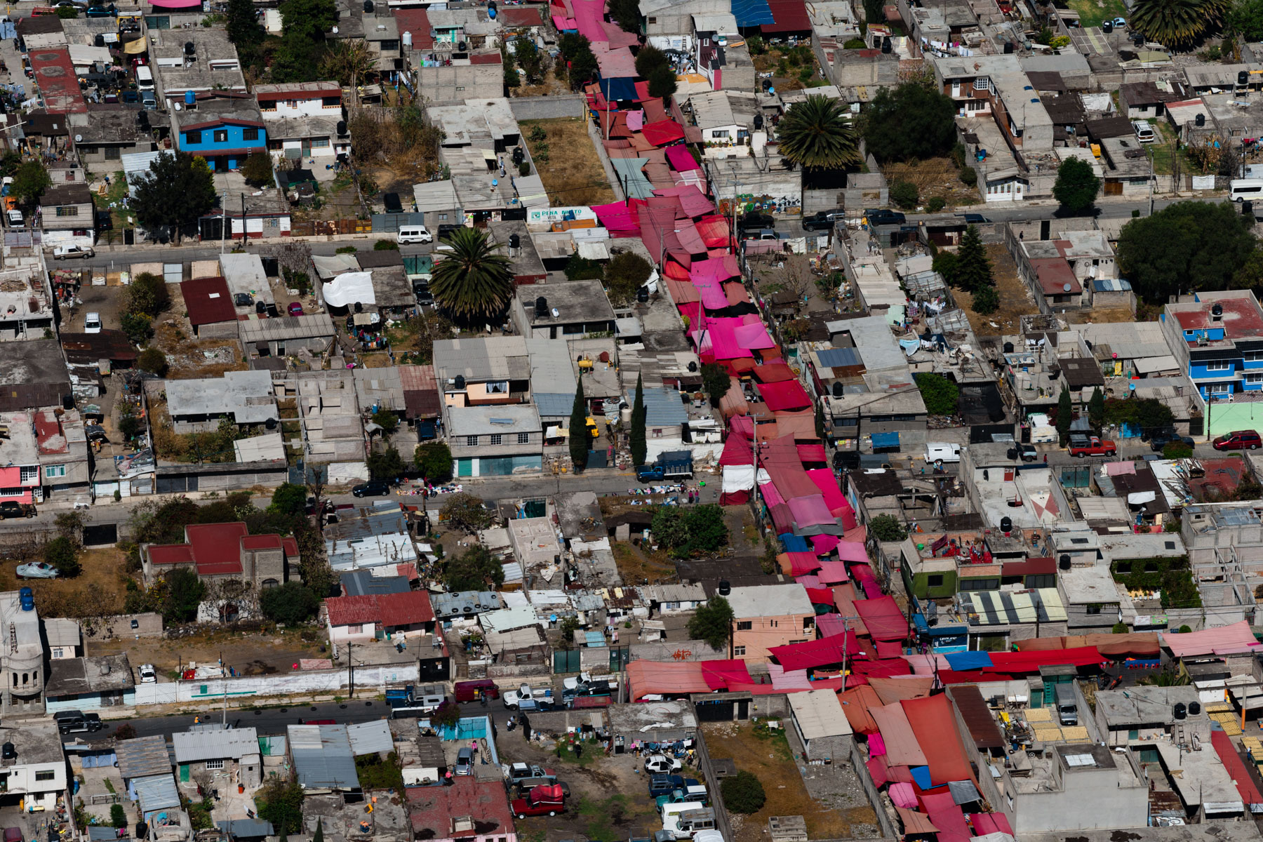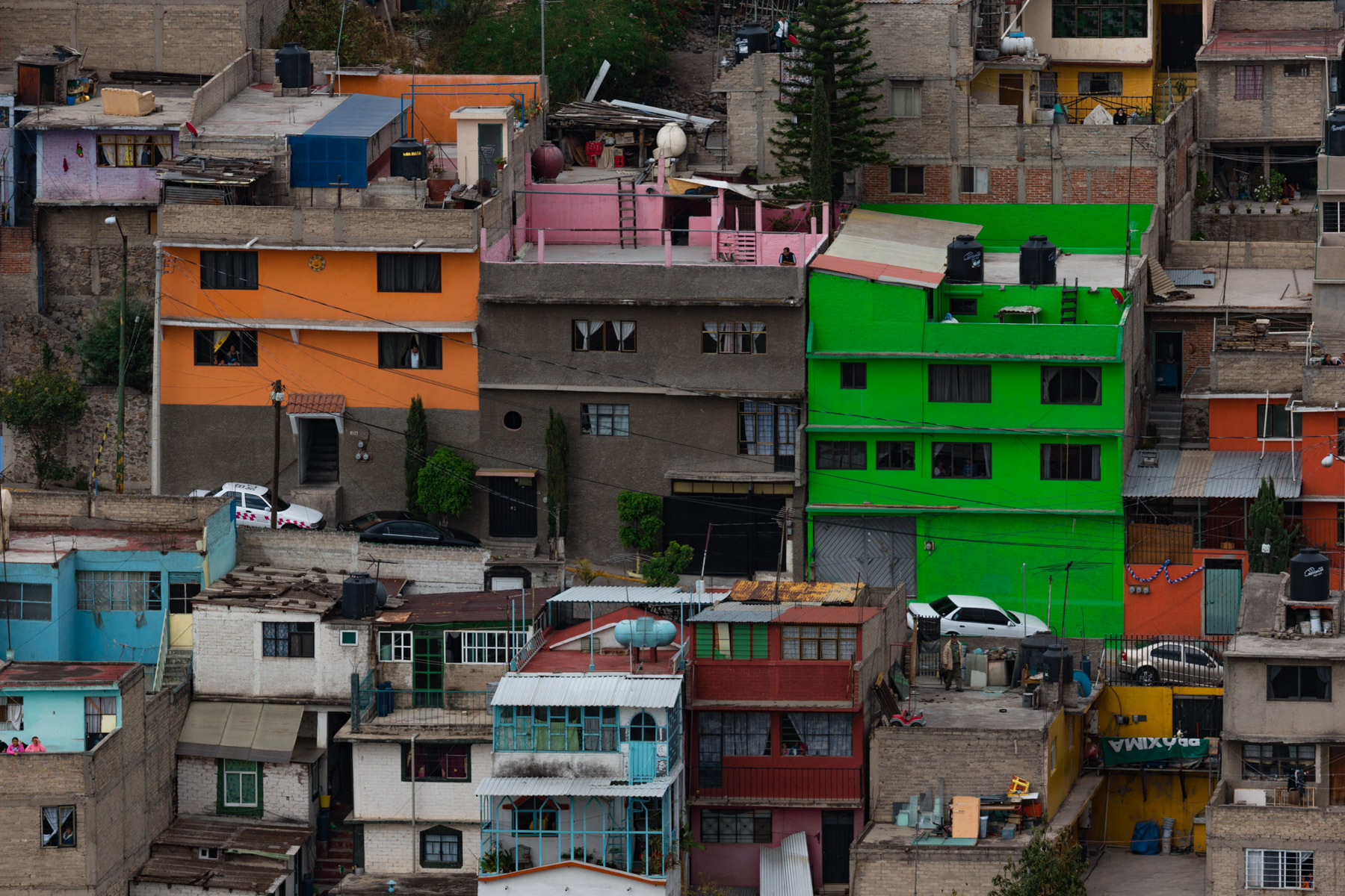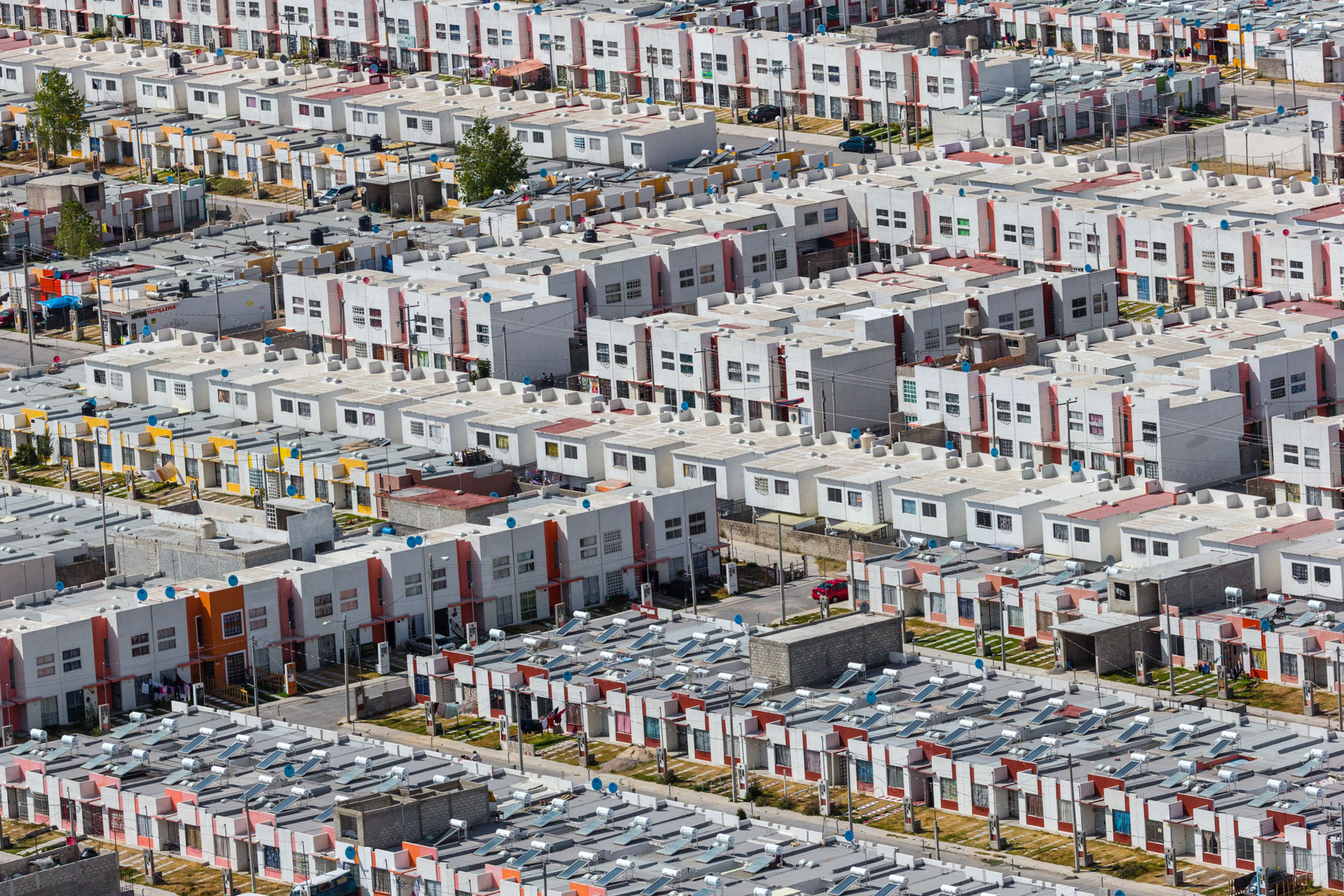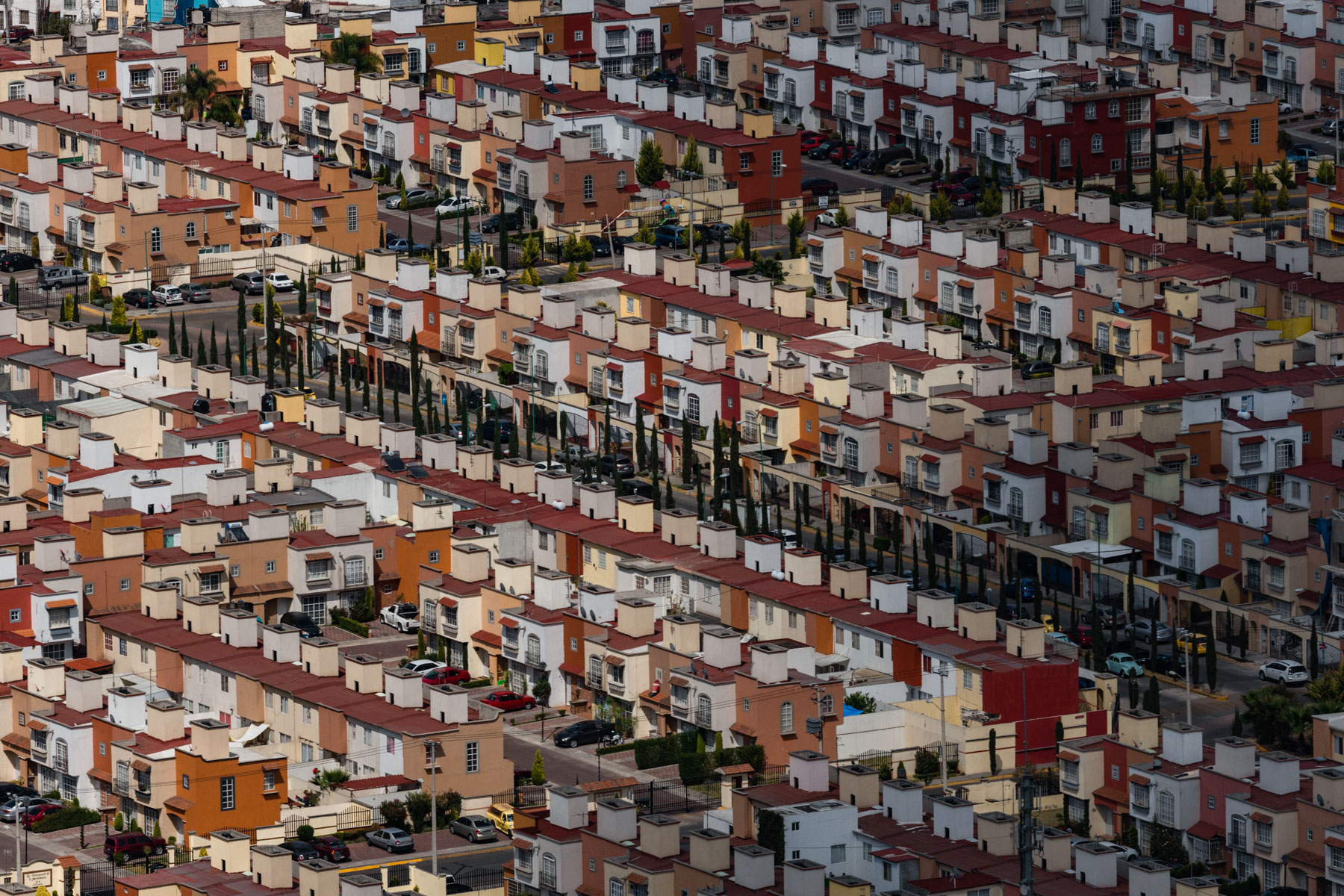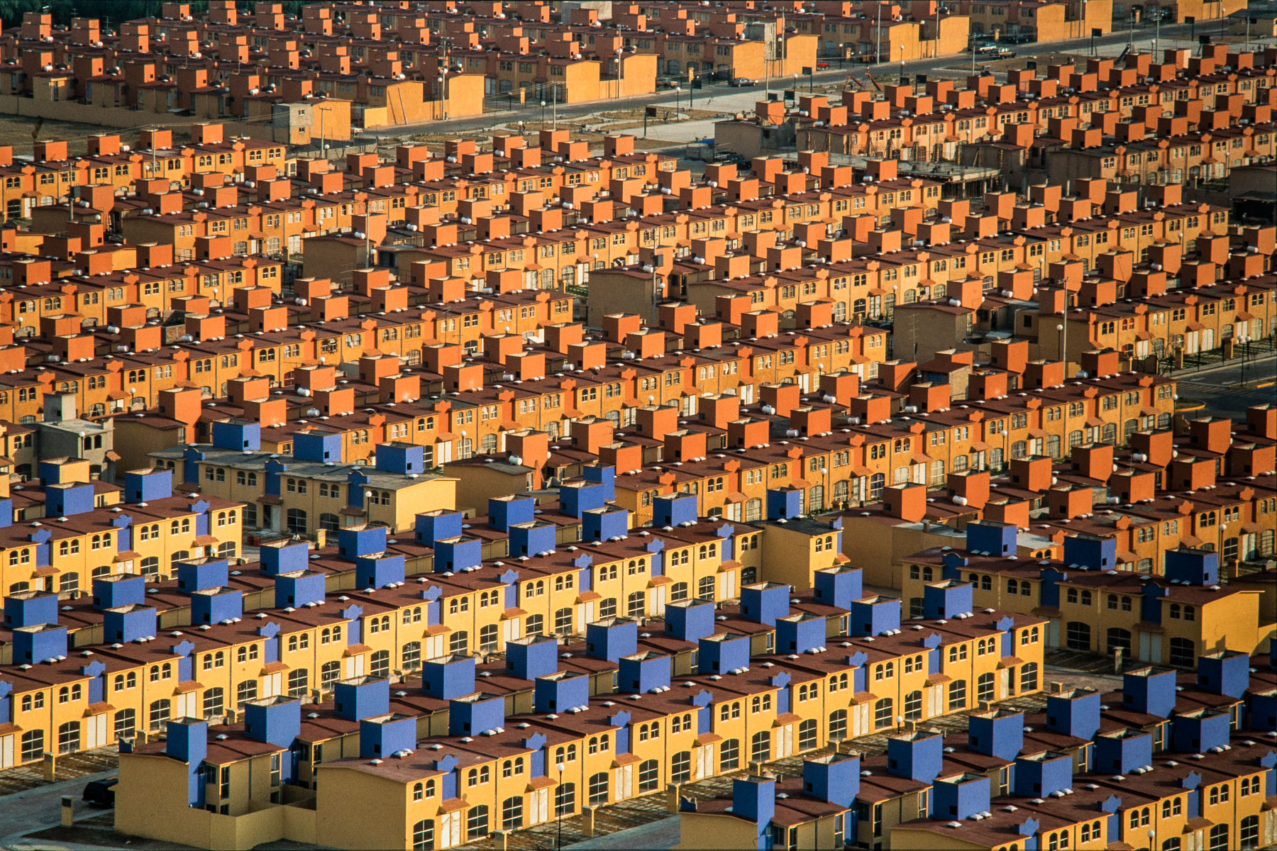 Tissu urbain orthonormé de constructions pauvres à Mexico