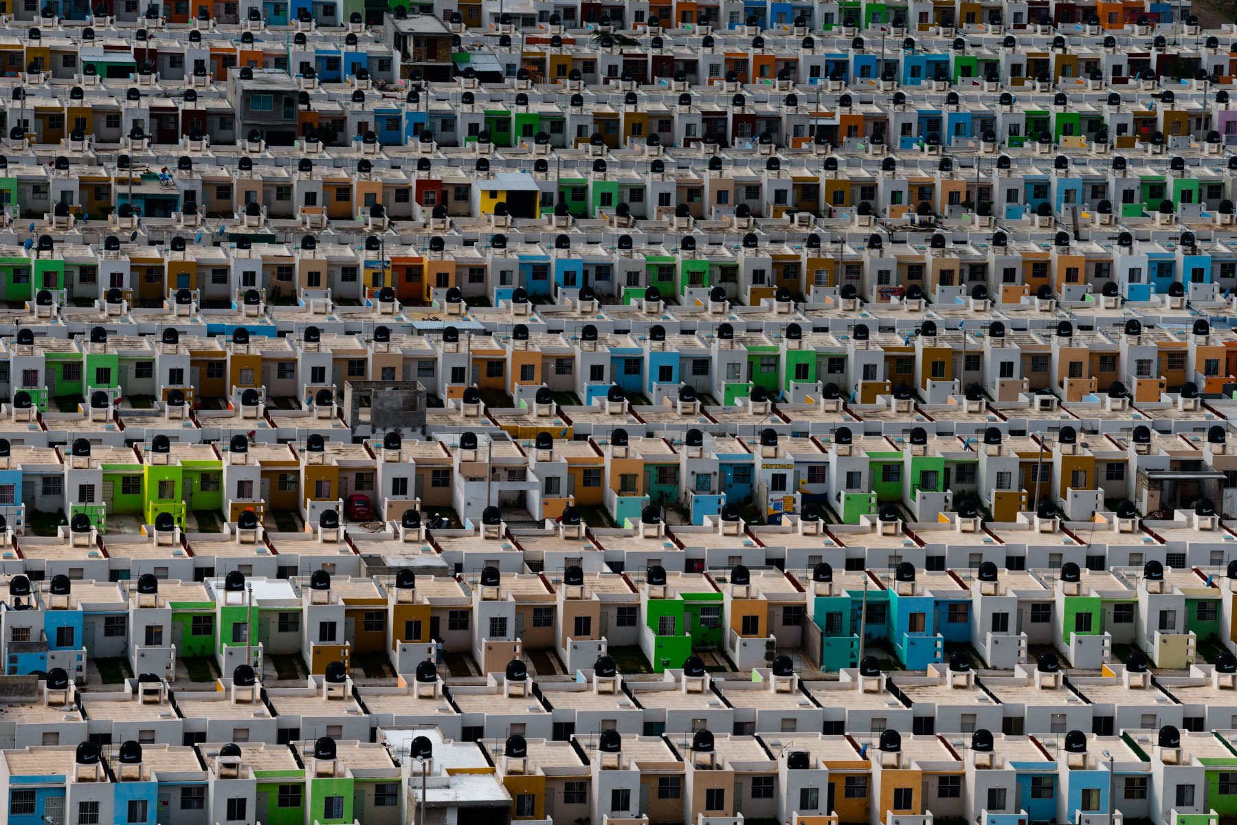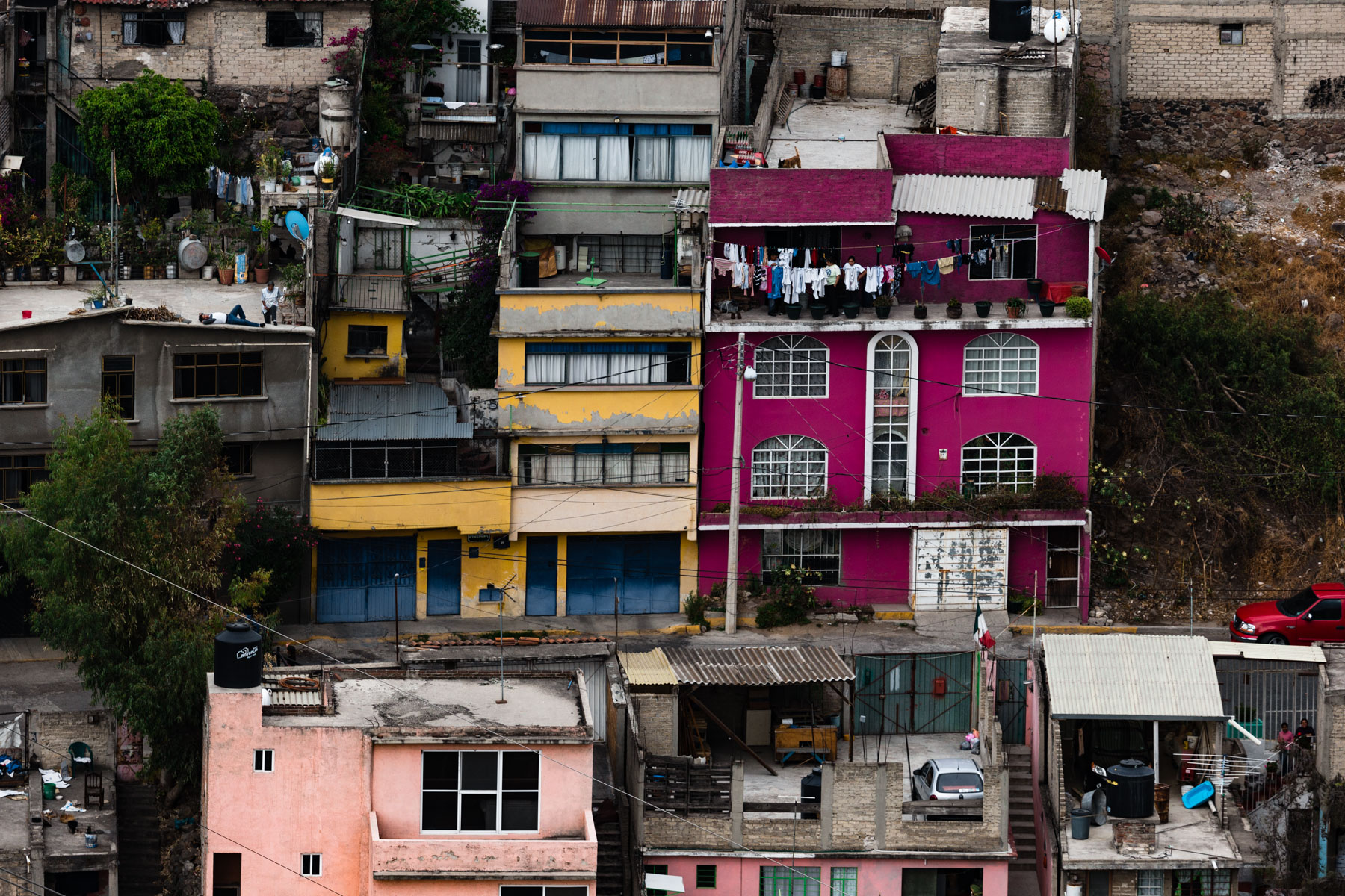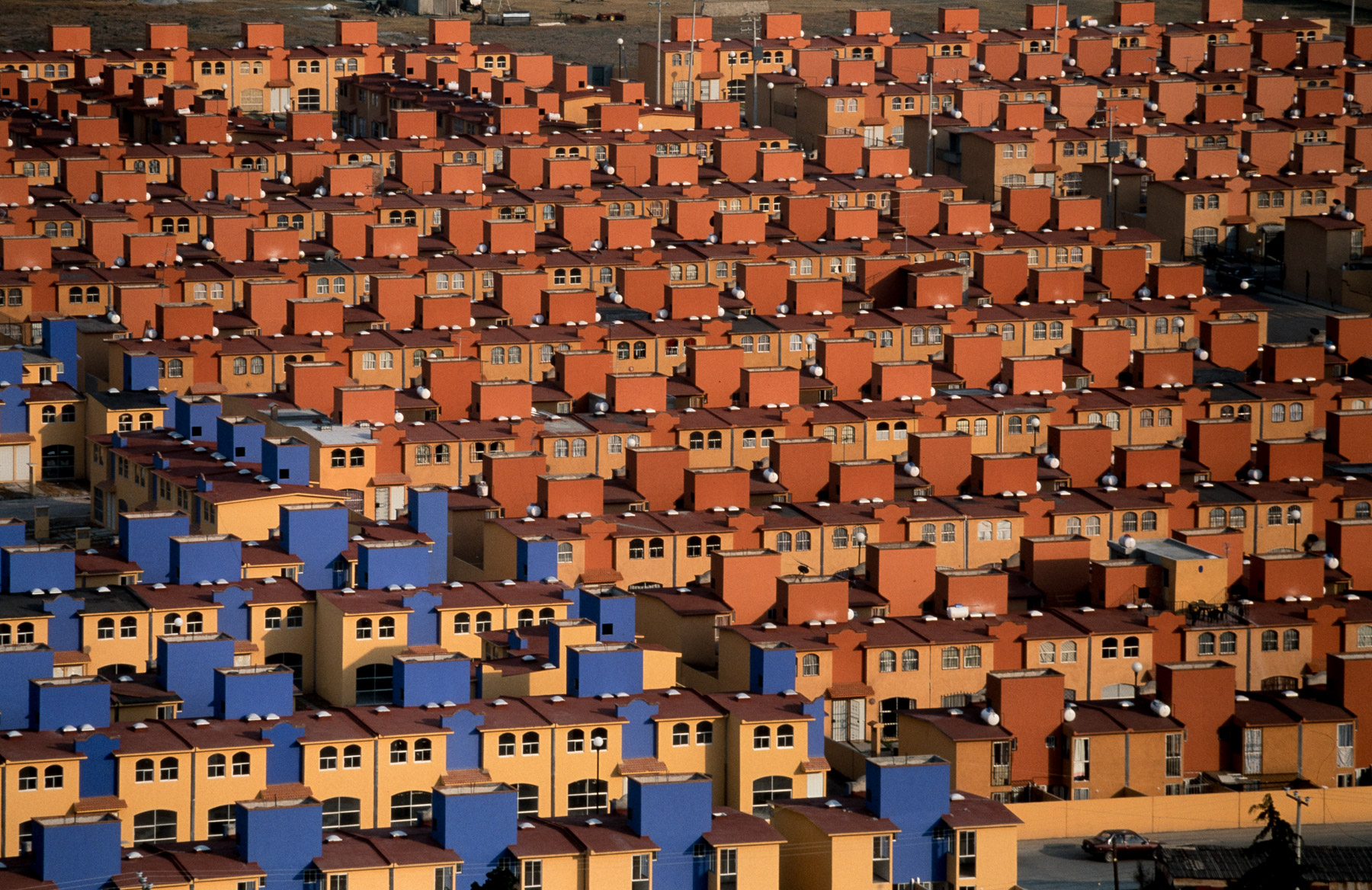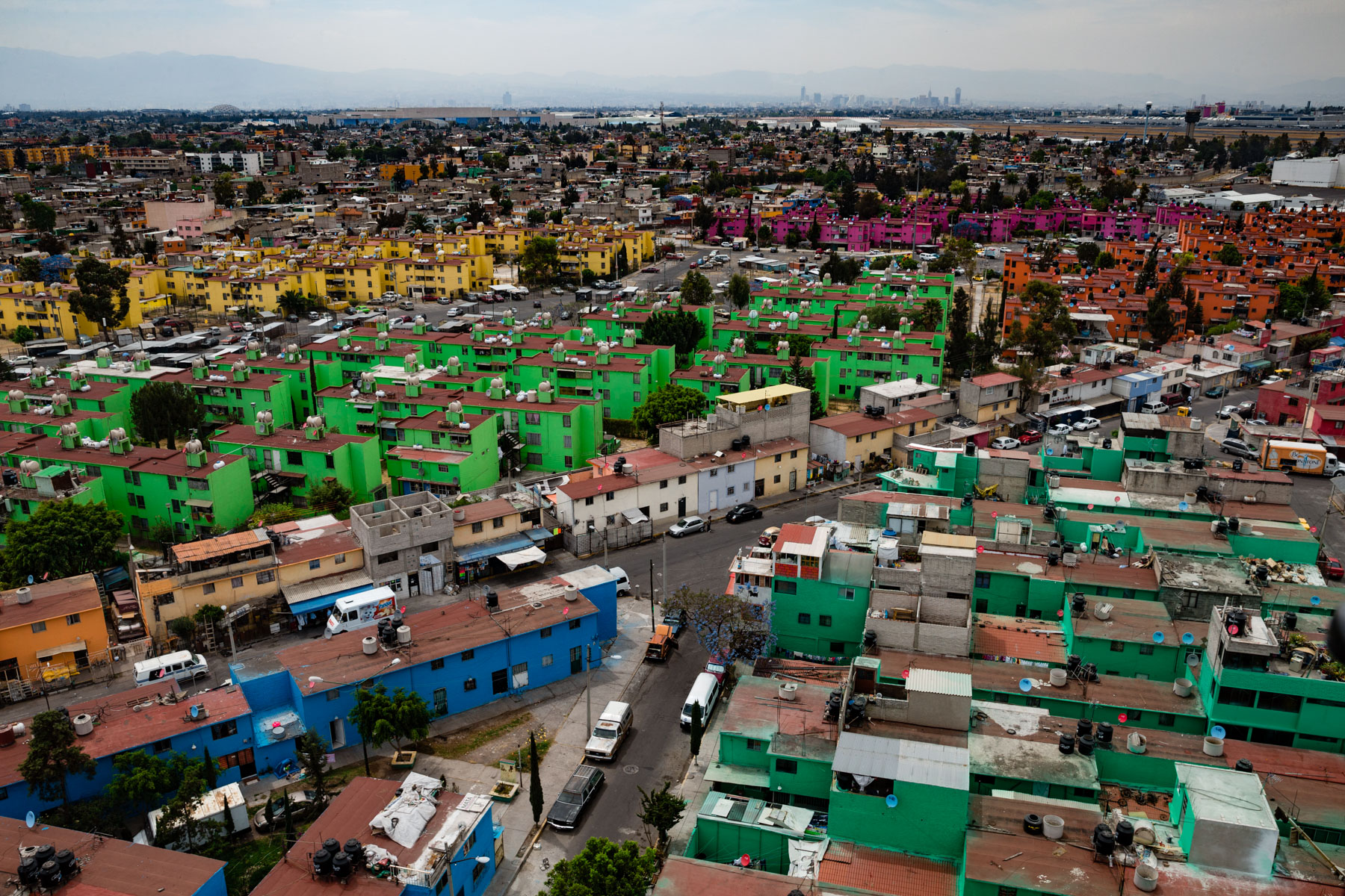 Tissu urbain orthonormé de constructions pauvres à Mexico
