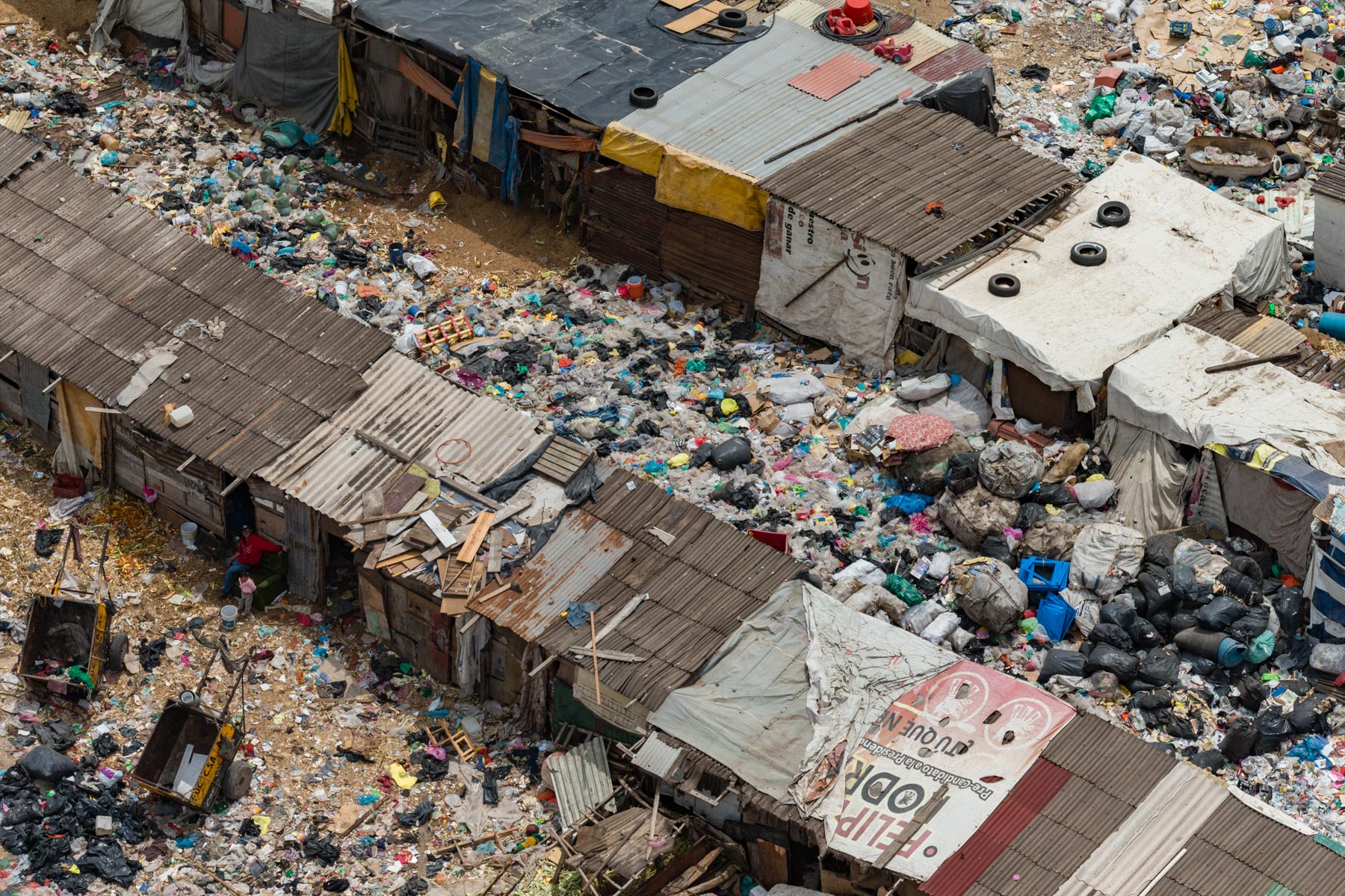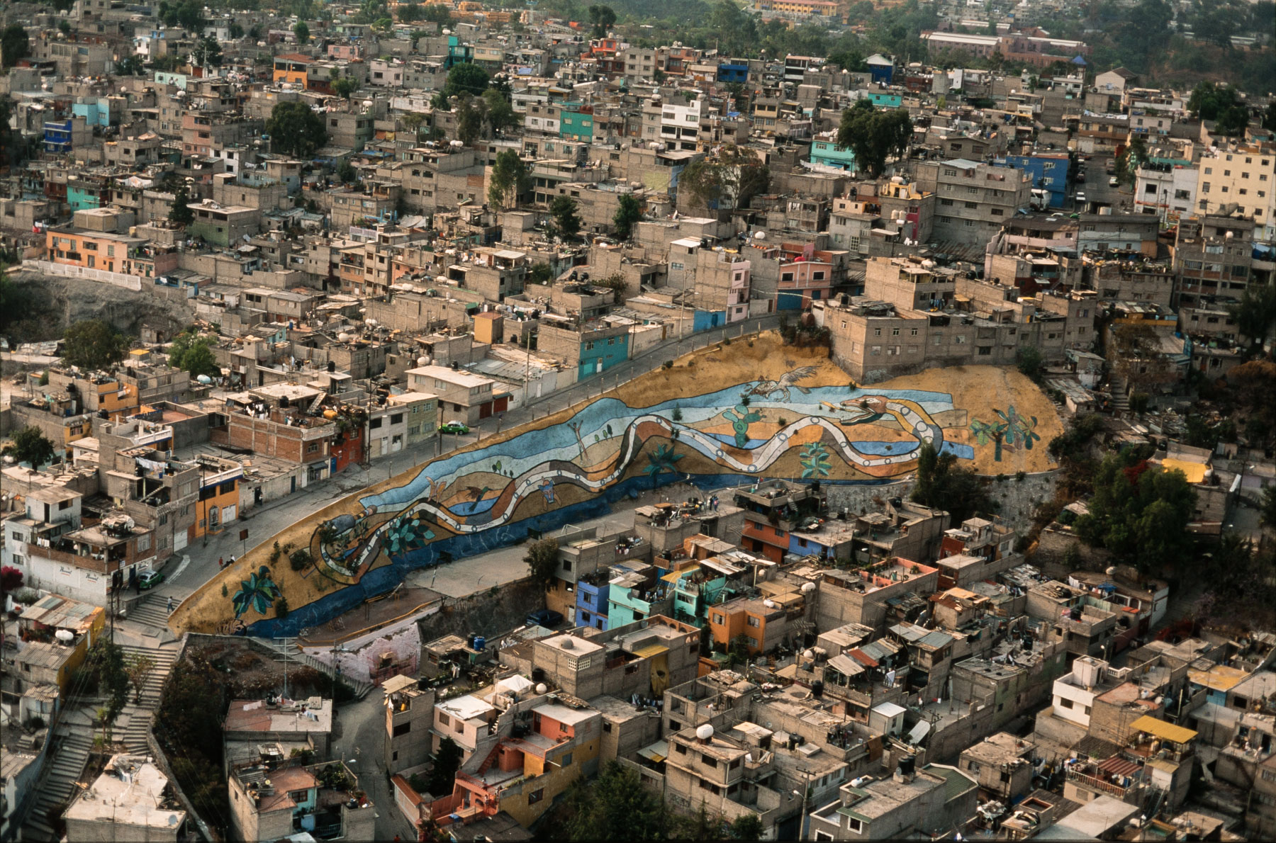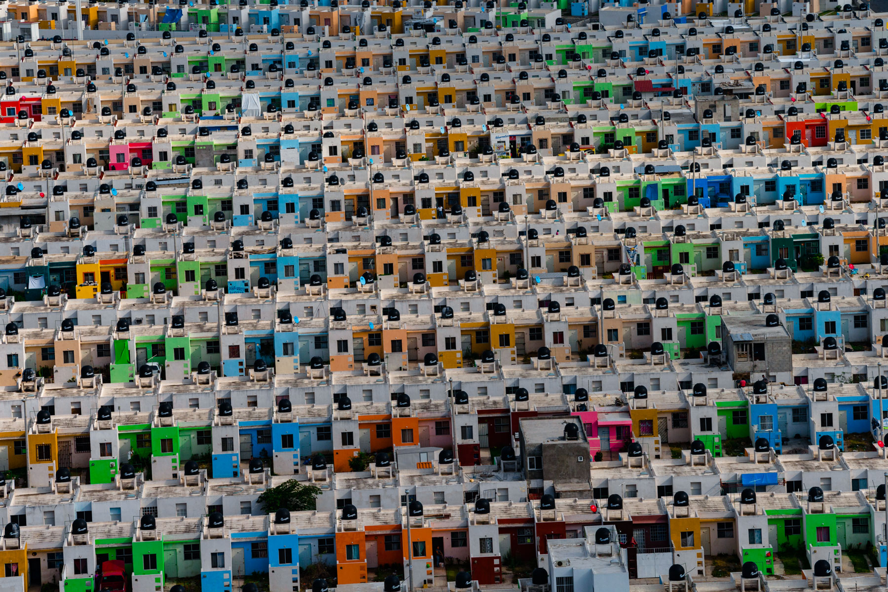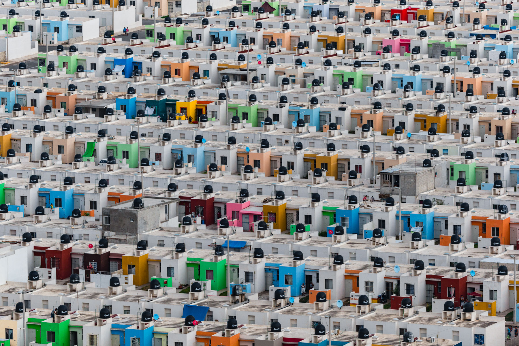 Tissu urbain orthonormé de constructions pauvres à Mexico