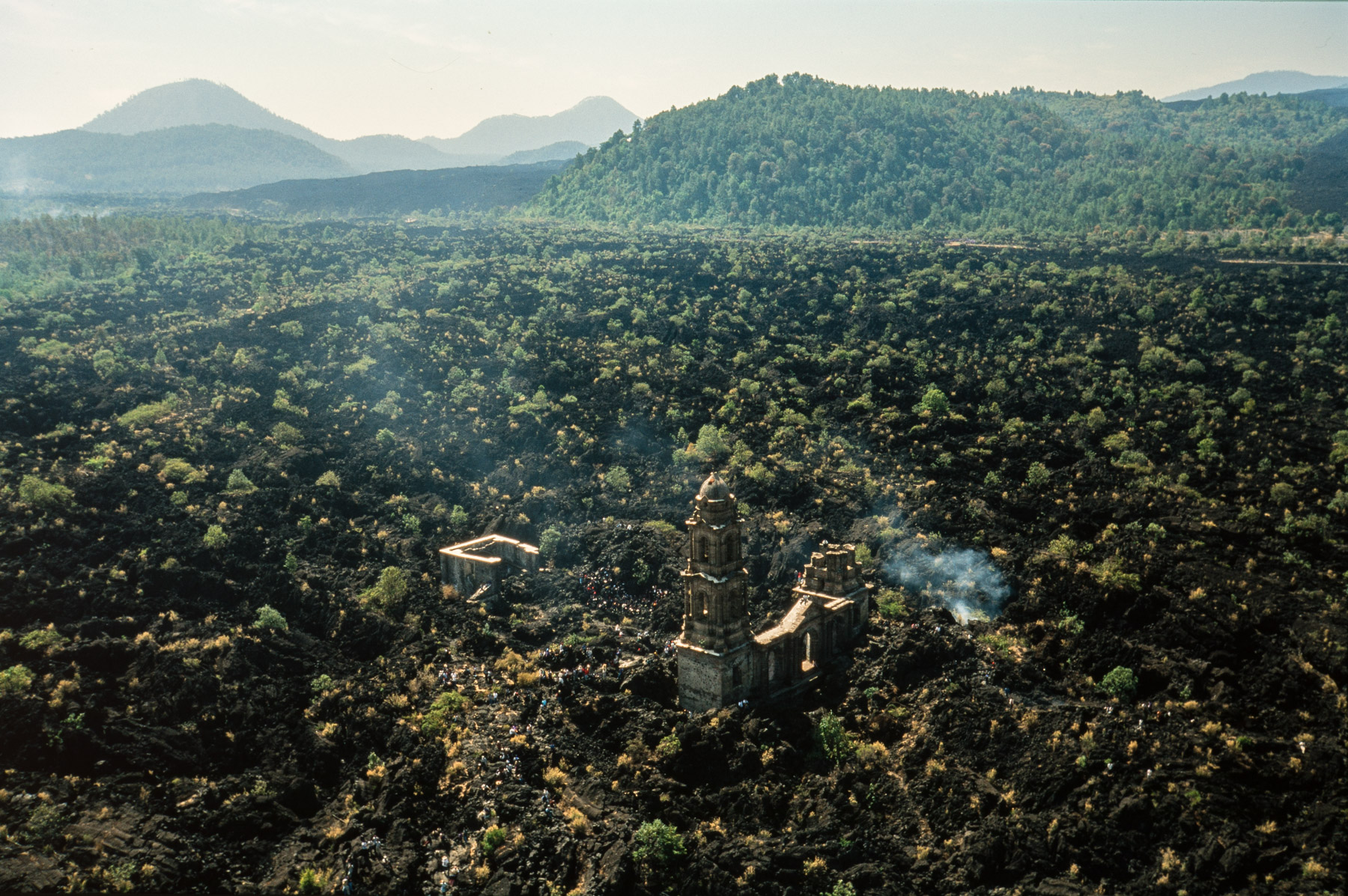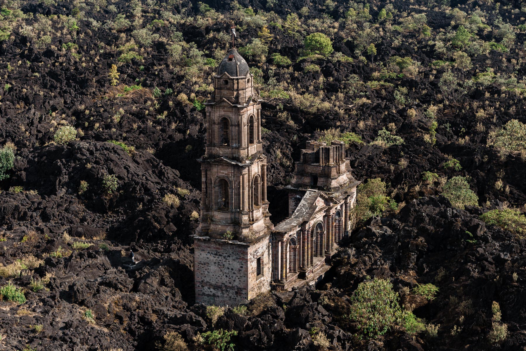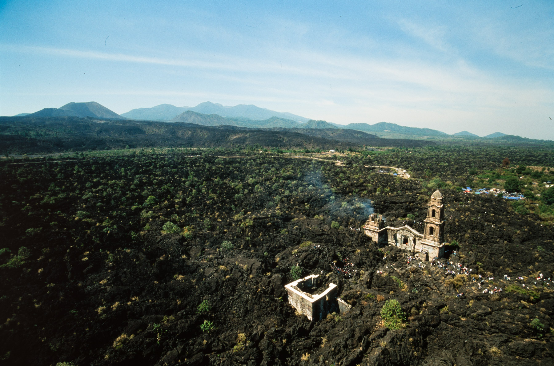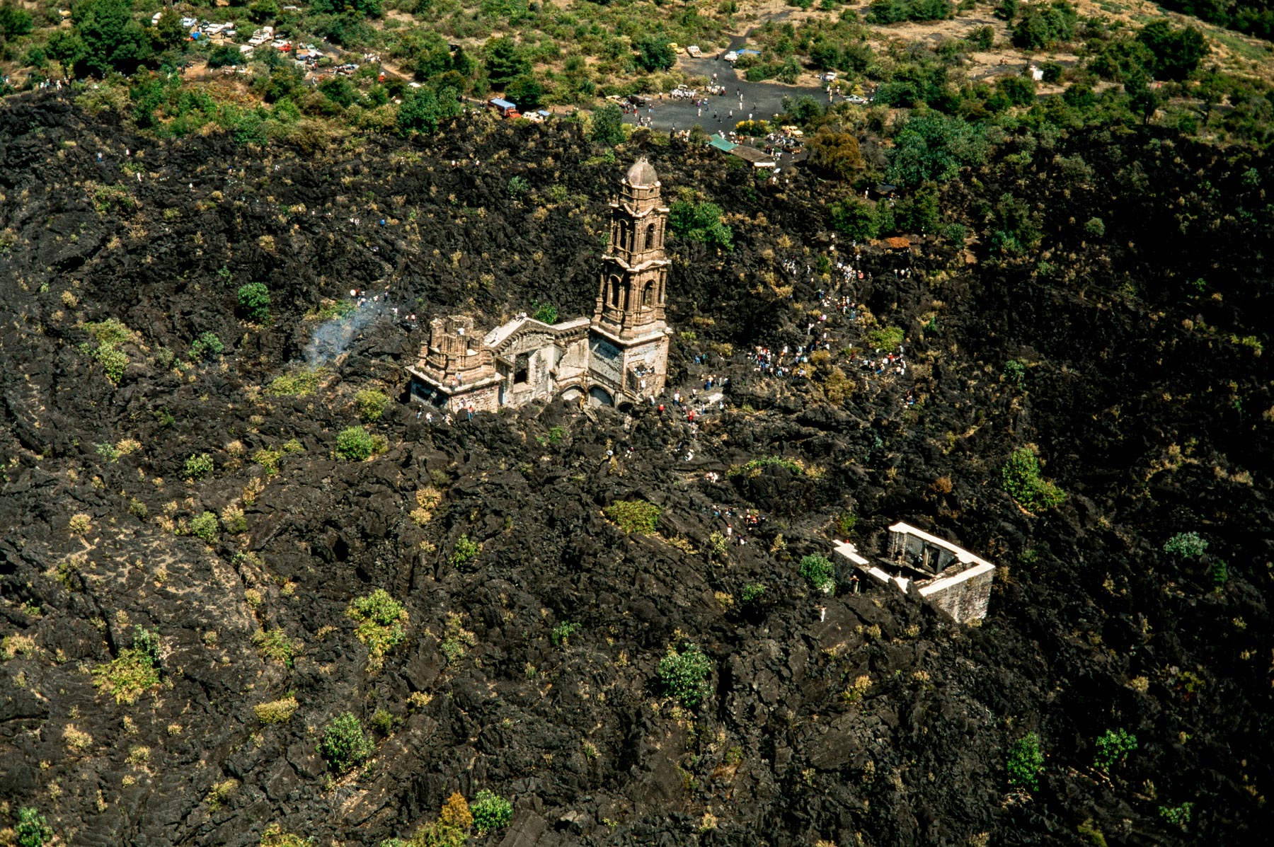 Church at the foot of the Paricutín volcano, San Juan Parangaricutiro, Michoacán, Mexico (19º32’ N – 102º14’ W).