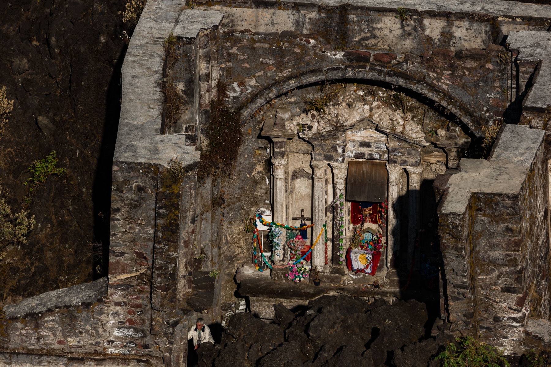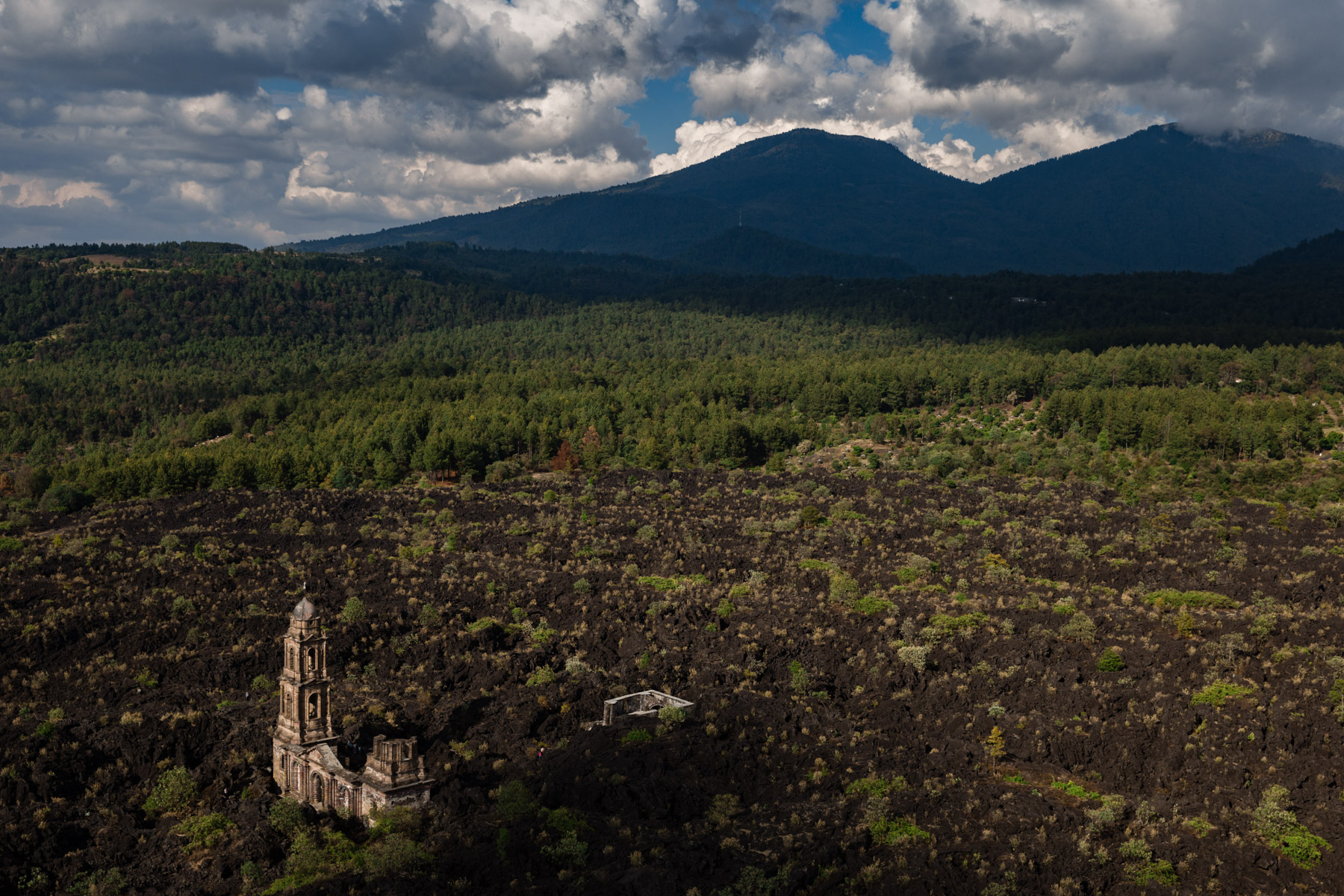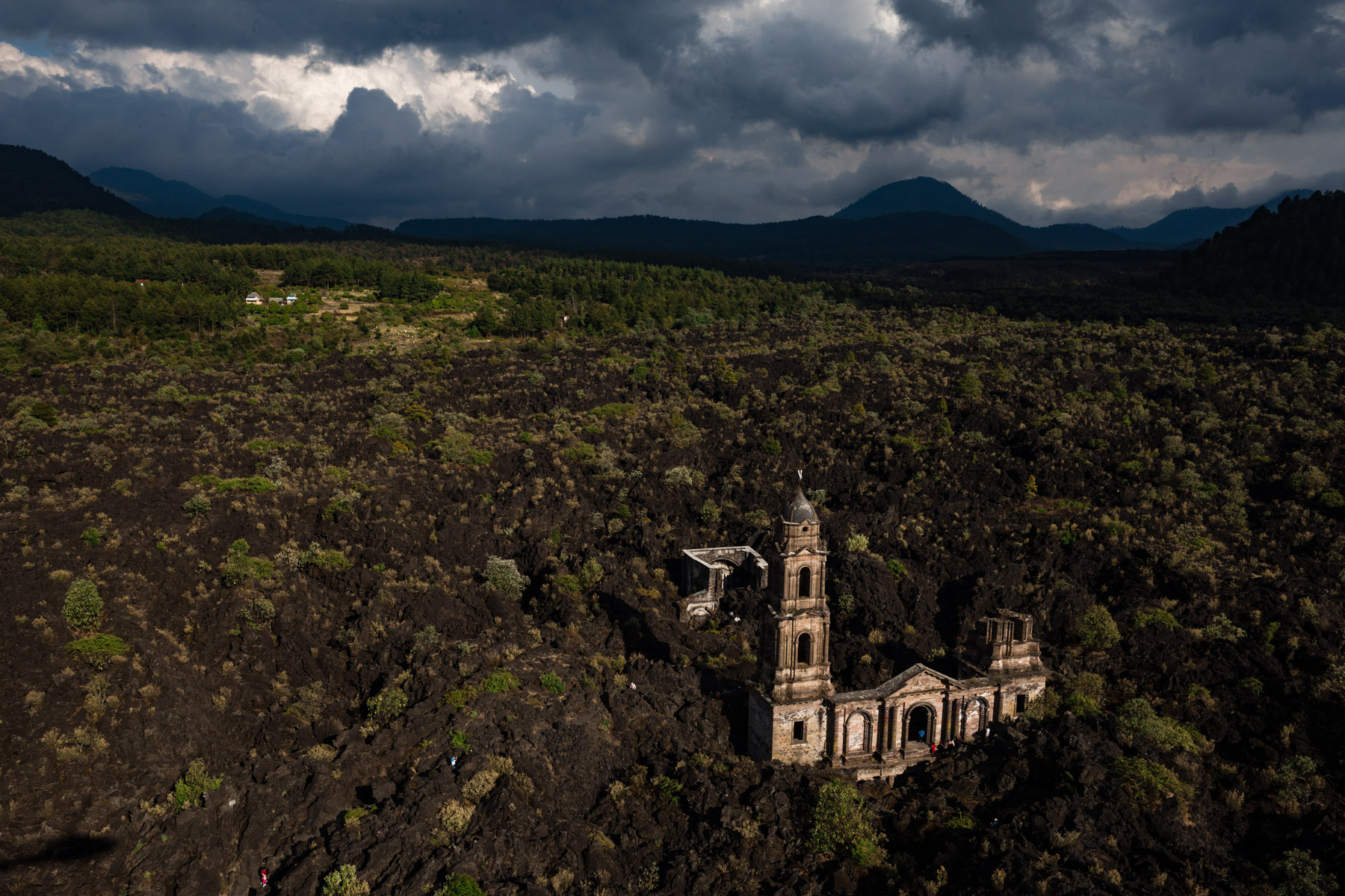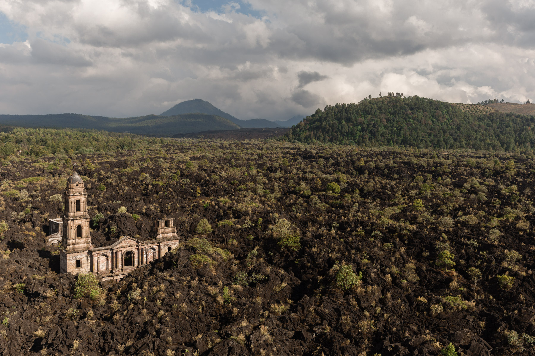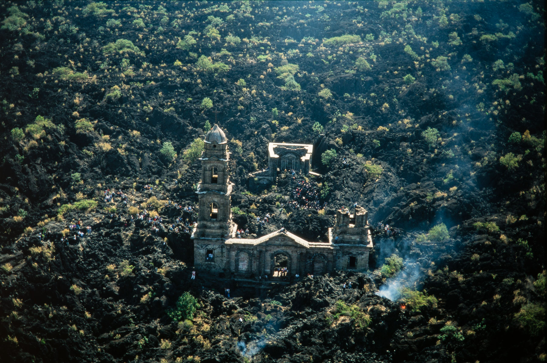 Church at the foot of the Paricutín volcano, San Juan Parangaricutiro, Michoacán, Mexico (19º32’ N – 102º14’ W).
