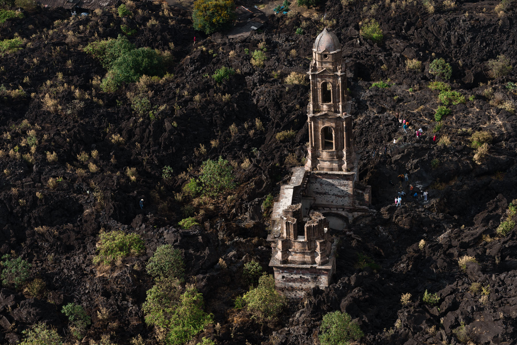 Eglise San Juan à Parangaricutin ensevelie sous la lave du Panricutin en 1943