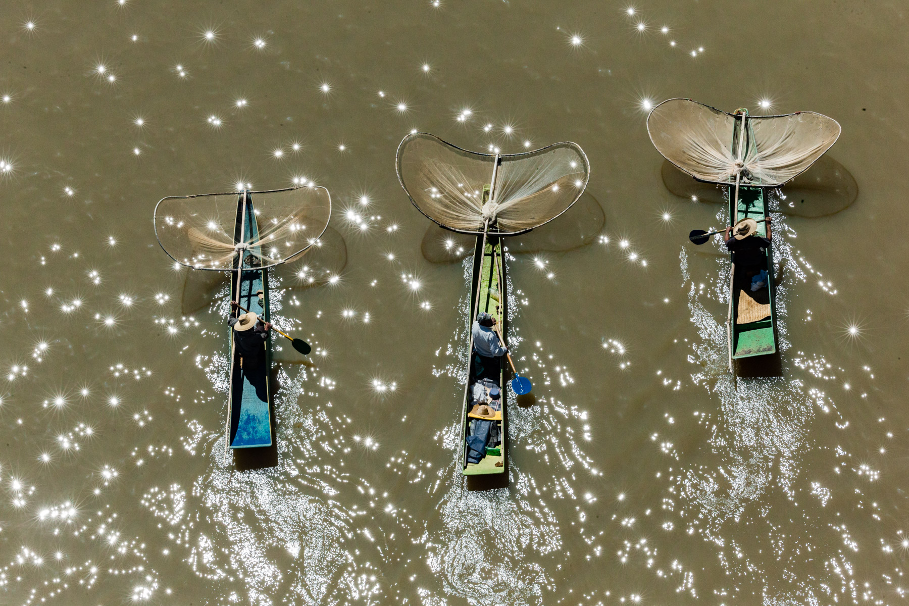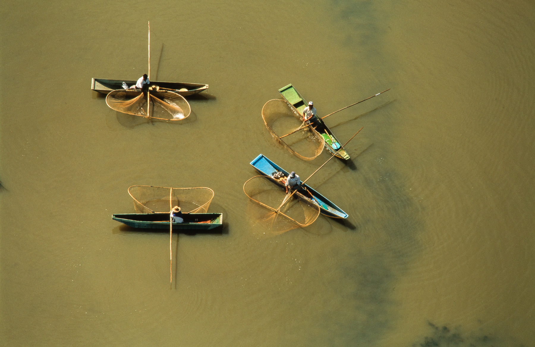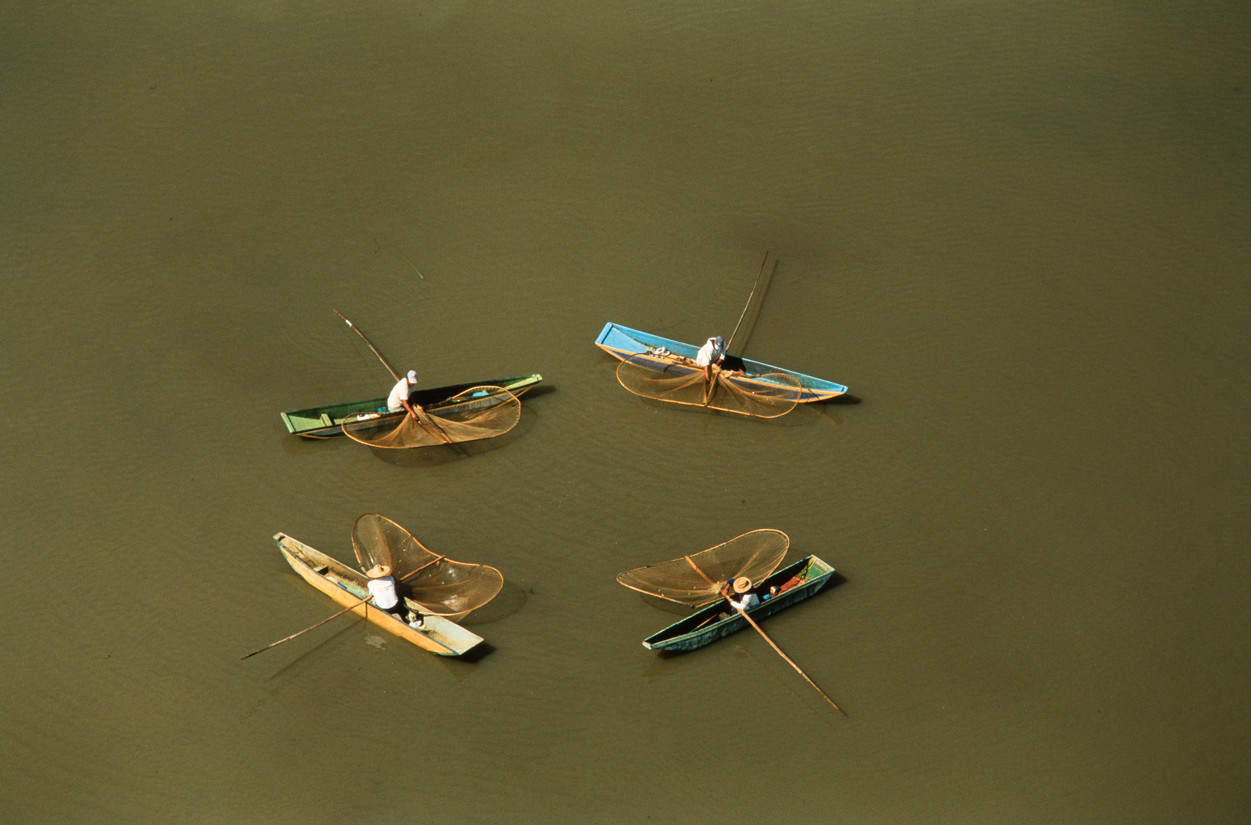 Fishermen in Lake Pátzcuaro, Michoacan state, Mexico (19°35' N, 101°35' W).