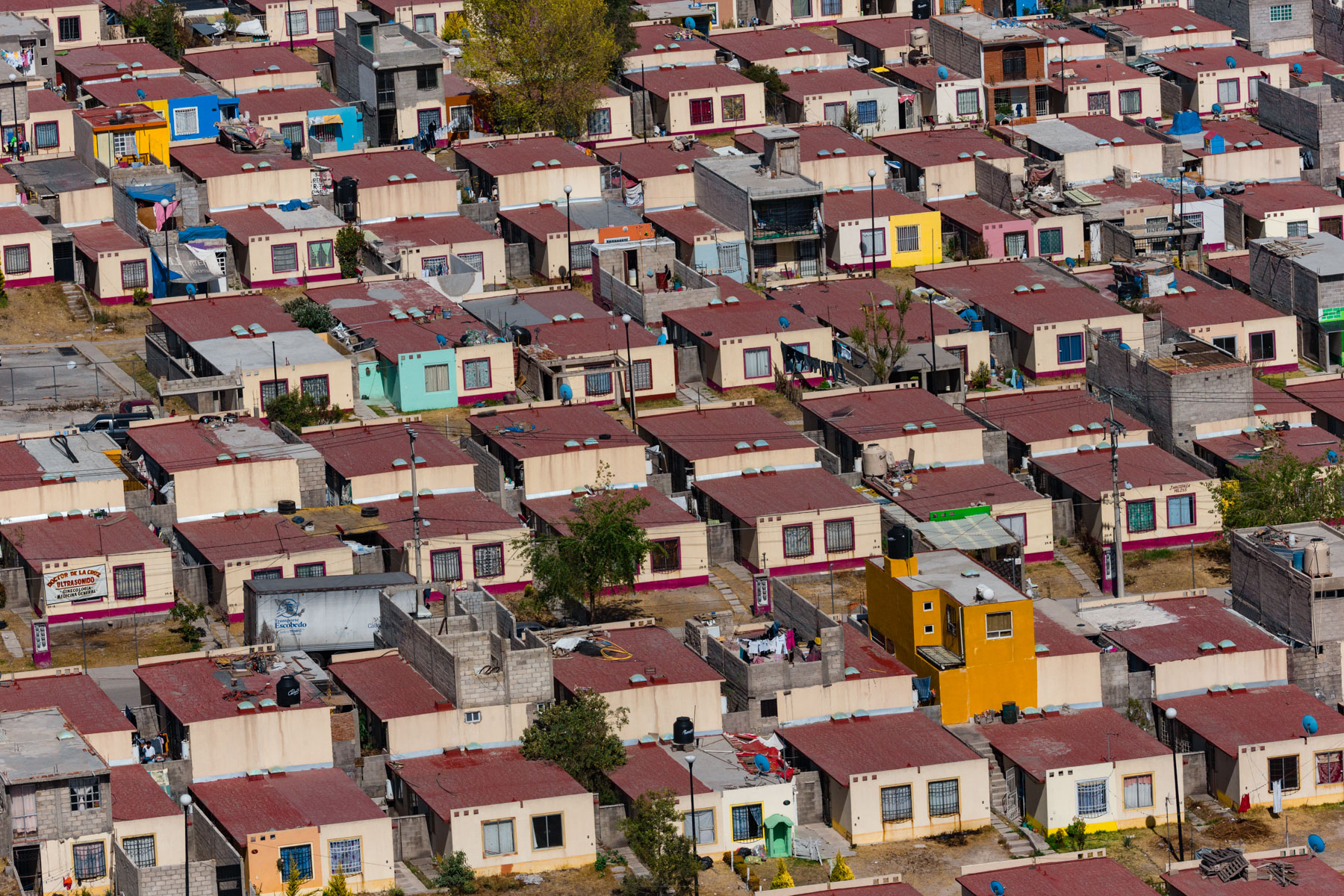 Logements INFONAVIT, Toluca, État de Mexico, Mexique (19°17' N – 99°40' O).